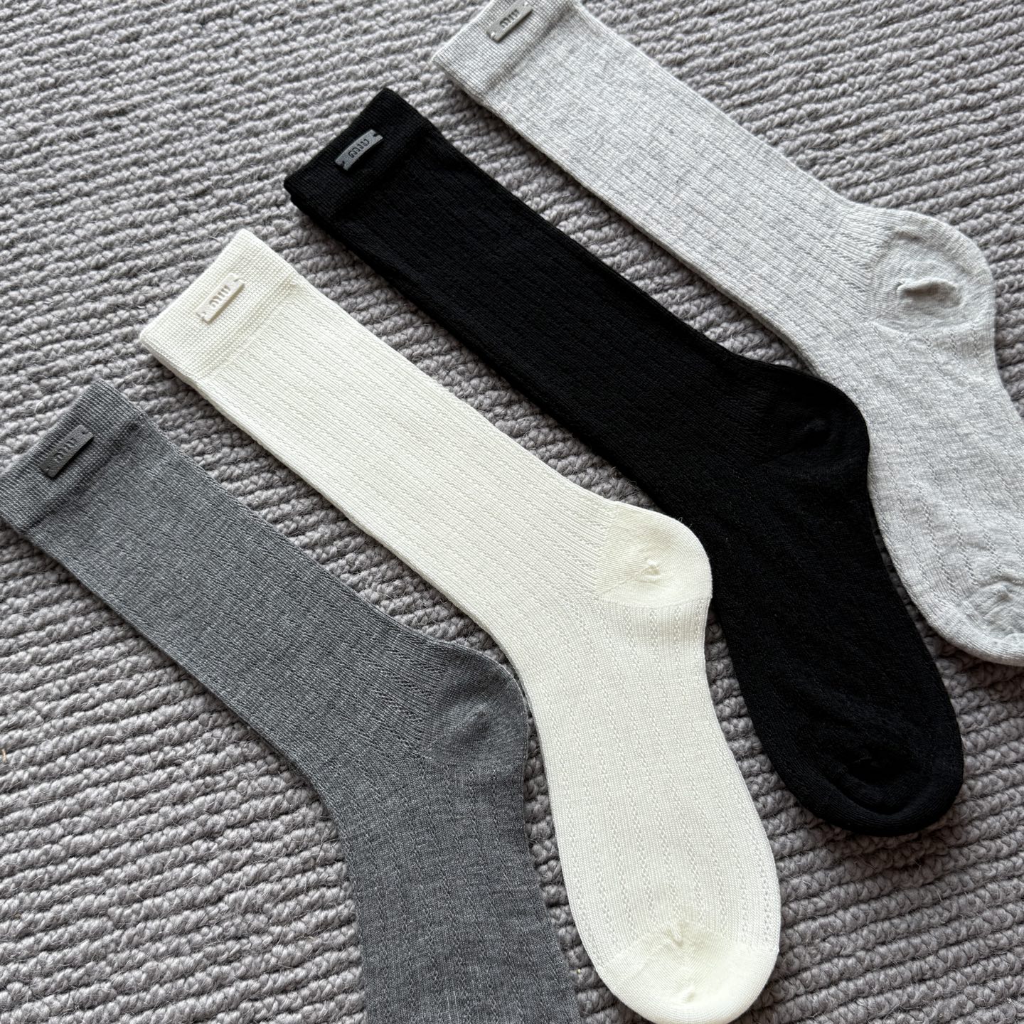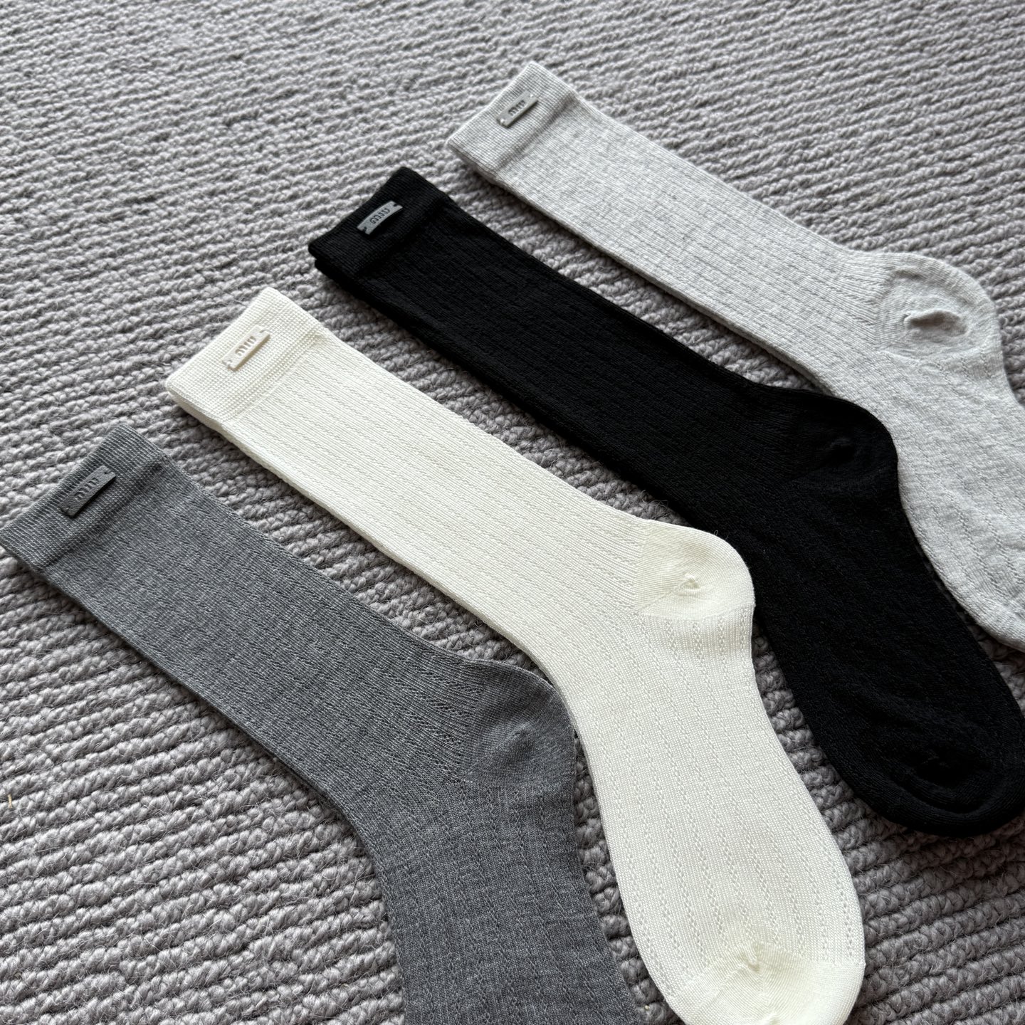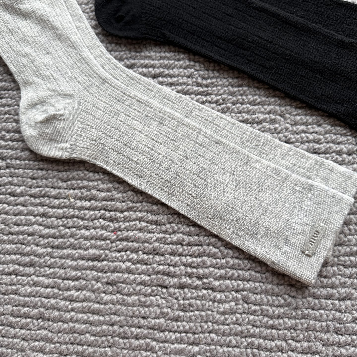 这款sock是AAAAA 1:1 质量 (非常棒). 使用了和原版一模一样的材料. 商标部分也保持了和缪缪/Miu Miu一样. 图片拍摄是实物sock拍摄, 您所收到的实物保证和我们图片一模一样.