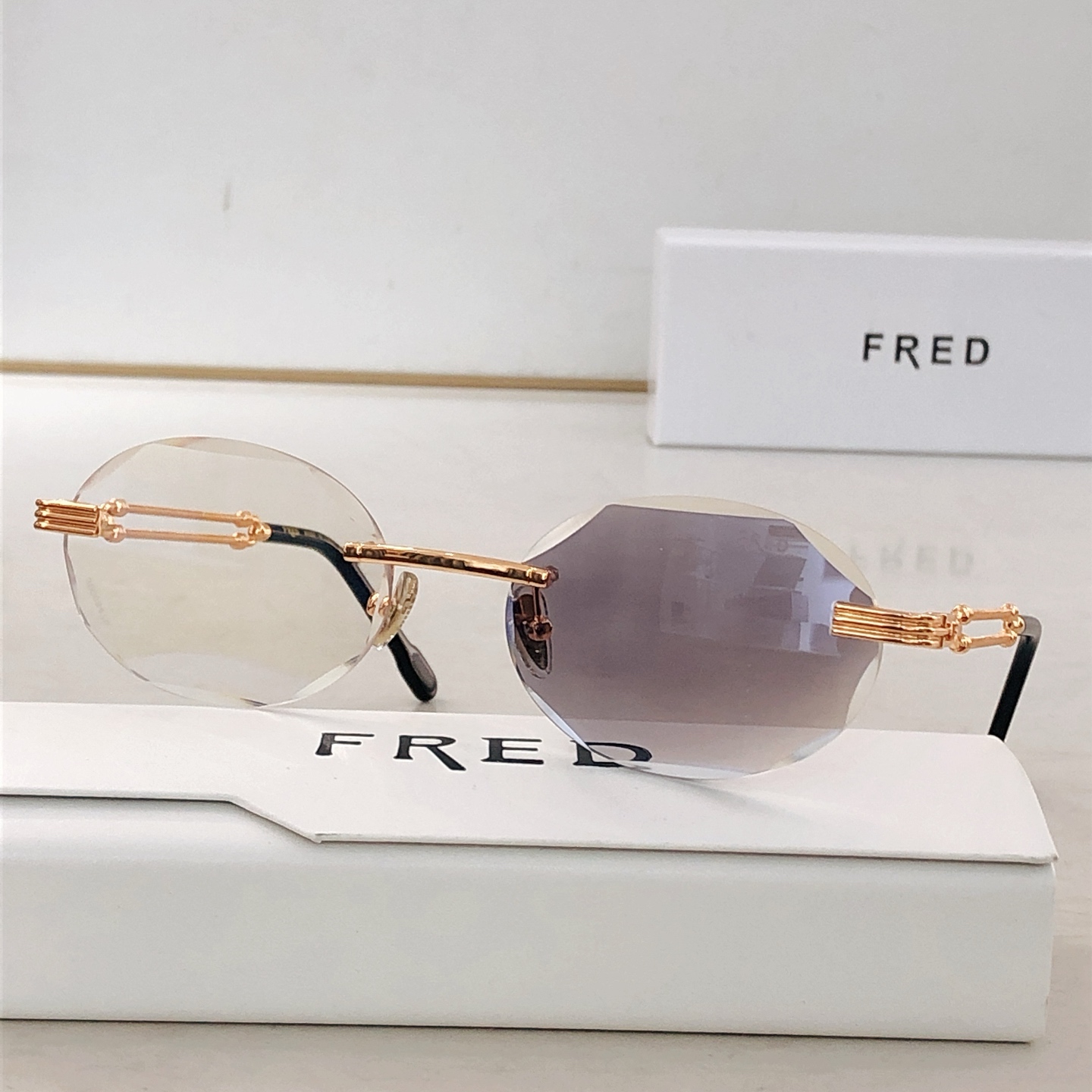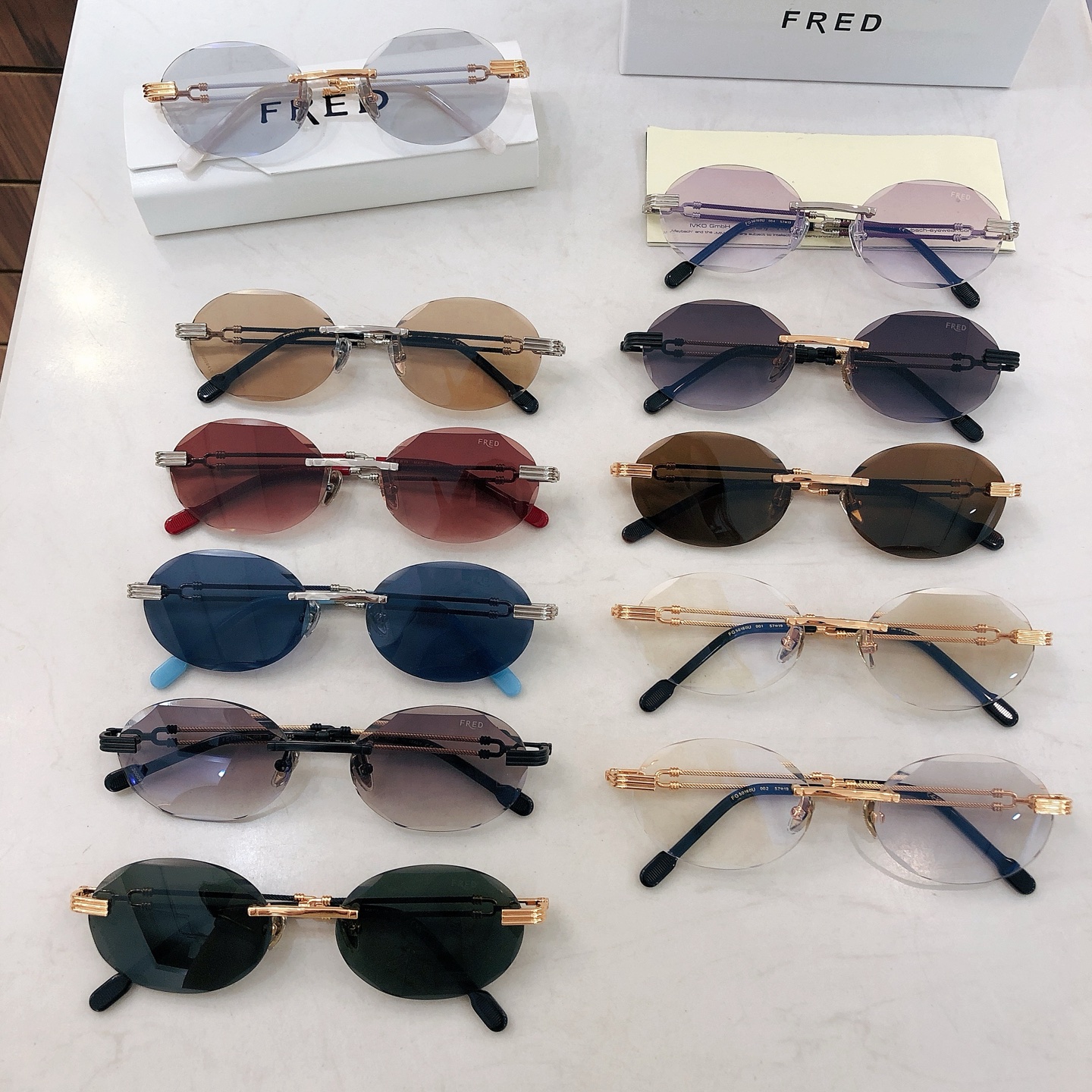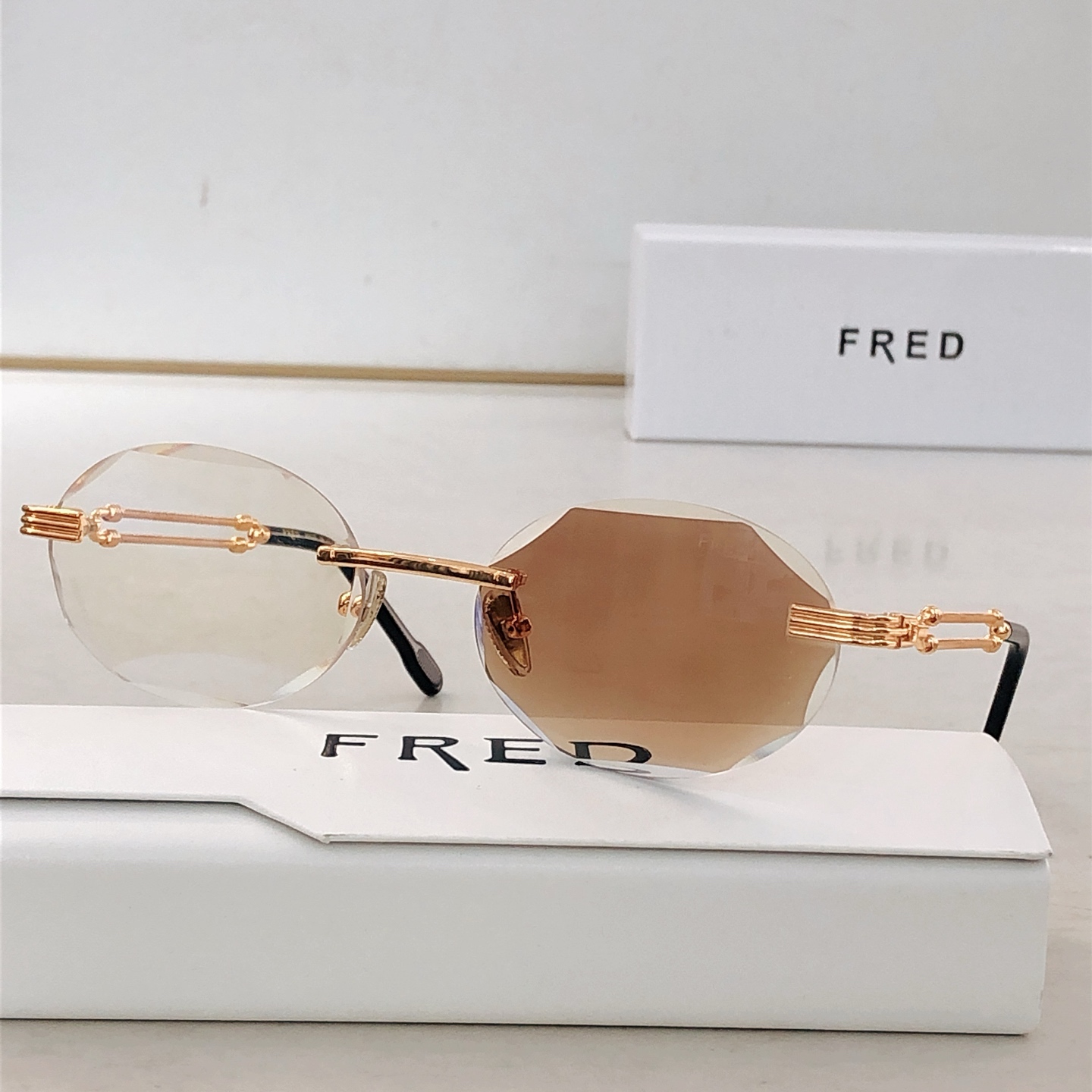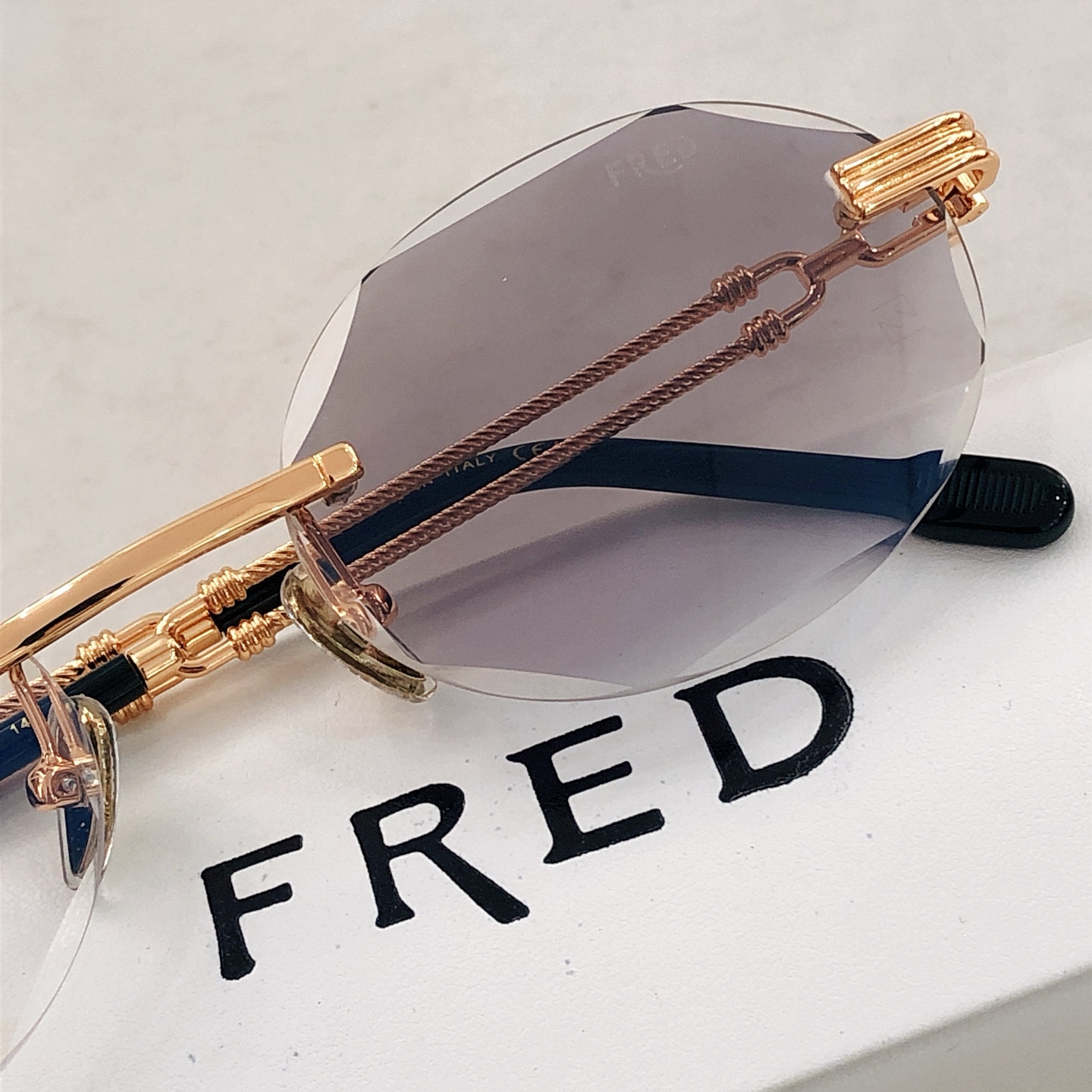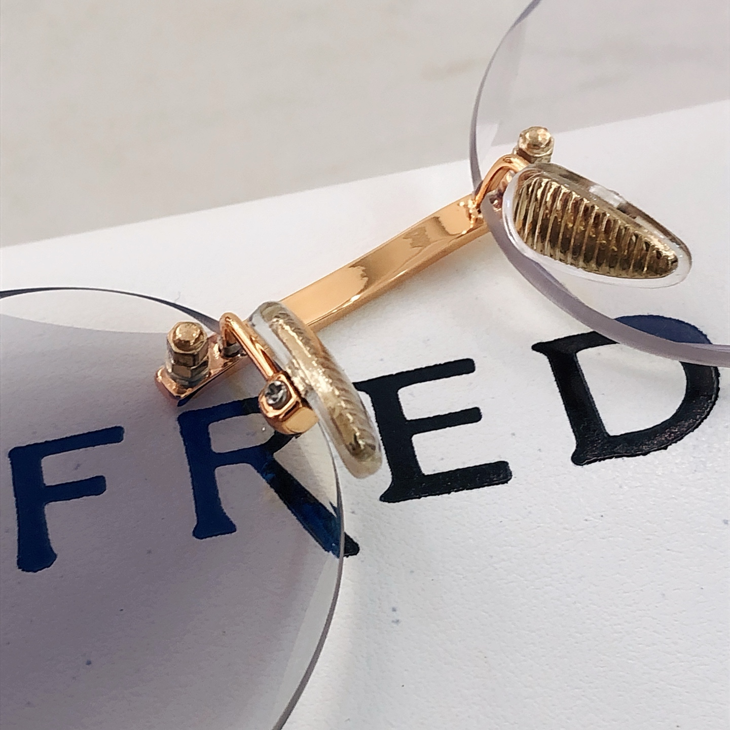 这款太阳眼镜是AAAAA 1:1 质量 (非常棒). 使用了和原版一模一样的材料. 商标部分也保持了和Fred一样. 图片拍摄是实物太阳眼镜拍摄, 您所收到的实物保证和我们图片一模一样.
