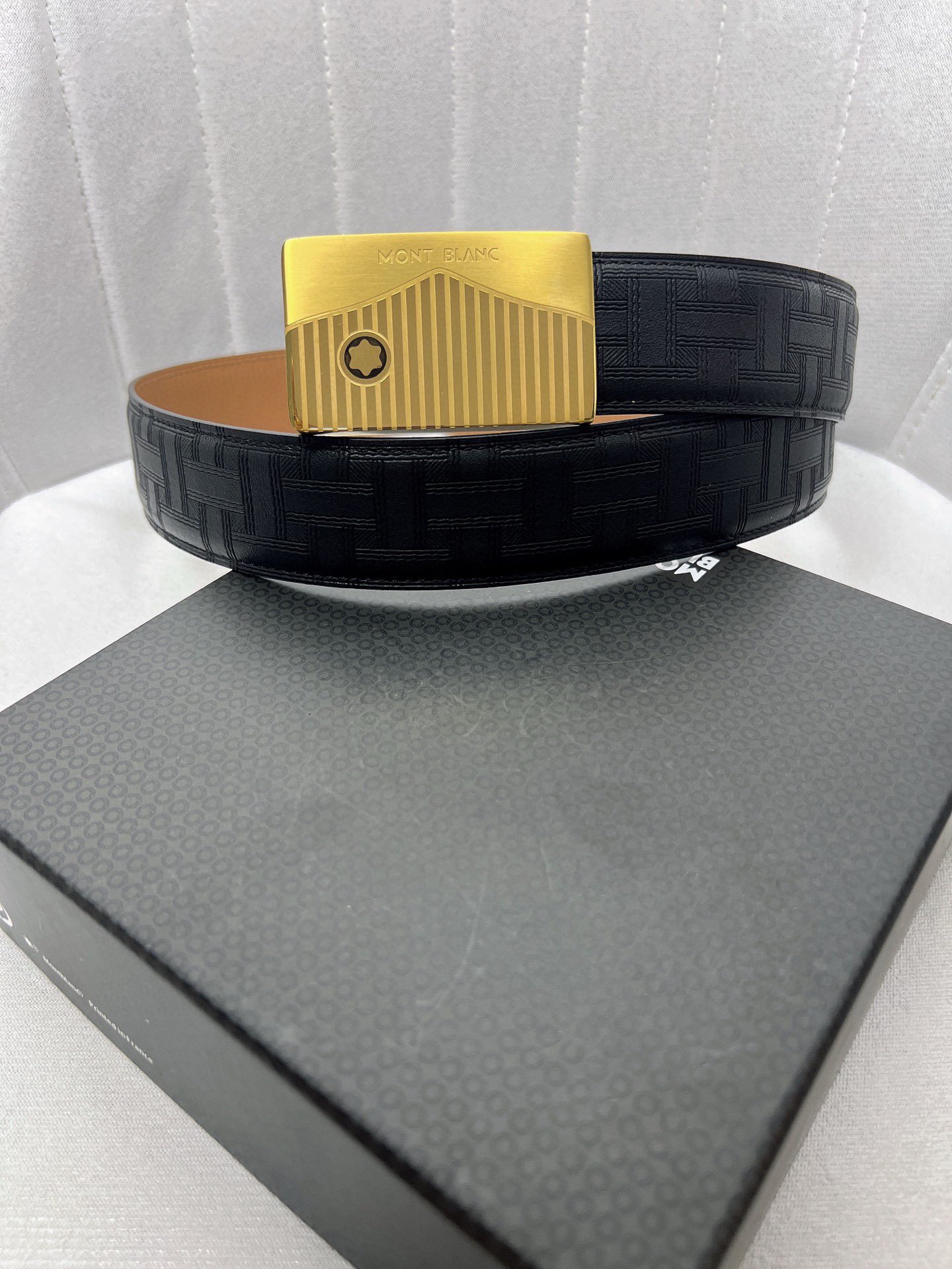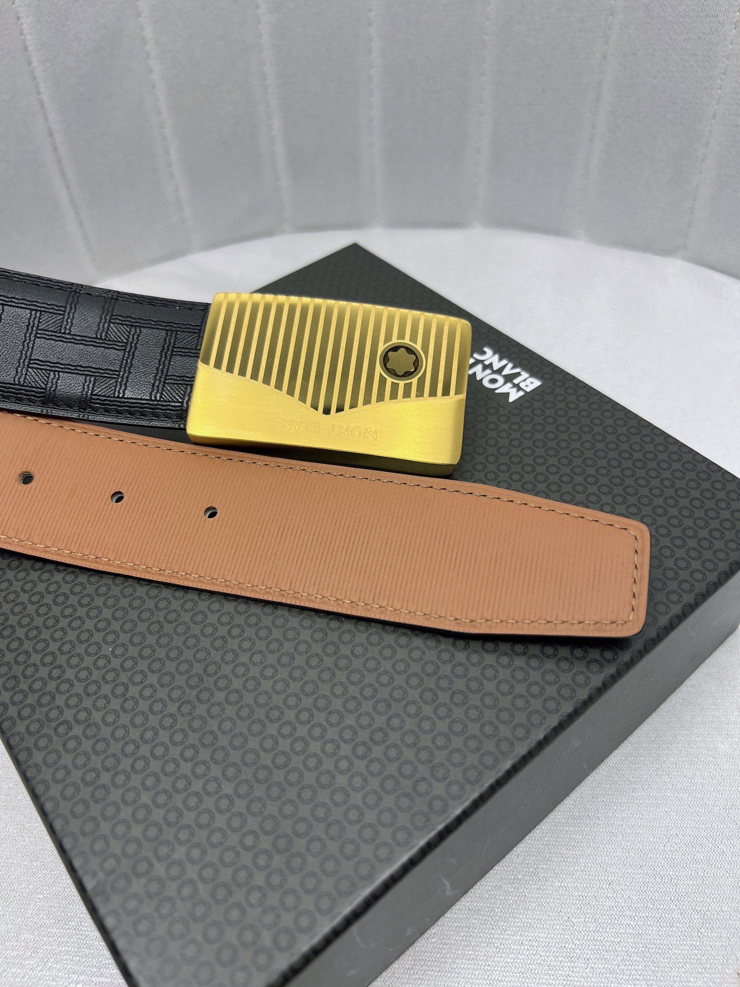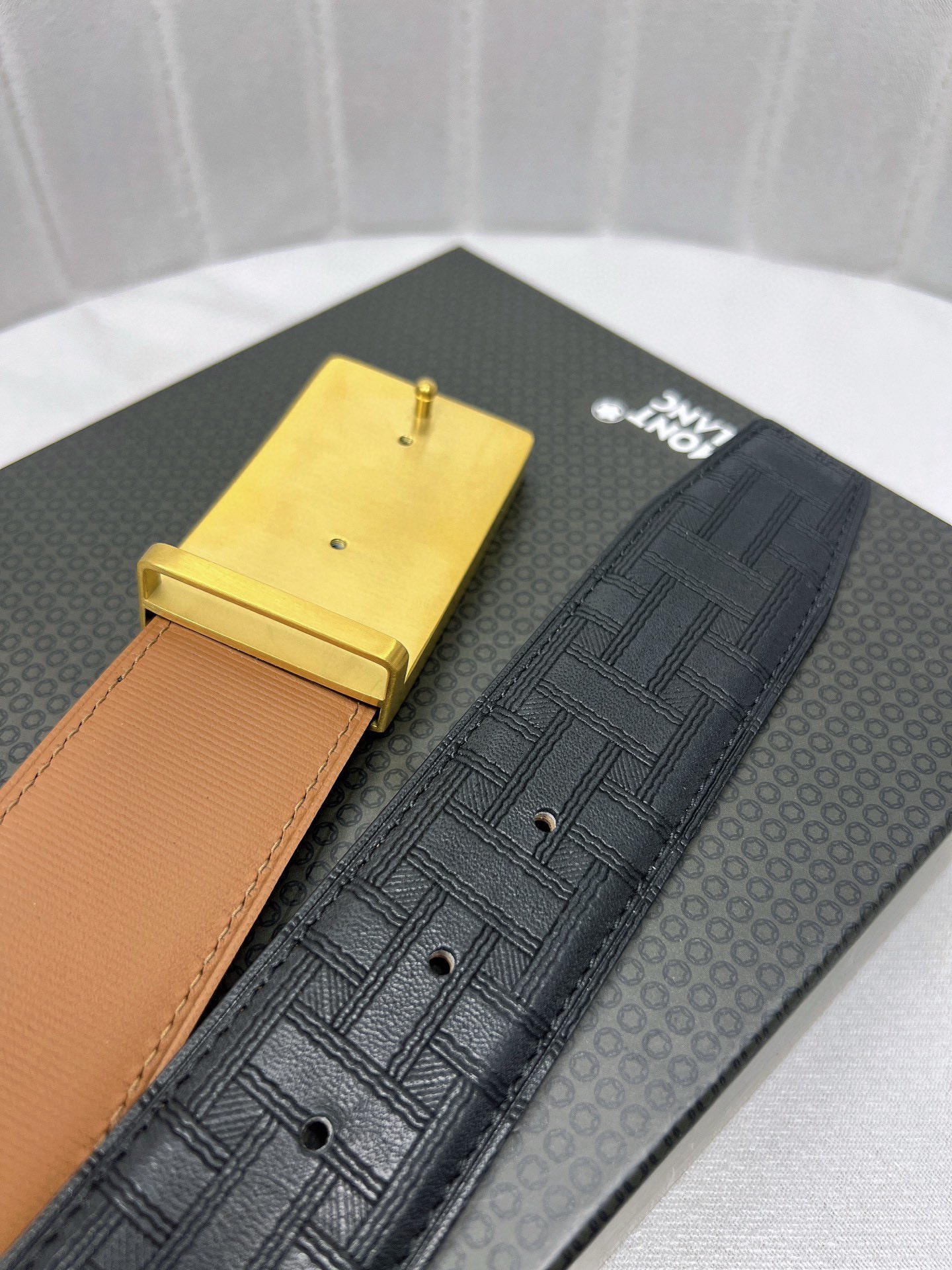 这款皮带是AAAAA 1:1 质量 (非常棒). 使用了和原版一模一样的材料. 商标部分也保持了和万宝龙/Montblanc一样. 图片拍摄是实物皮带拍摄, 您所收到的实物保证和我们图片一模一样.