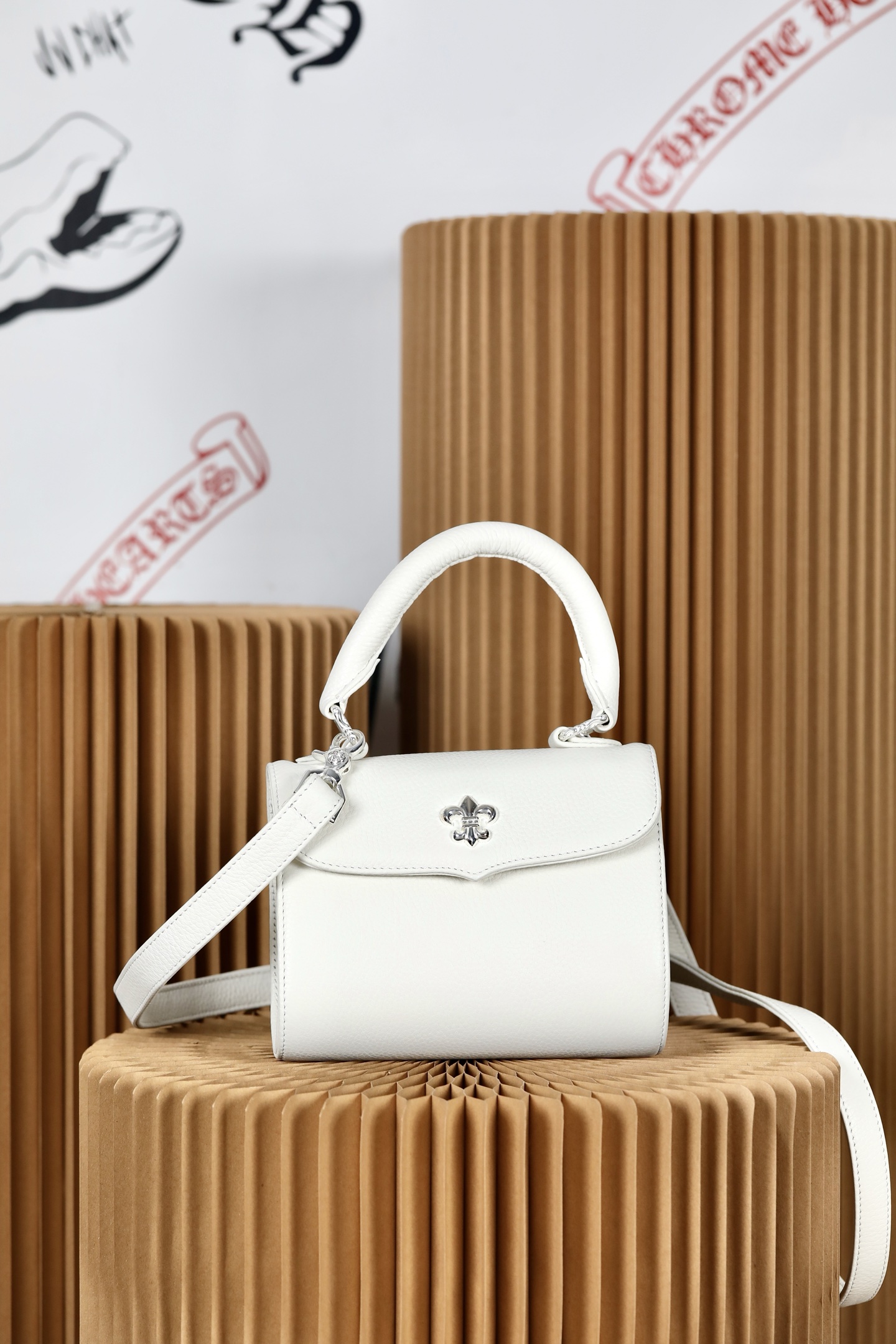 这款包包是AAAAA 1:1 质量 (非常棒). 使用了和原版一模一样的材料. 商标部分也保持了和克罗心/Chrome Hearts一样. 图片拍摄是实物包包拍摄, 您所收到的实物保证和我们图片一模一样.