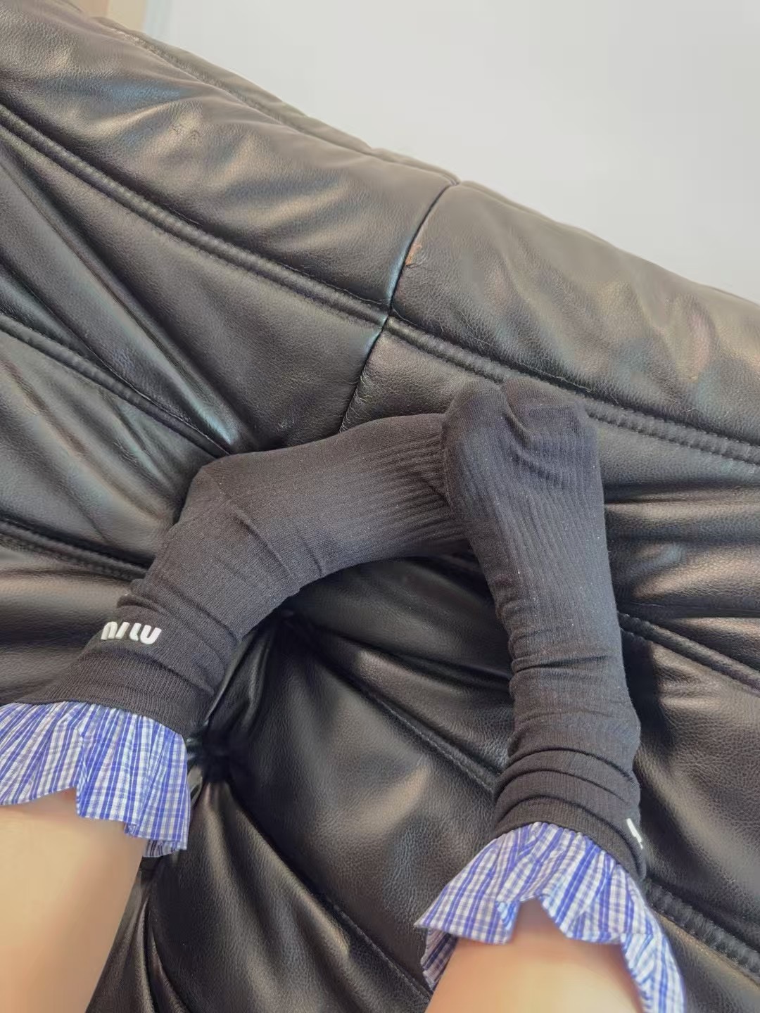 这款sock是AAAAA 1:1 质量 (非常棒). 使用了和原版一模一样的材料. 商标部分也保持了和缪缪/Miu Miu一样. 图片拍摄是实物sock拍摄, 您所收到的实物保证和我们图片一模一样.