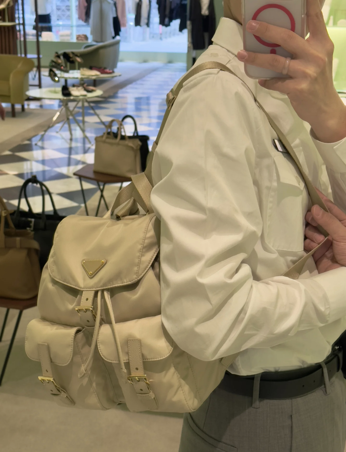 这款包包是AAAAA 1:1 质量 (非常棒). 使用了和原版一模一样的材料. 商标部分也保持了和普拉达/Prada一样. 图片拍摄是实物包包拍摄, 您所收到的实物保证和我们图片一模一样.