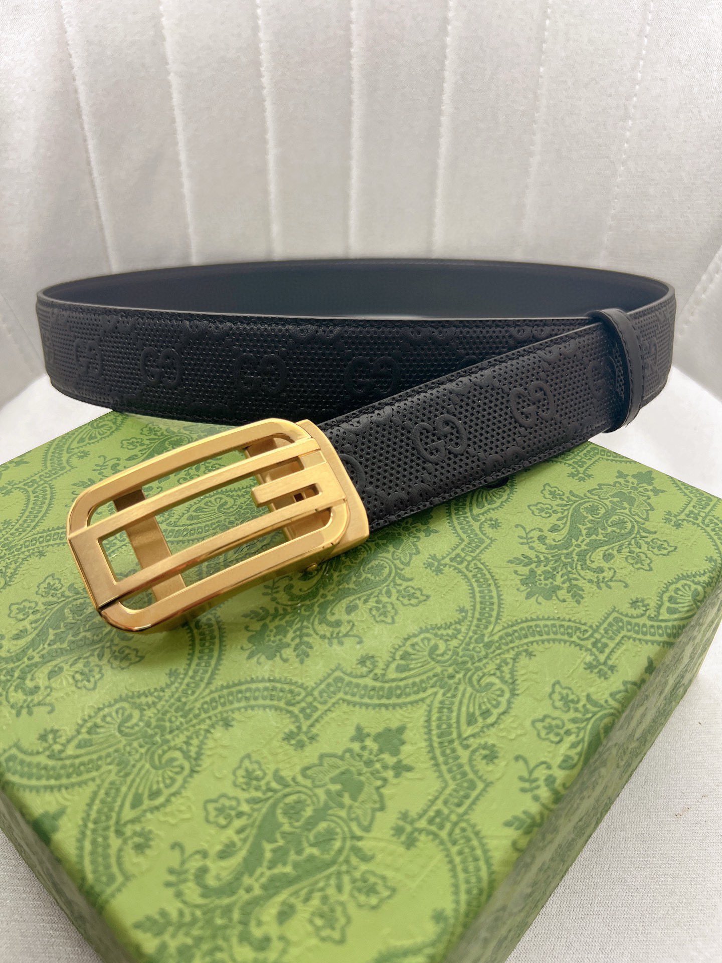 这款皮带是AAAAA 1:1 质量 (非常棒). 使用了和原版一模一样的材料. 商标部分也保持了和古奇/Gucci一样. 图片拍摄是实物皮带拍摄, 您所收到的实物保证和我们图片一模一样.