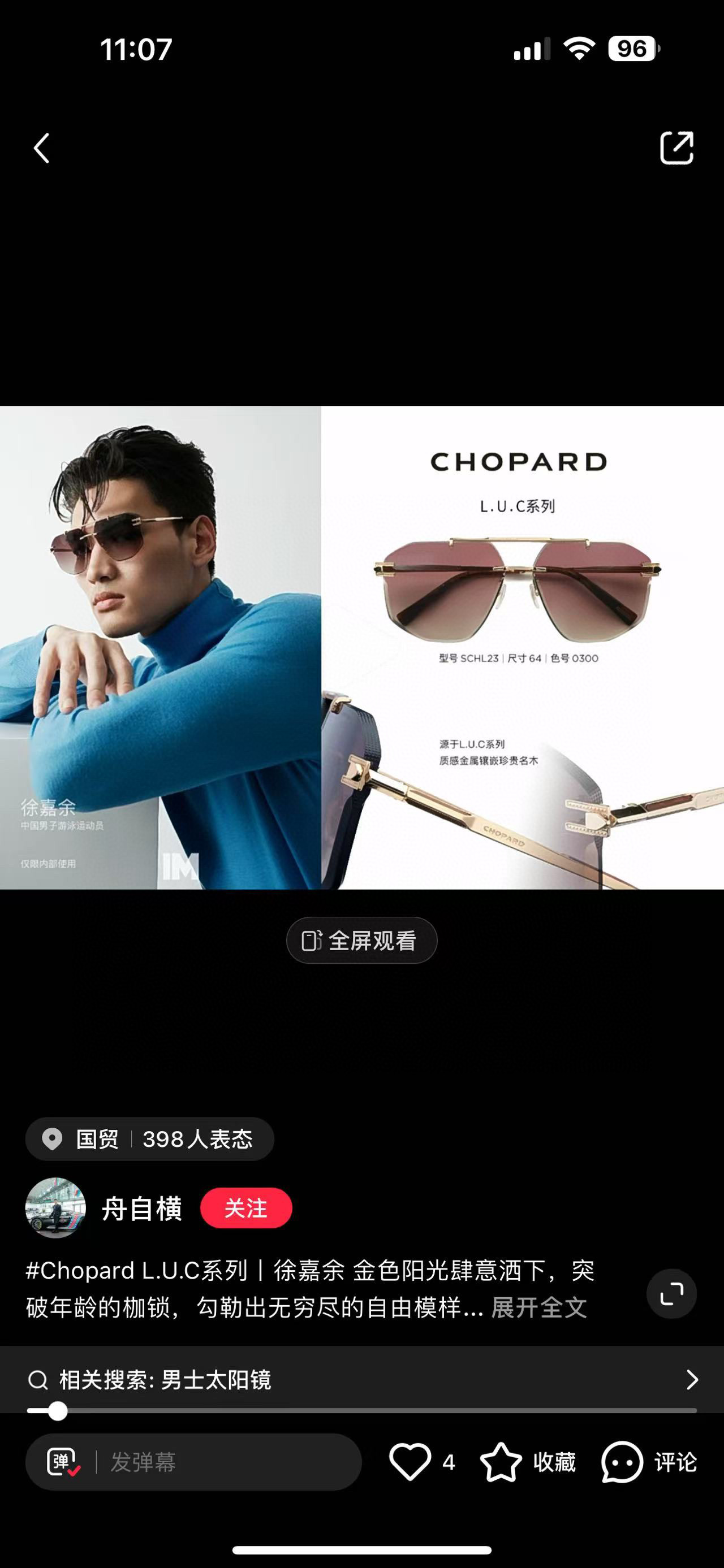 这款太阳眼镜是AAAAA 1:1 质量 (非常棒). 使用了和原版一模一样的材料. 商标部分也保持了和萧邦/Chopard一样. 图片拍摄是实物太阳眼镜拍摄, 您所收到的实物保证和我们图片一模一样.