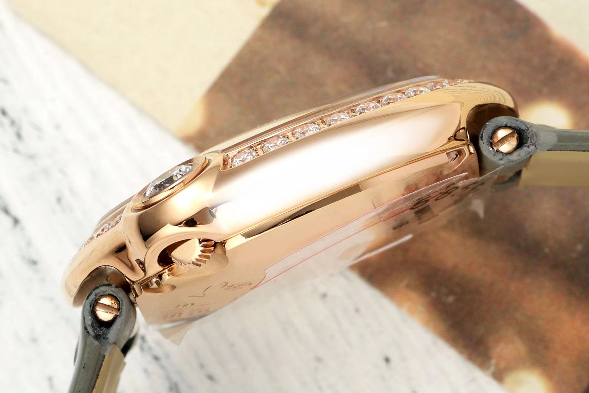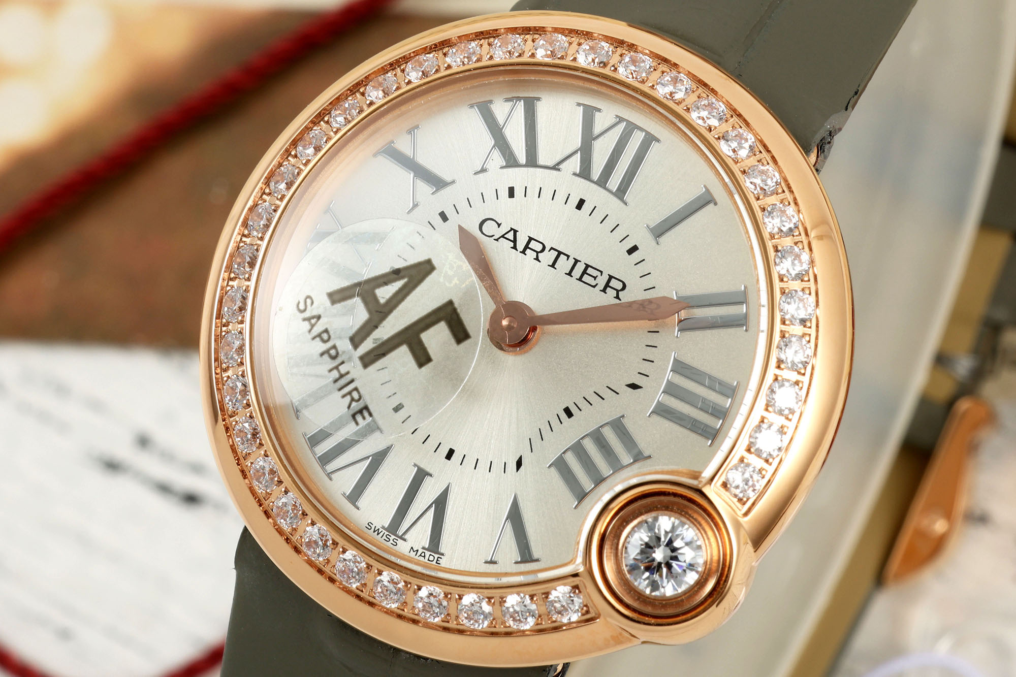 这款手表是AAAAA 1:1 质量 (非常棒). 使用了和原版一模一样的材料. 商标部分也保持了和卡地亚/Cartier一样. 图片拍摄是实物手表拍摄, 您所收到的实物保证和我们图片一模一样.