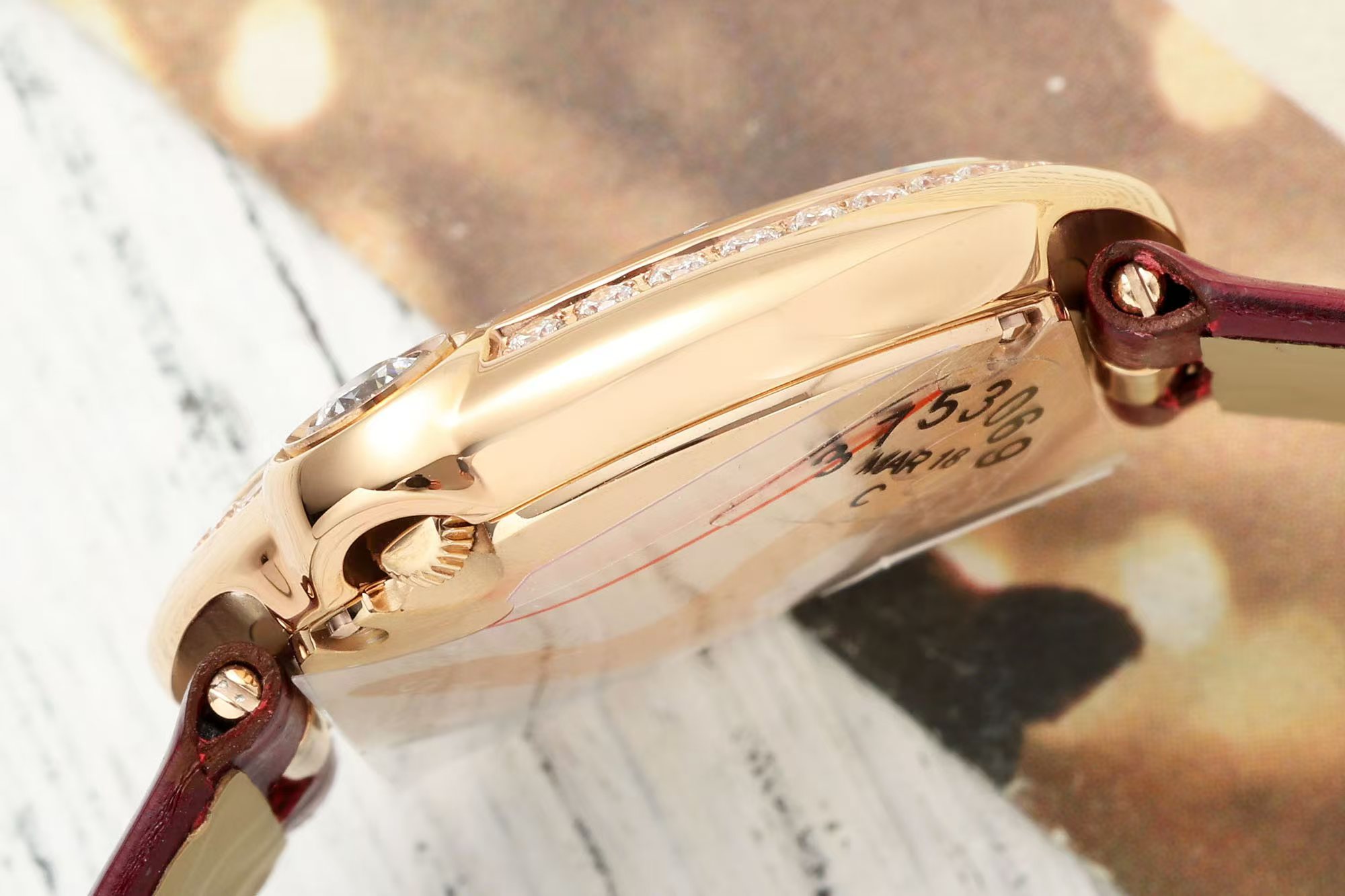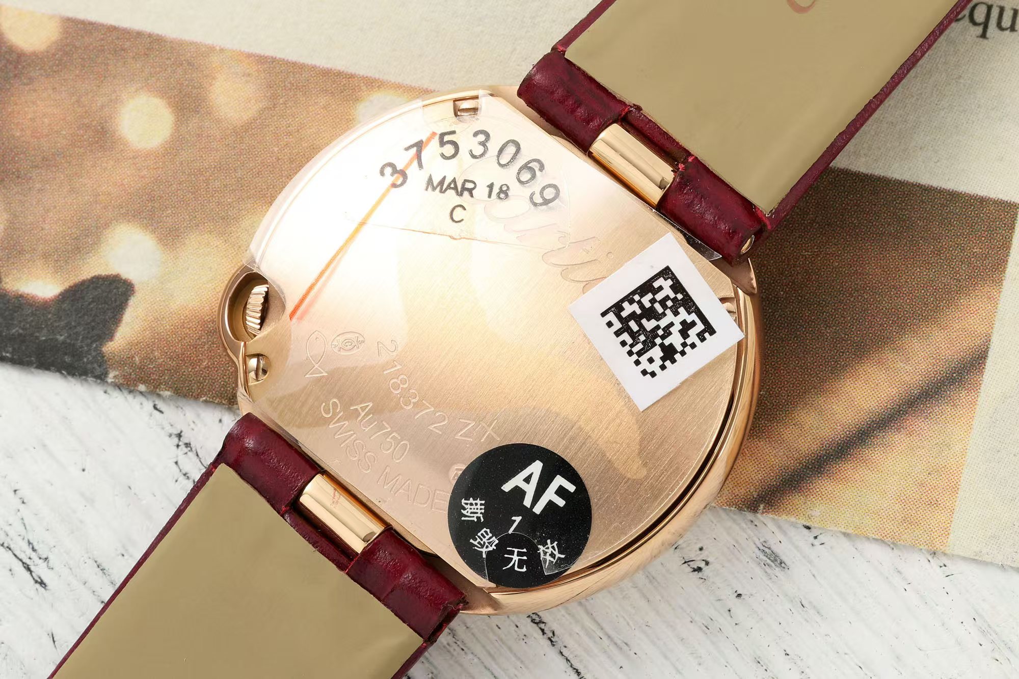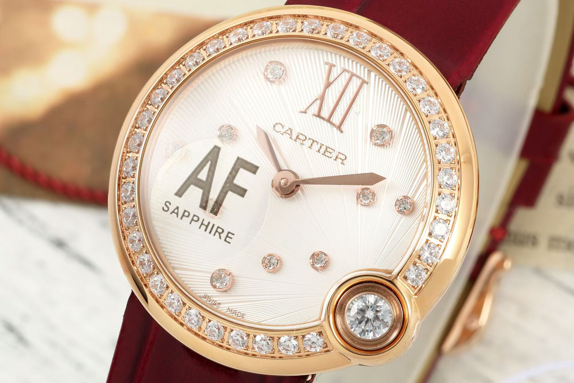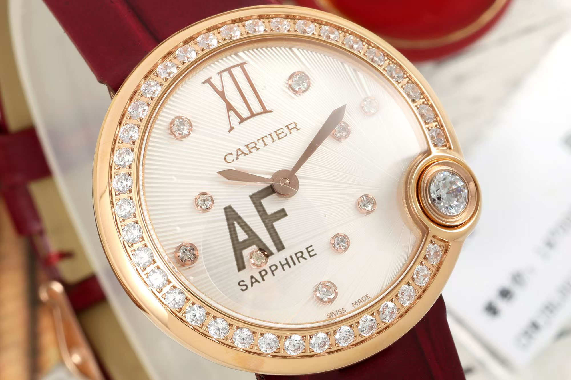 这款手表是AAAAA 1:1 质量 (非常棒). 使用了和原版一模一样的材料. 商标部分也保持了和卡地亚/Cartier一样. 图片拍摄是实物手表拍摄, 您所收到的实物保证和我们图片一模一样.