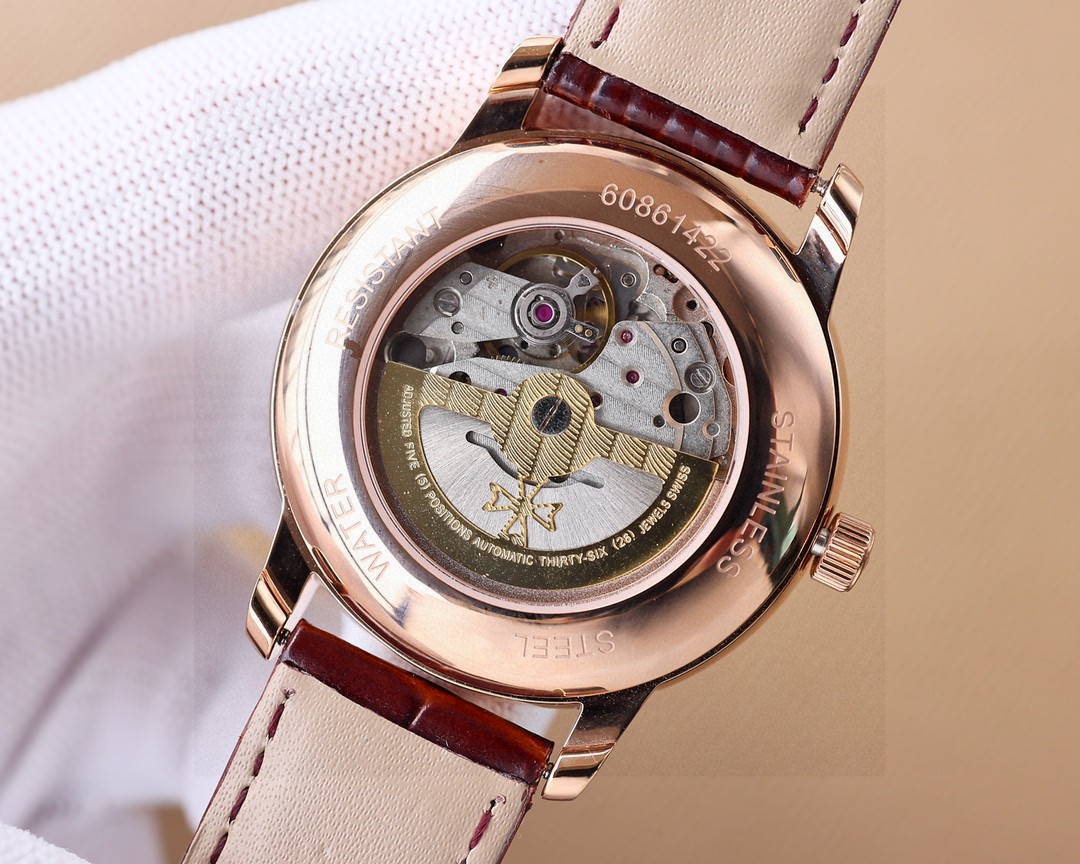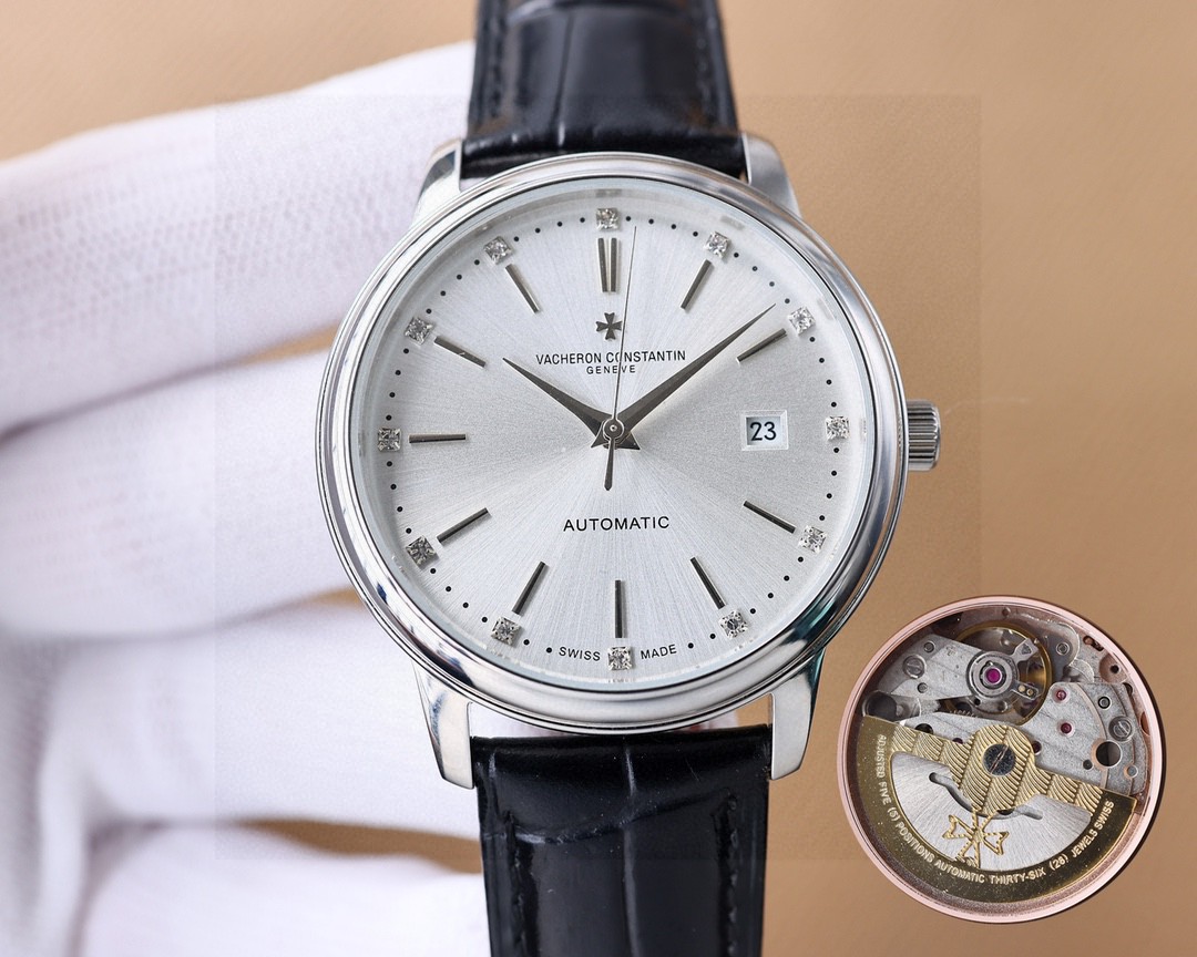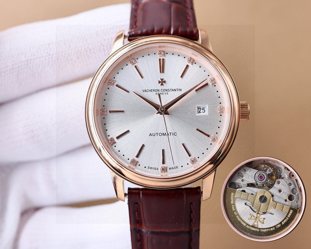 这款手表是AAAAA 1:1 质量 (非常棒). 使用了和原版一模一样的材料. 商标部分也保持了和江诗丹顿/Vacheron Constantin一样. 图片拍摄是实物手表拍摄, 您所收到的实物保证和我们图片一模一样.