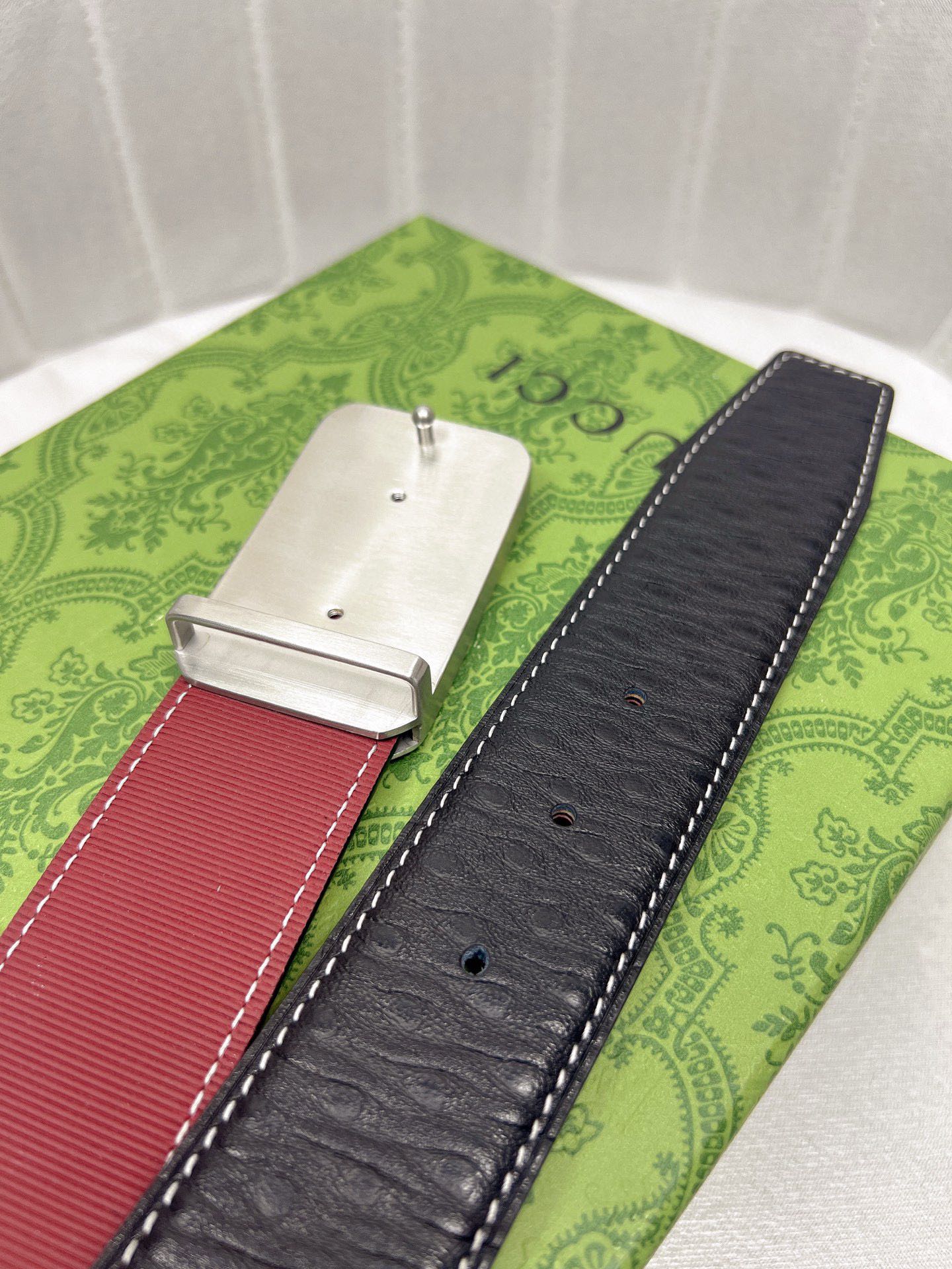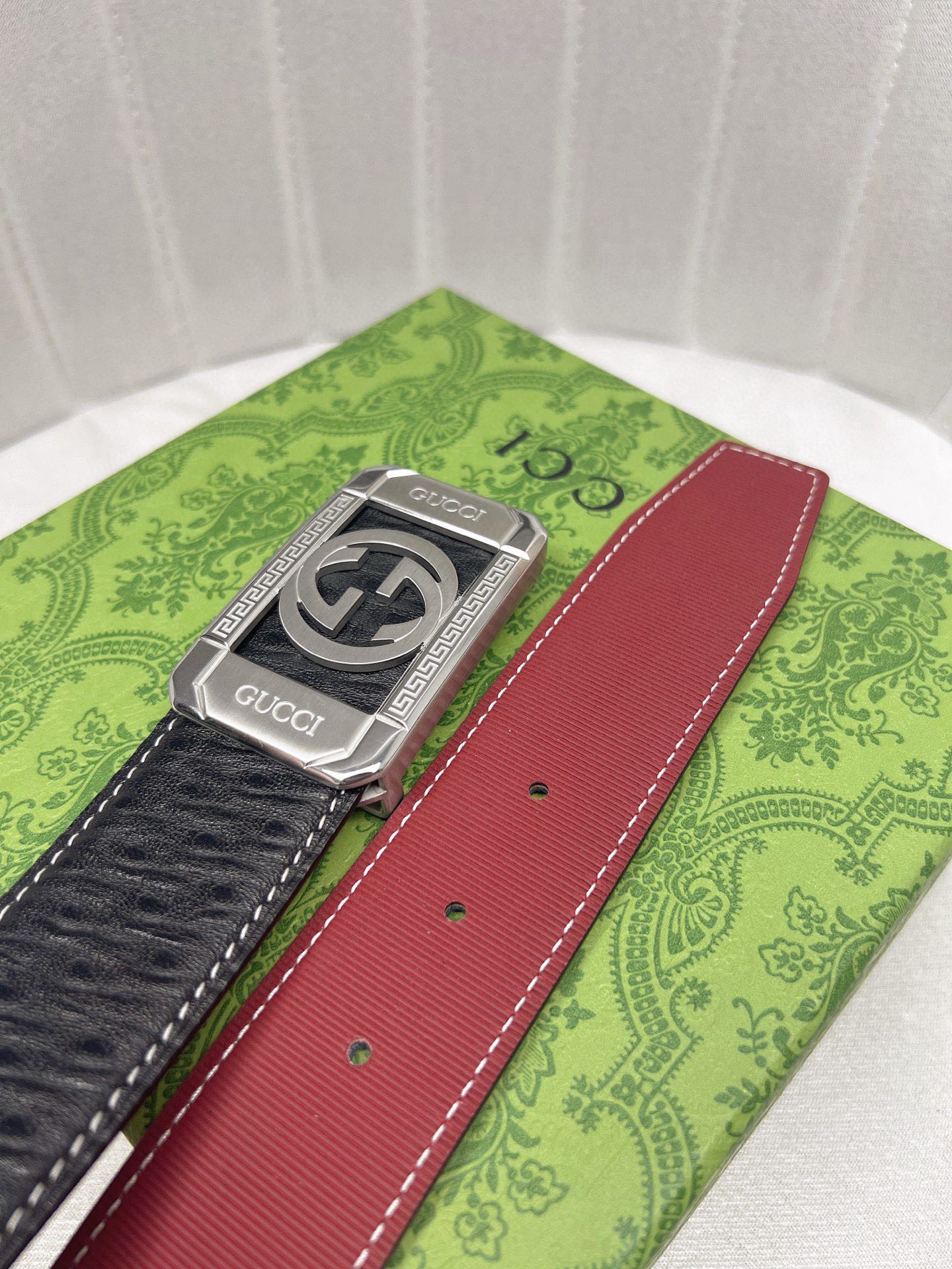 这款皮带是AAAAA 1:1 质量 (非常棒). 使用了和原版一模一样的材料. 商标部分也保持了和古奇/Gucci一样. 图片拍摄是实物皮带拍摄, 您所收到的实物保证和我们图片一模一样.
