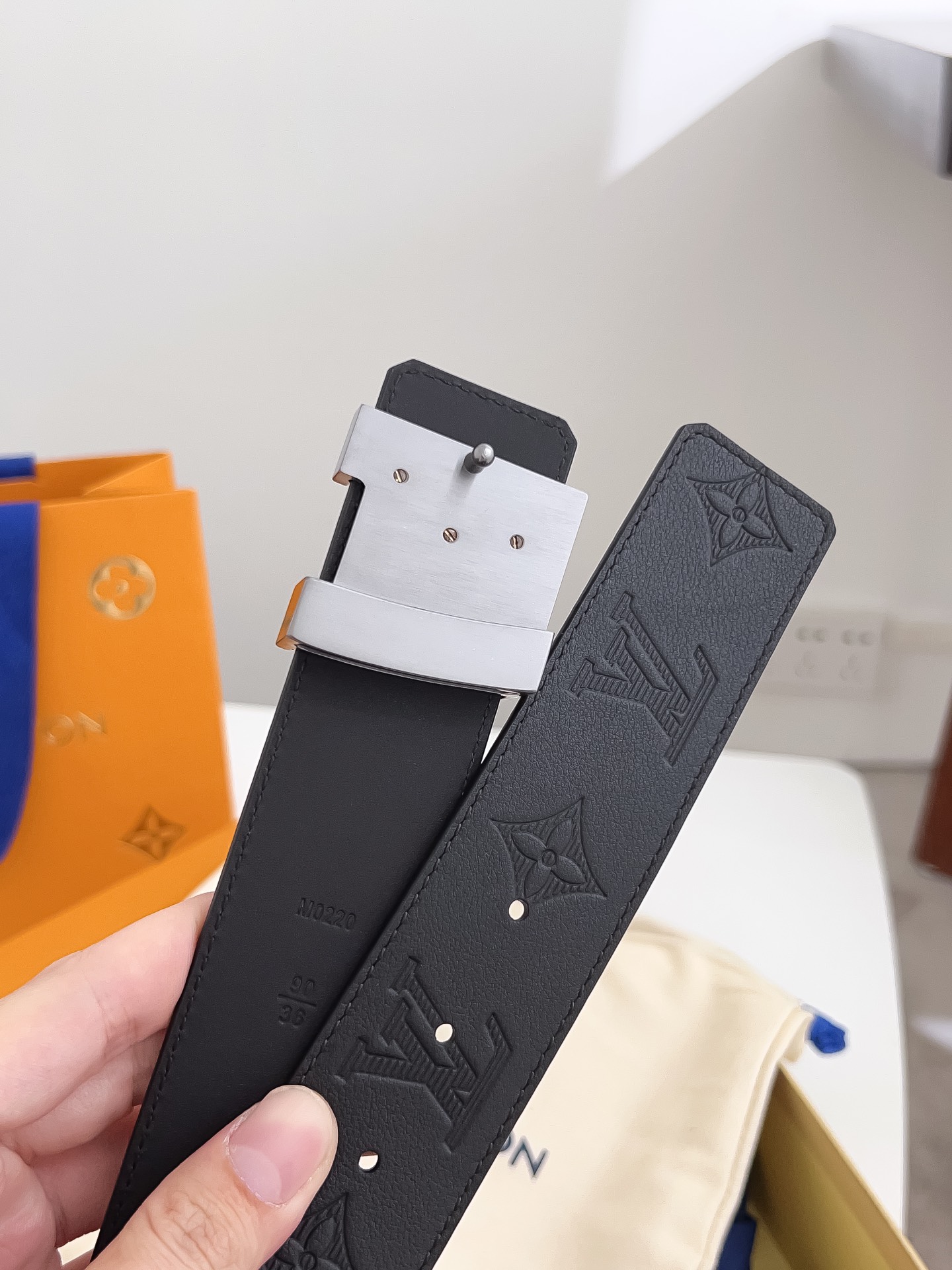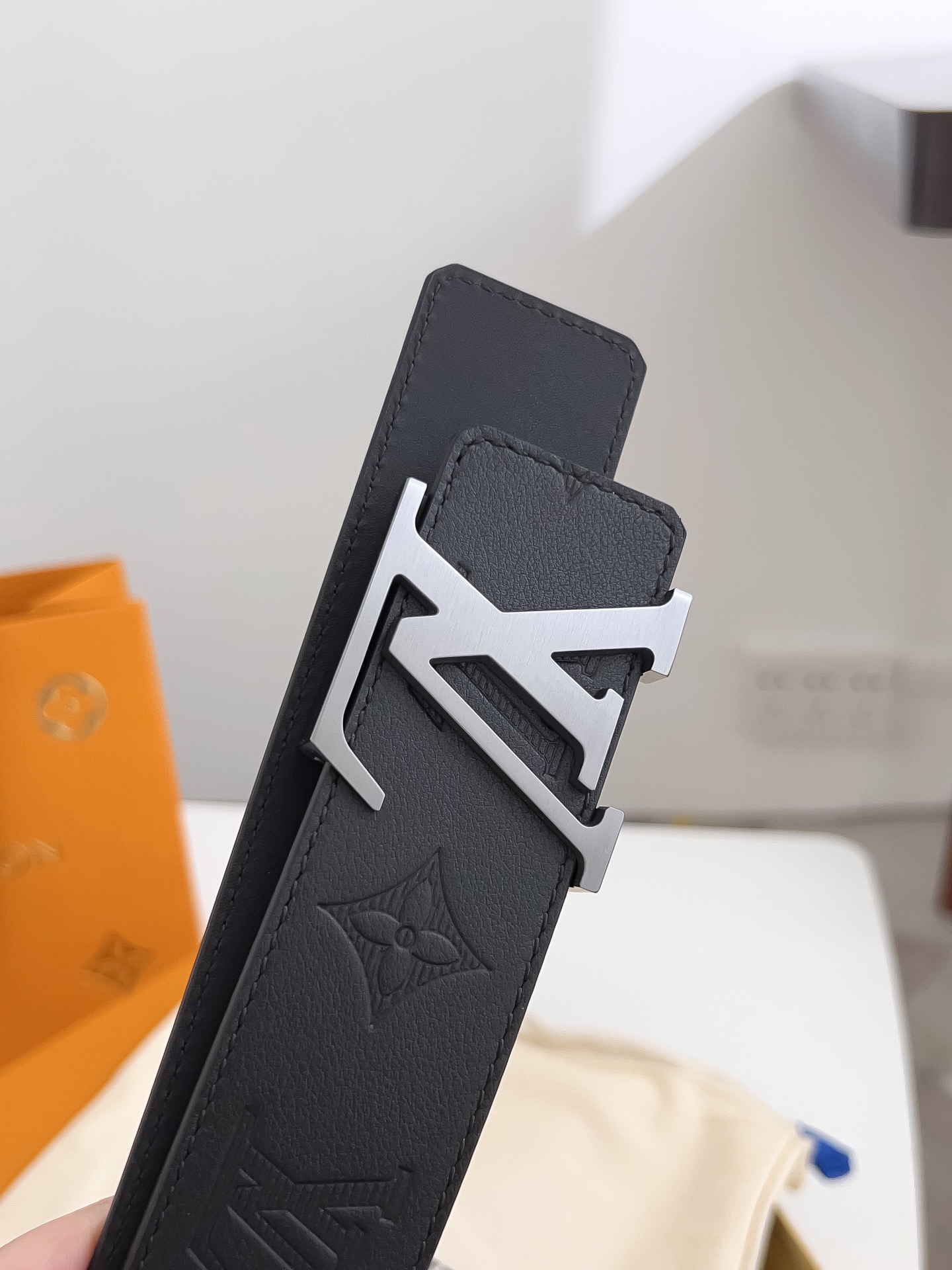 这款皮带是AAAAA 1:1 质量 (非常棒). 使用了和原版一模一样的材料. 商标部分也保持了和路易威登/Louis Vuitton一样. 图片拍摄是实物皮带拍摄, 您所收到的实物保证和我们图片一模一样.