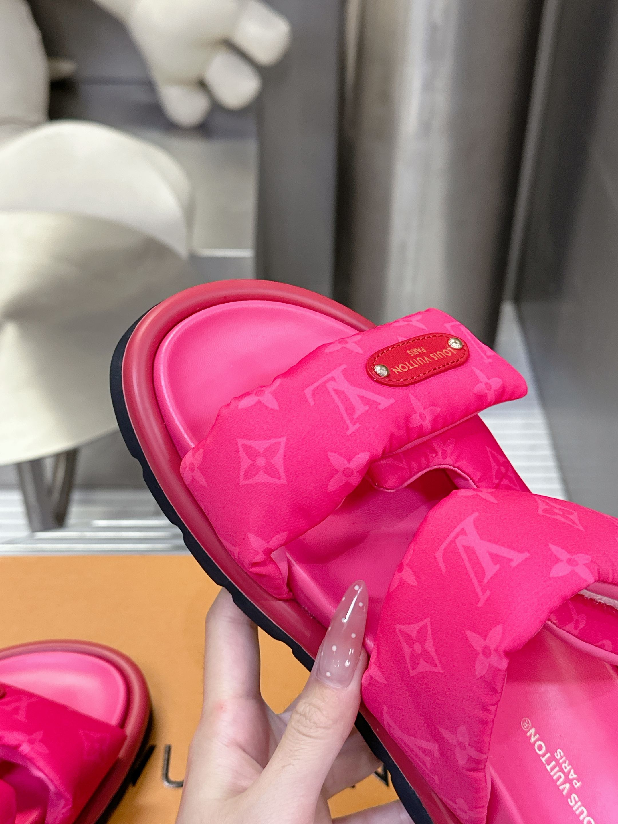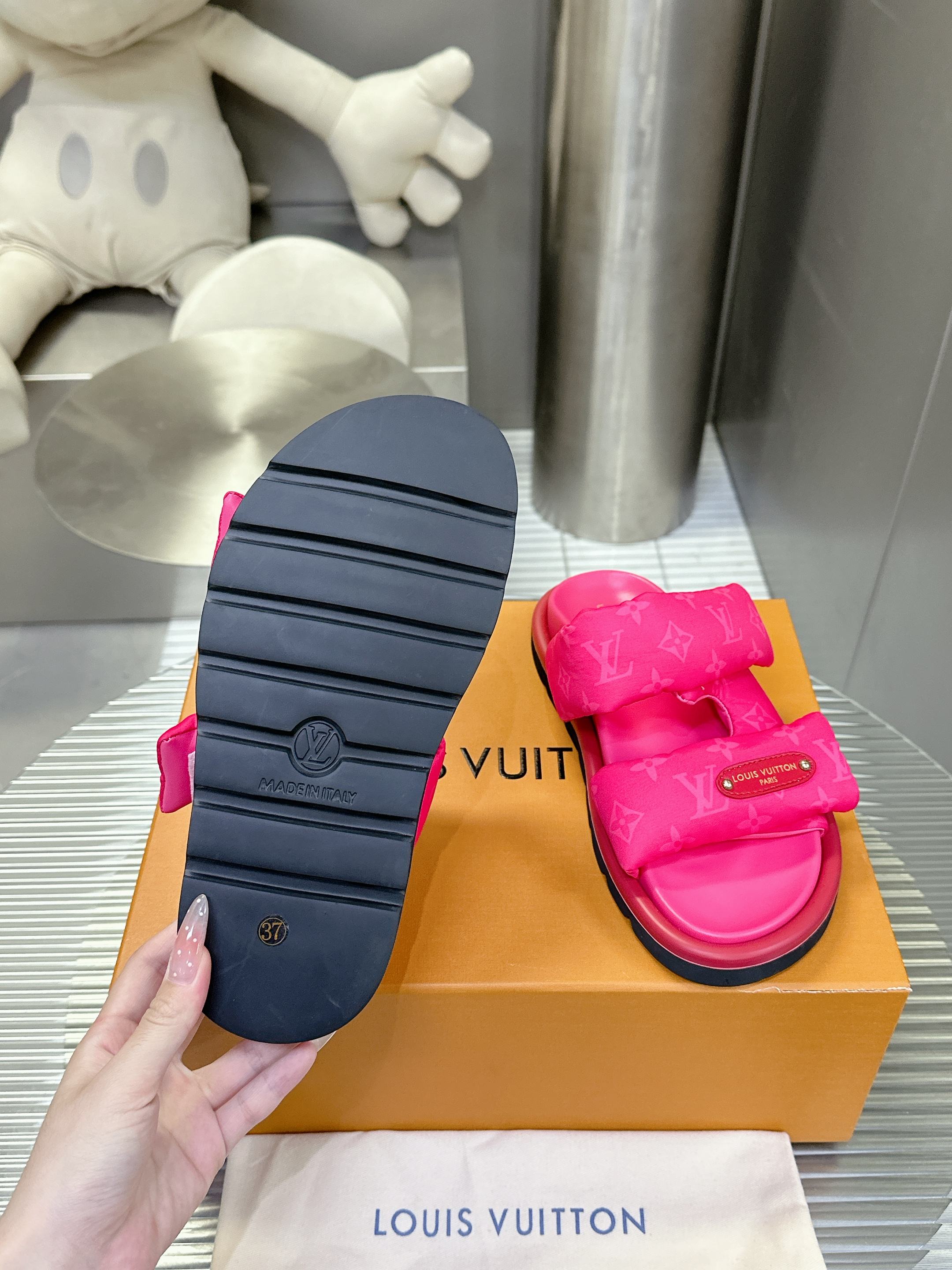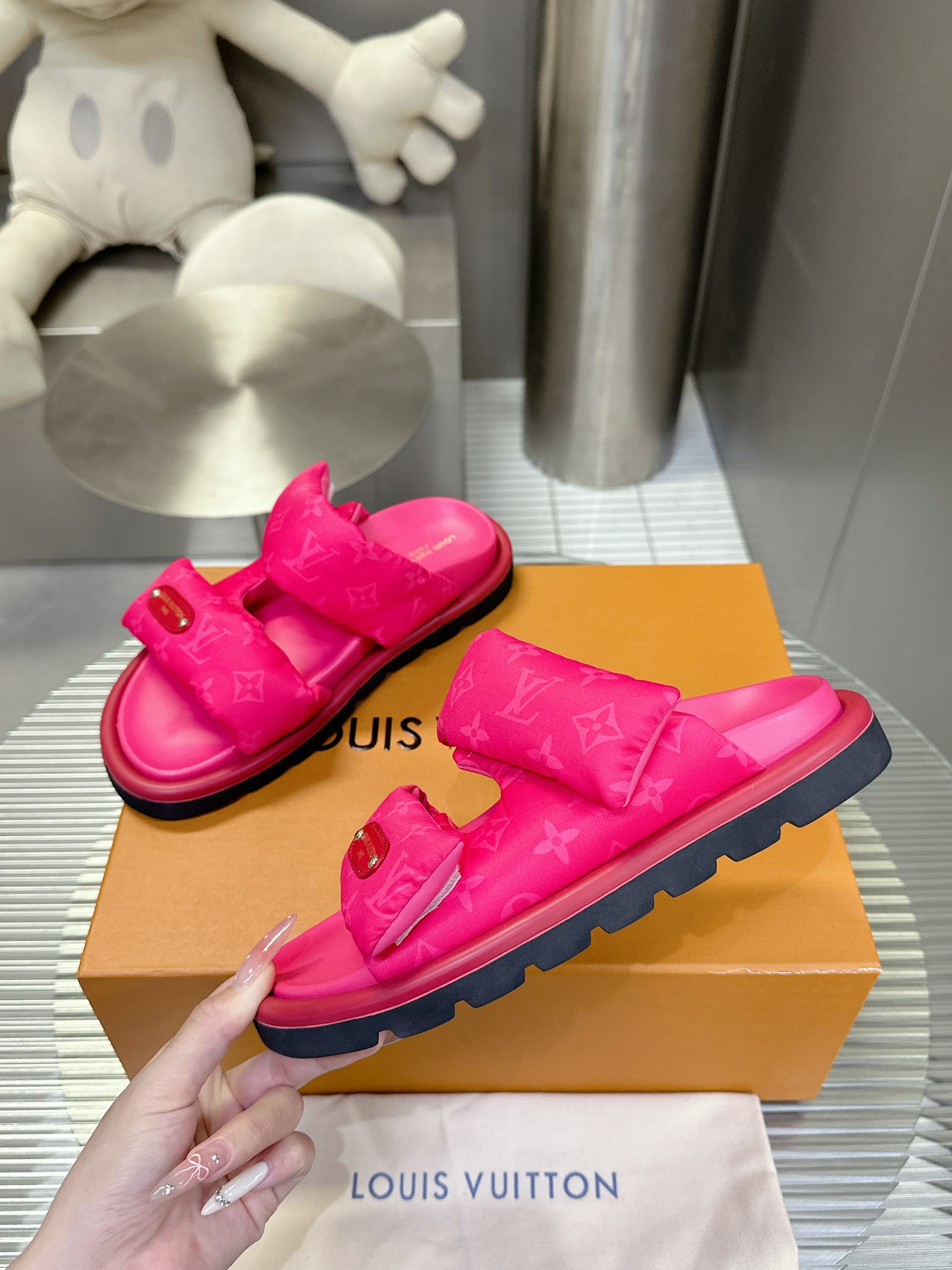这款鞋子是AAAAA 1:1 质量 (非常棒). 使用了和原版一模一样的材料. 商标部分也保持了和路易威登/Louis Vuitton一样. 图片拍摄是实物鞋子拍摄, 您所收到的实物保证和我们图片一模一样.