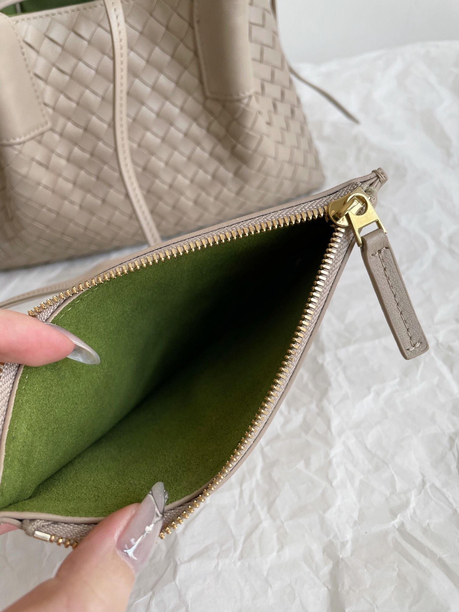 这款包包是AAAAA 1:1 质量 (非常棒). 使用了和原版一模一样的材料. 商标部分也保持了和葆蝶家/Bottega Veneta一样. 图片拍摄是实物包包拍摄, 您所收到的实物保证和我们图片一模一样.
