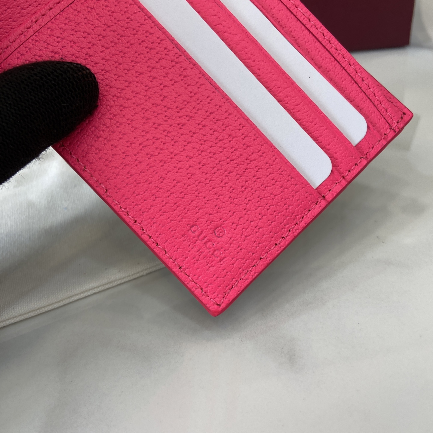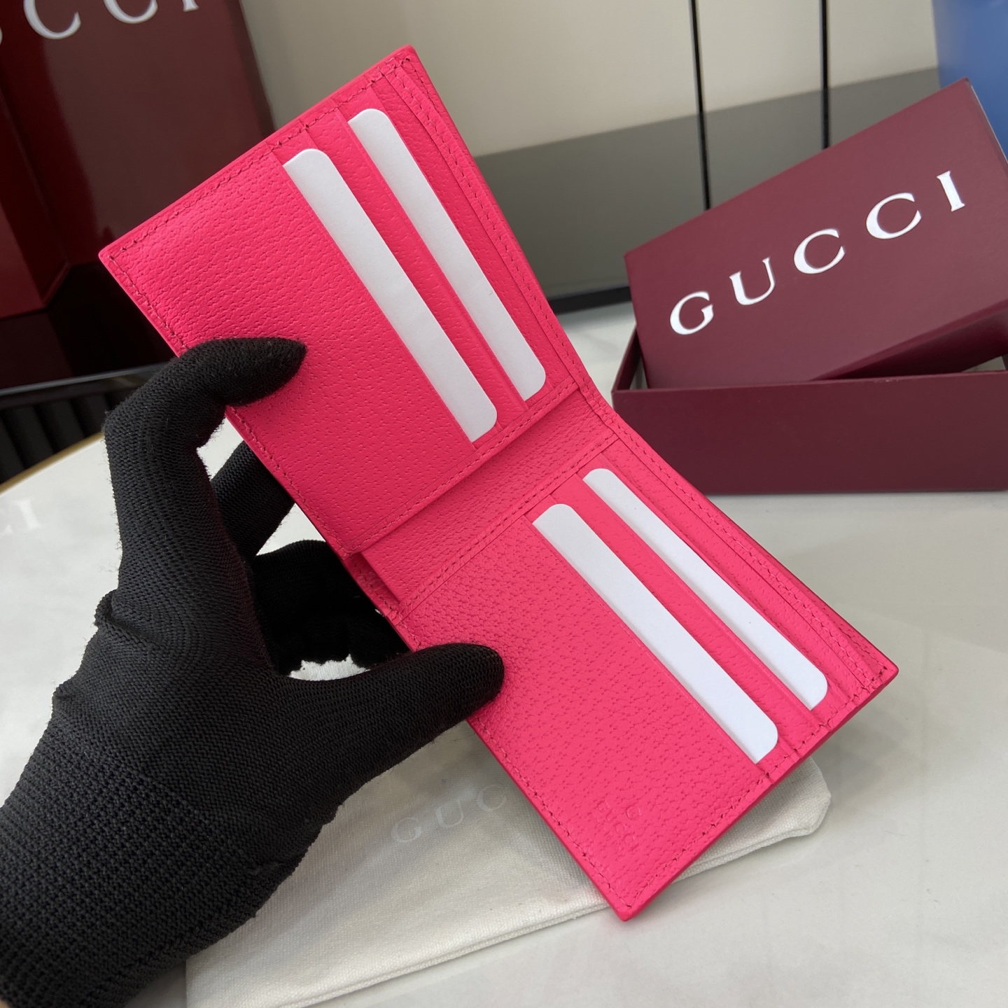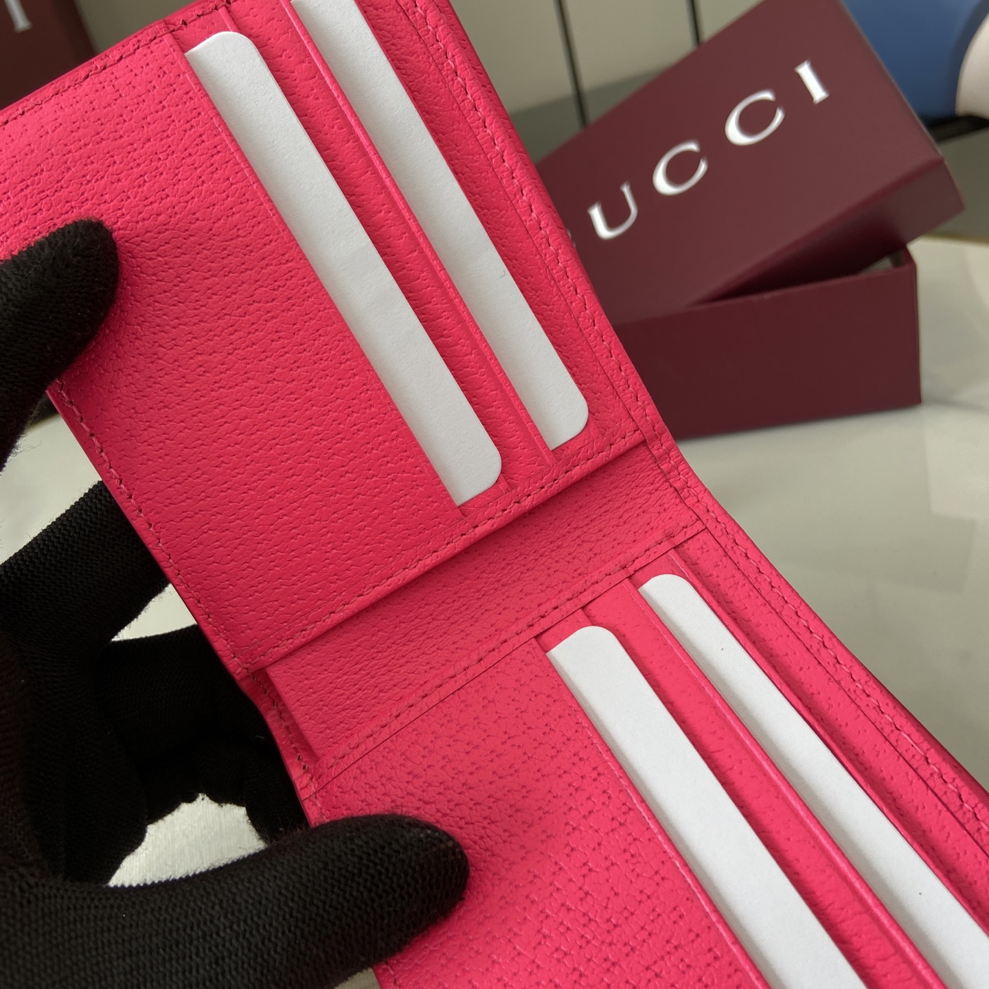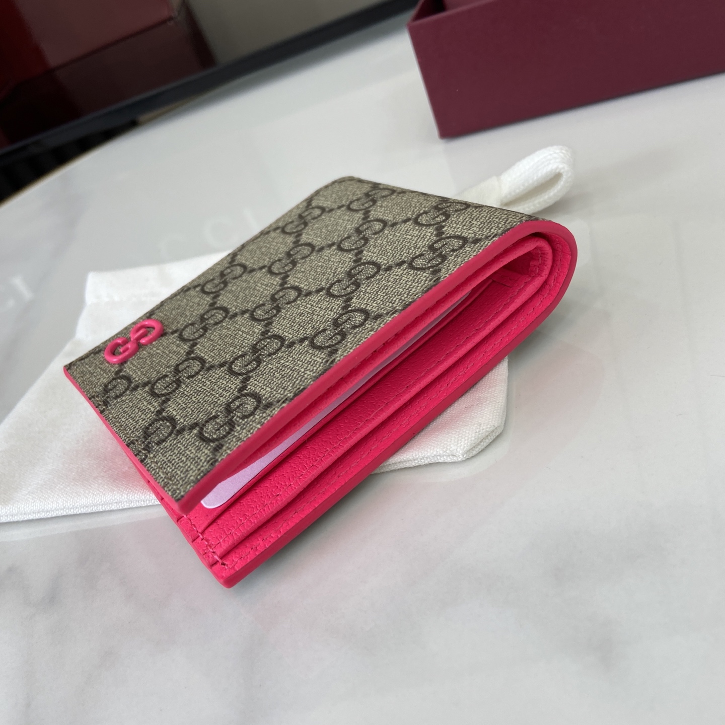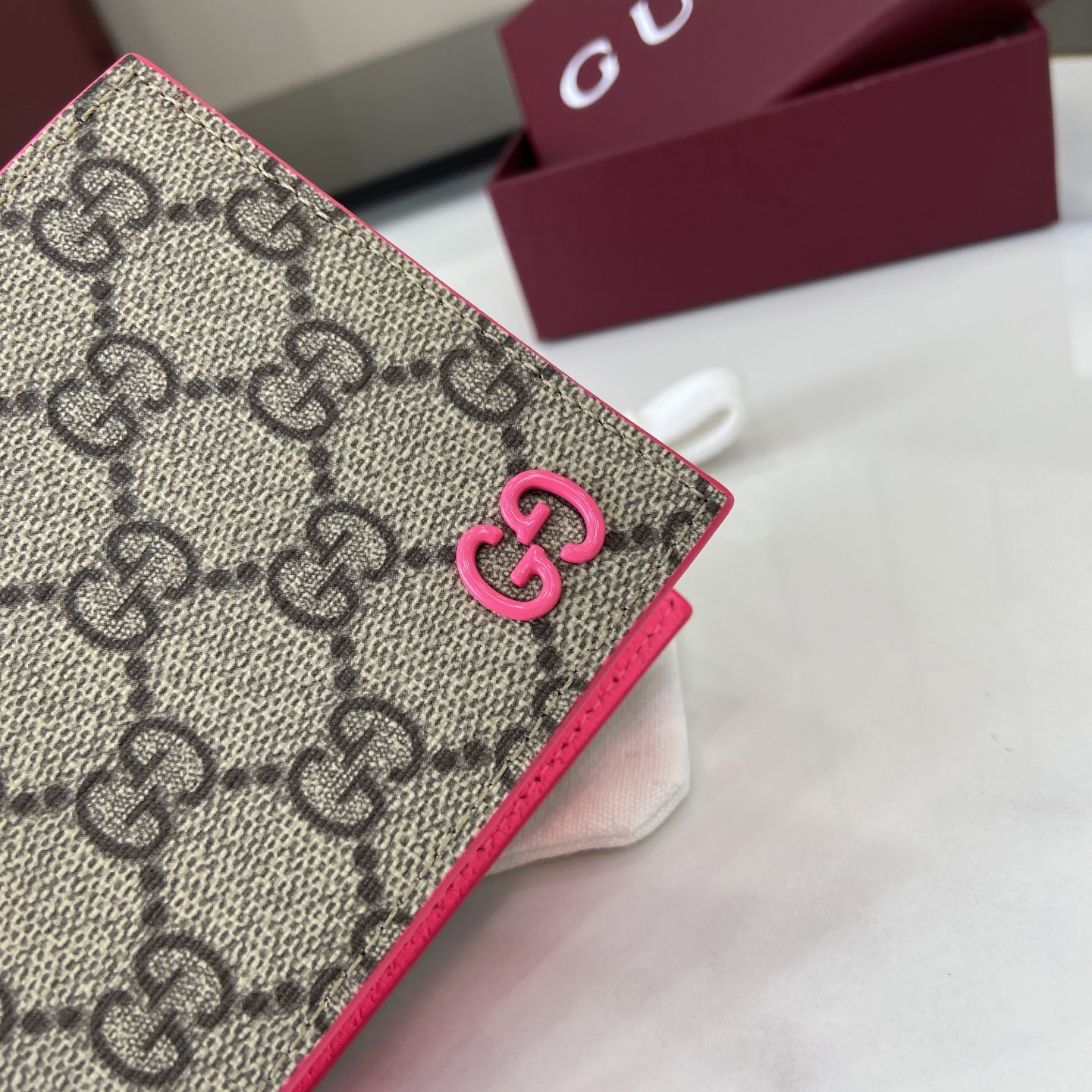 这款钱包是AAAAA 1:1 质量 (非常棒). 使用了和原版一模一样的材料. 商标部分也保持了和古奇/Gucci一样. 图片拍摄是实物钱包拍摄, 您所收到的实物保证和我们图片一模一样.