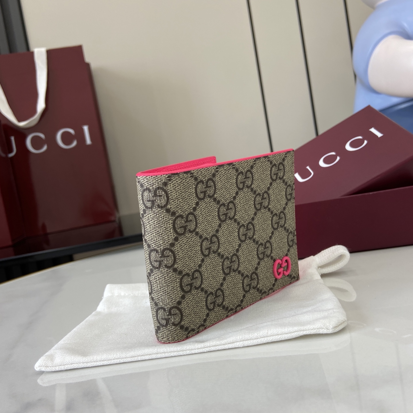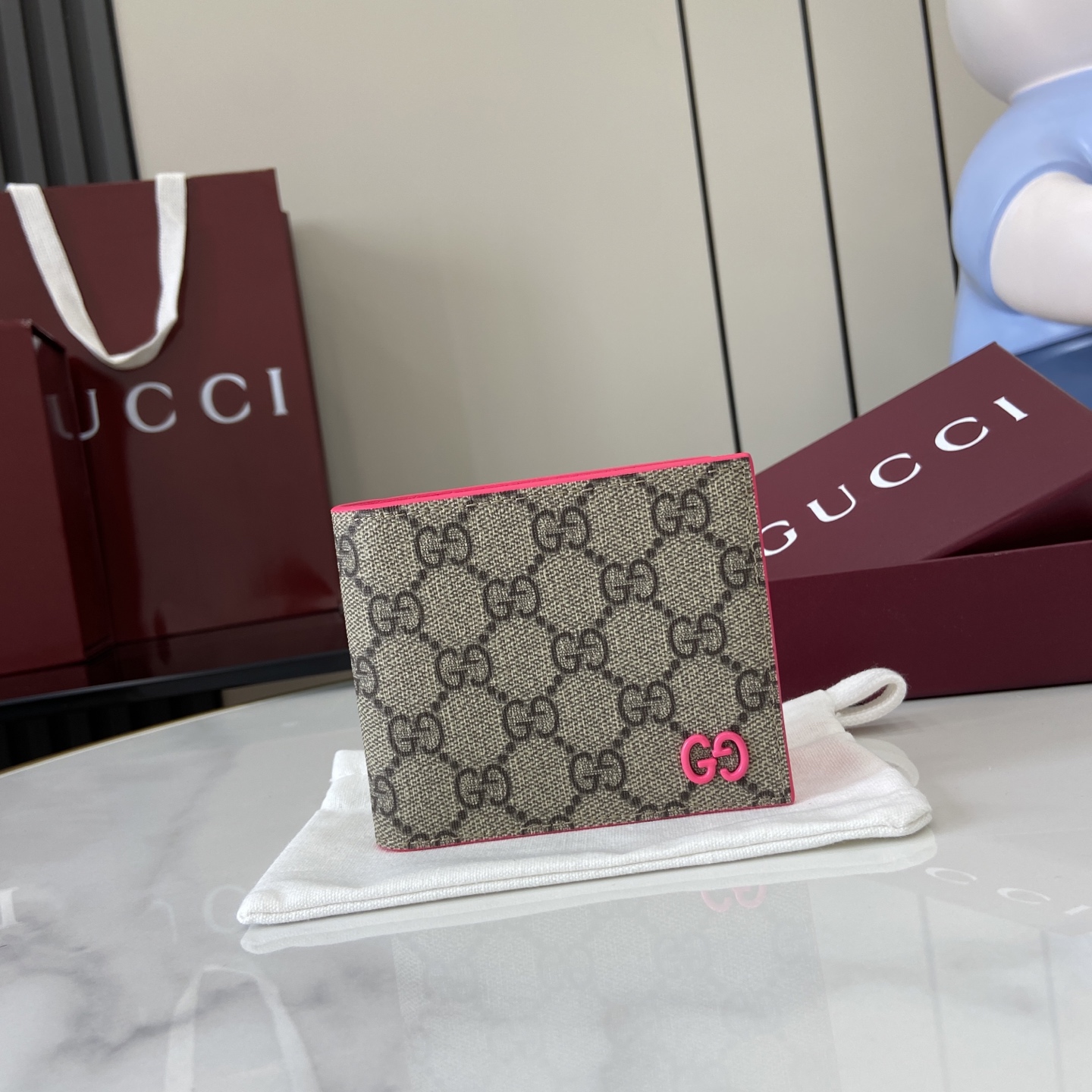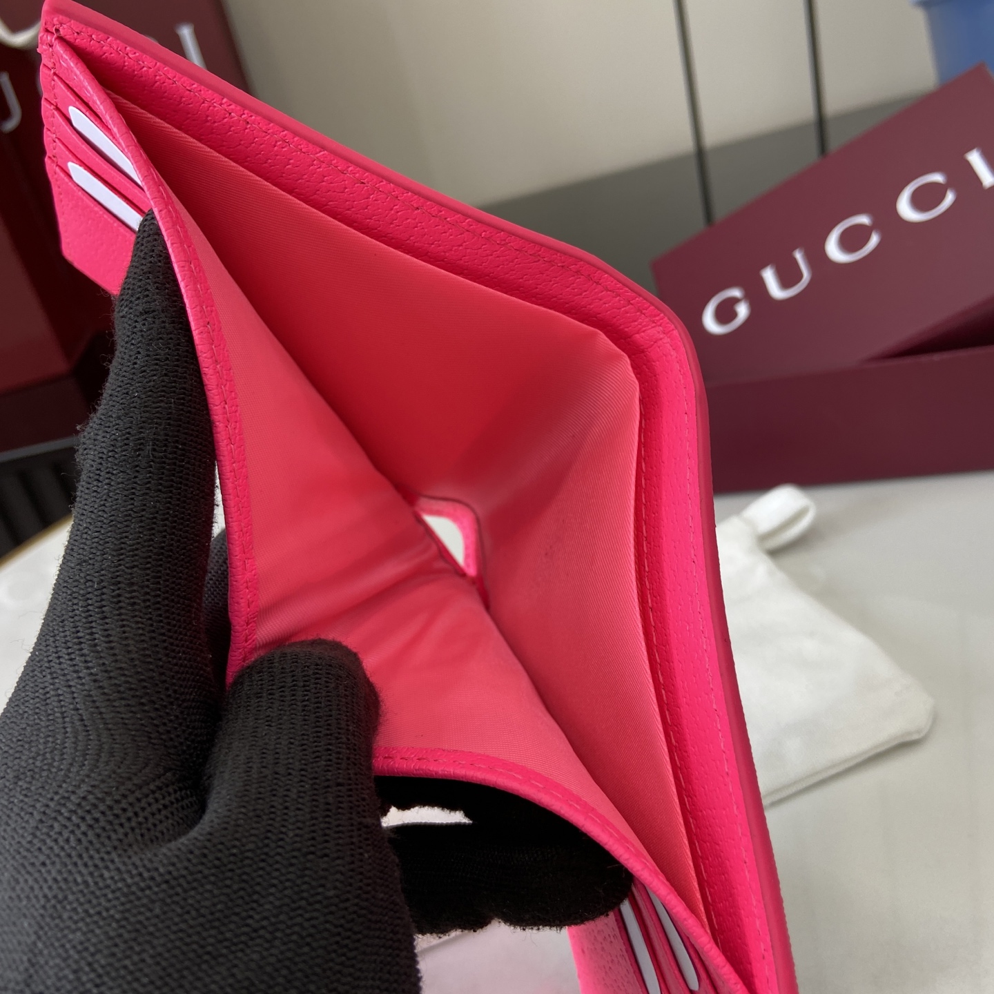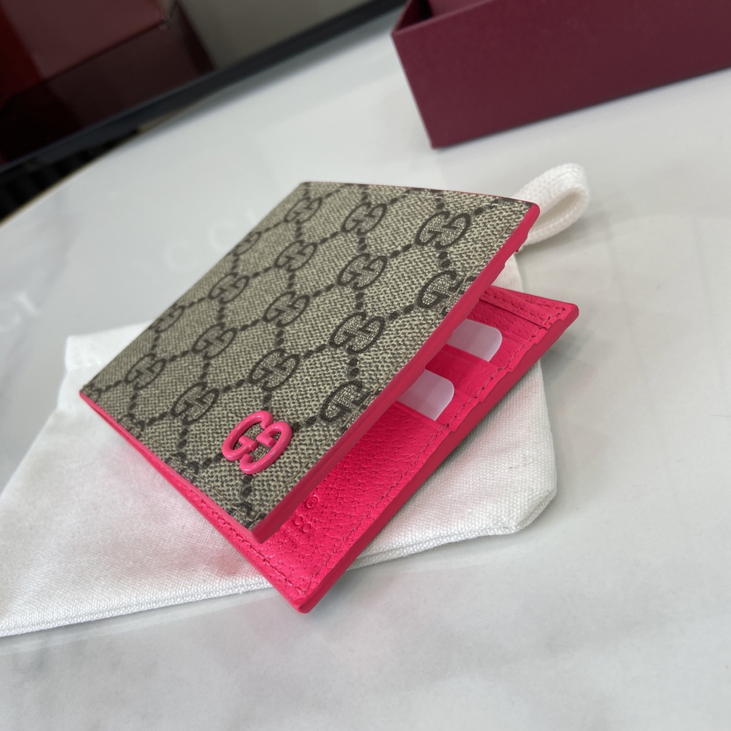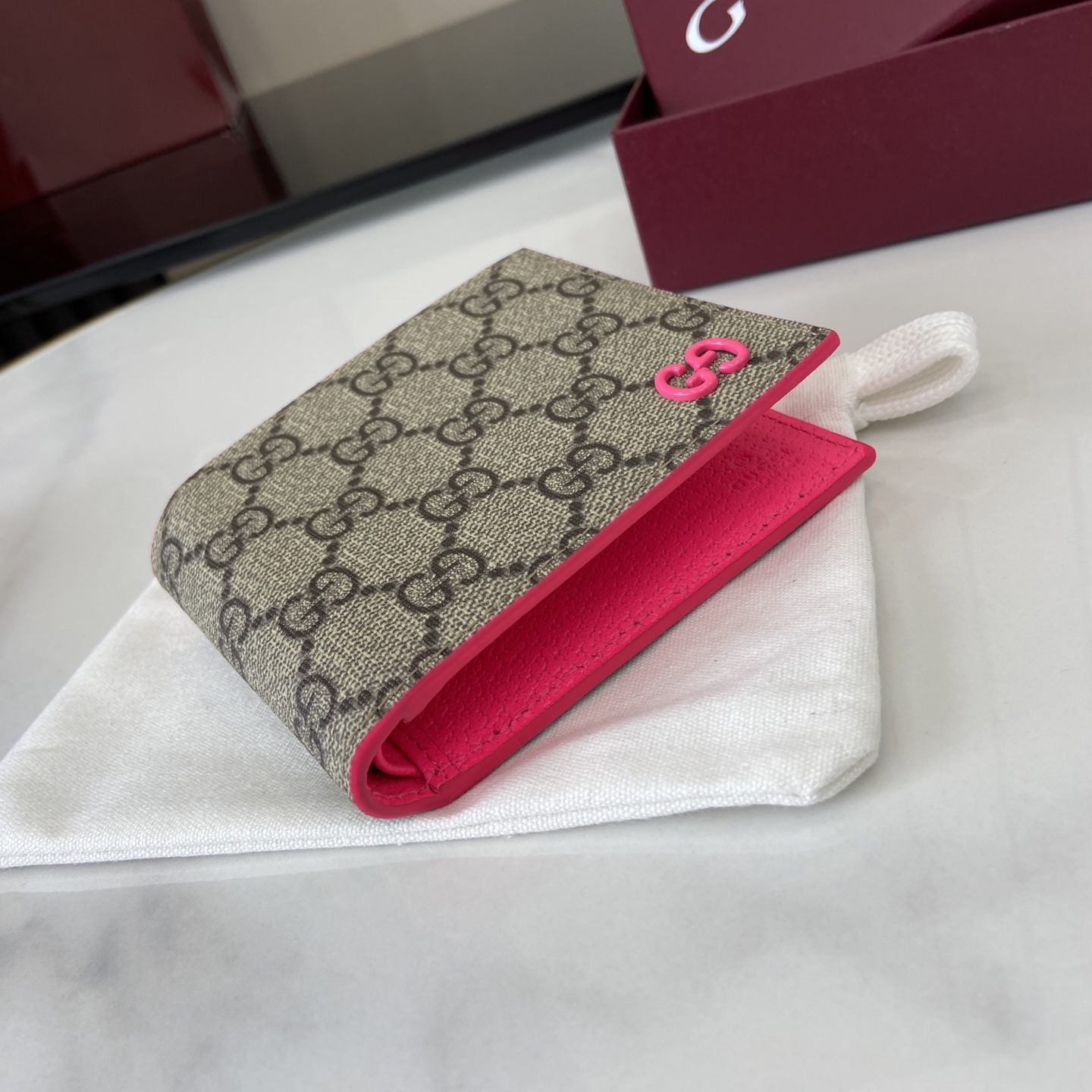 这款钱包是AAAAA 1:1 质量 (非常棒). 使用了和原版一模一样的材料. 商标部分也保持了和古奇/Gucci一样. 图片拍摄是实物钱包拍摄, 您所收到的实物保证和我们图片一模一样.