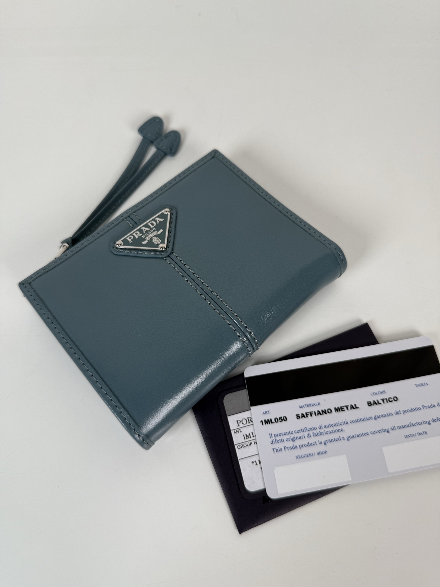 这款钱包是AAAAA 1:1 质量 (非常棒). 使用了和原版一模一样的材料. 商标部分也保持了和普拉达/Prada一样. 图片拍摄是实物钱包拍摄, 您所收到的实物保证和我们图片一模一样.