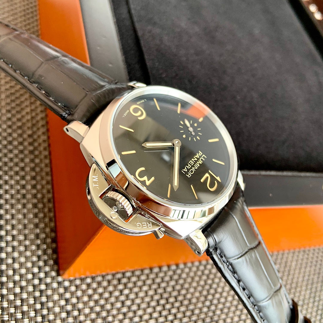 这款手表是AAAAA 1:1 质量 (非常棒). 使用了和原版一模一样的材料. 商标部分也保持了和沛纳海/Panerai一样. 图片拍摄是实物手表拍摄, 您所收到的实物保证和我们图片一模一样.