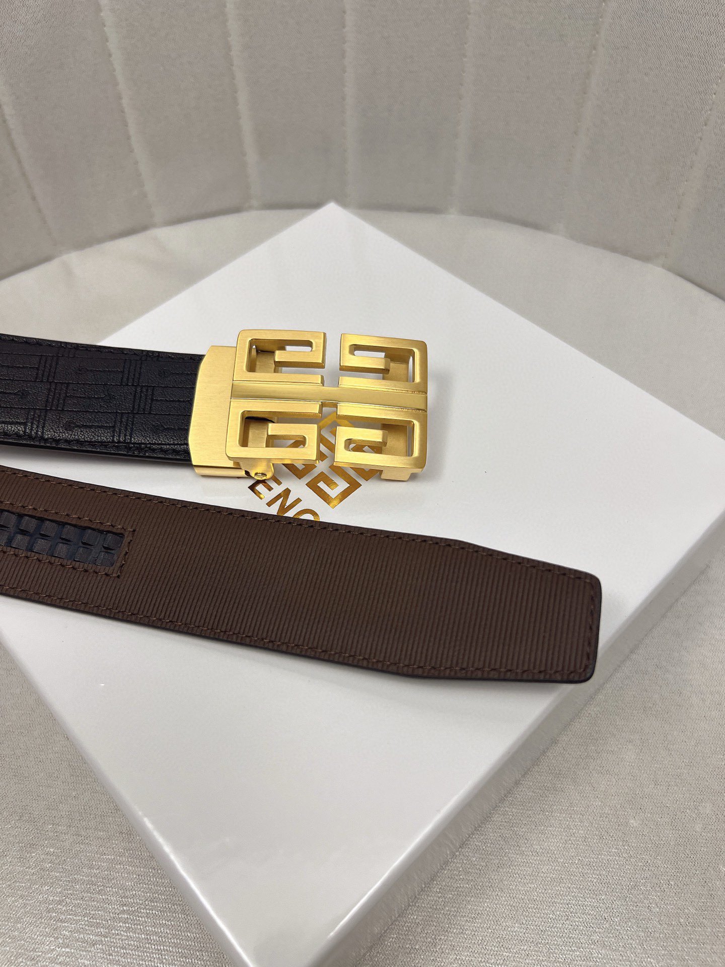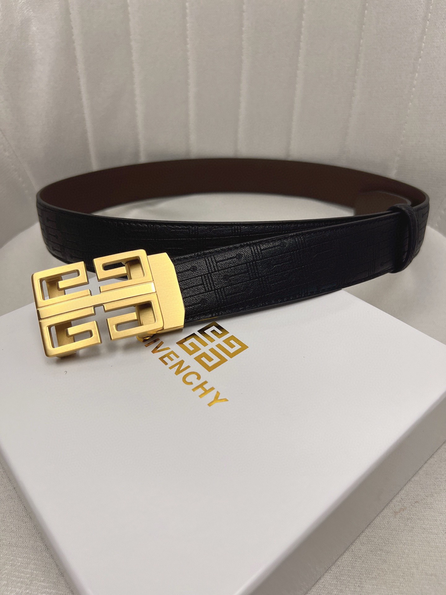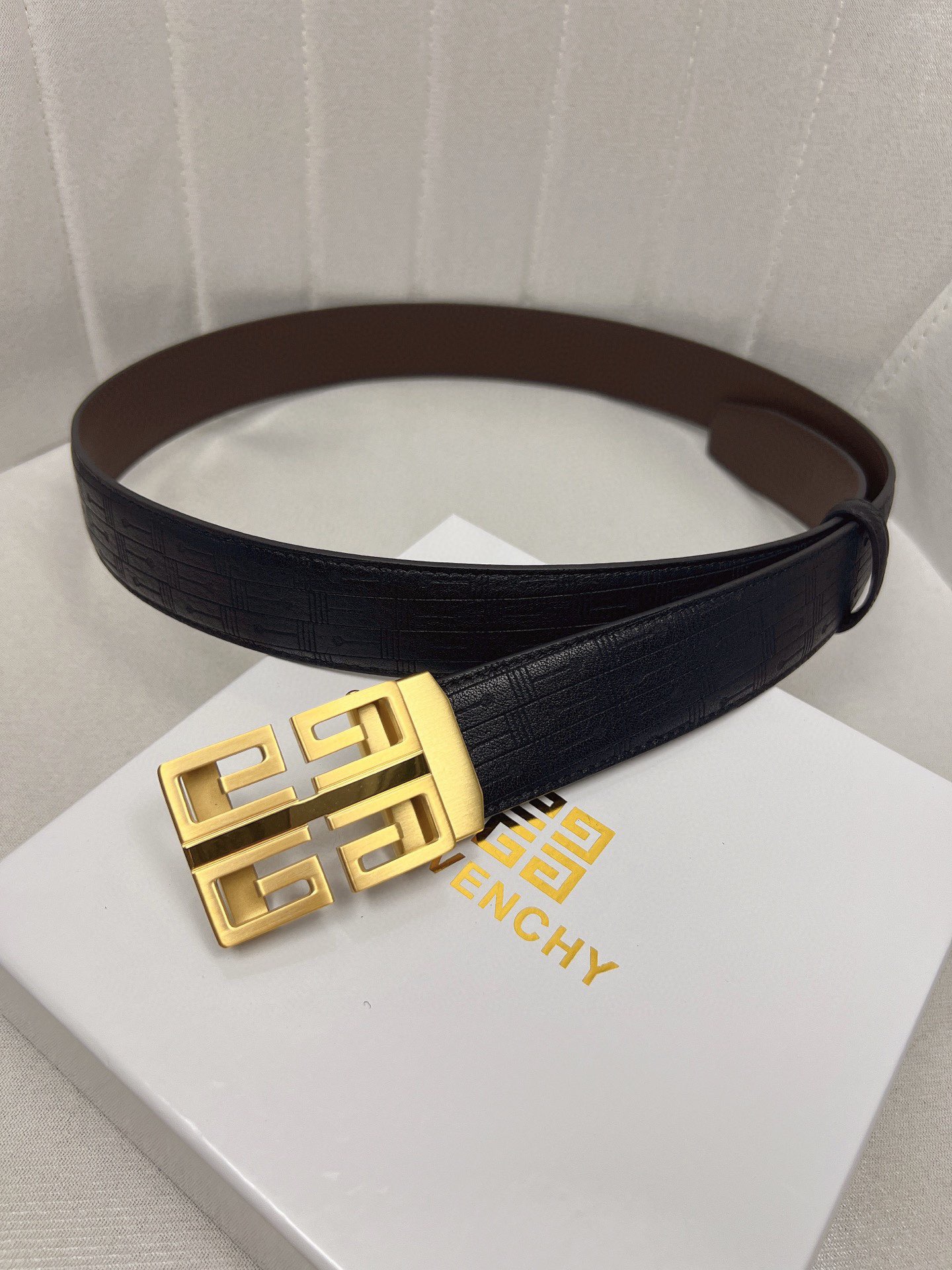 这款皮带是AAAAA 1:1 质量 (非常棒). 使用了和原版一模一样的材料. 商标部分也保持了和纪梵希/Givenchy一样. 图片拍摄是实物皮带拍摄, 您所收到的实物保证和我们图片一模一样.