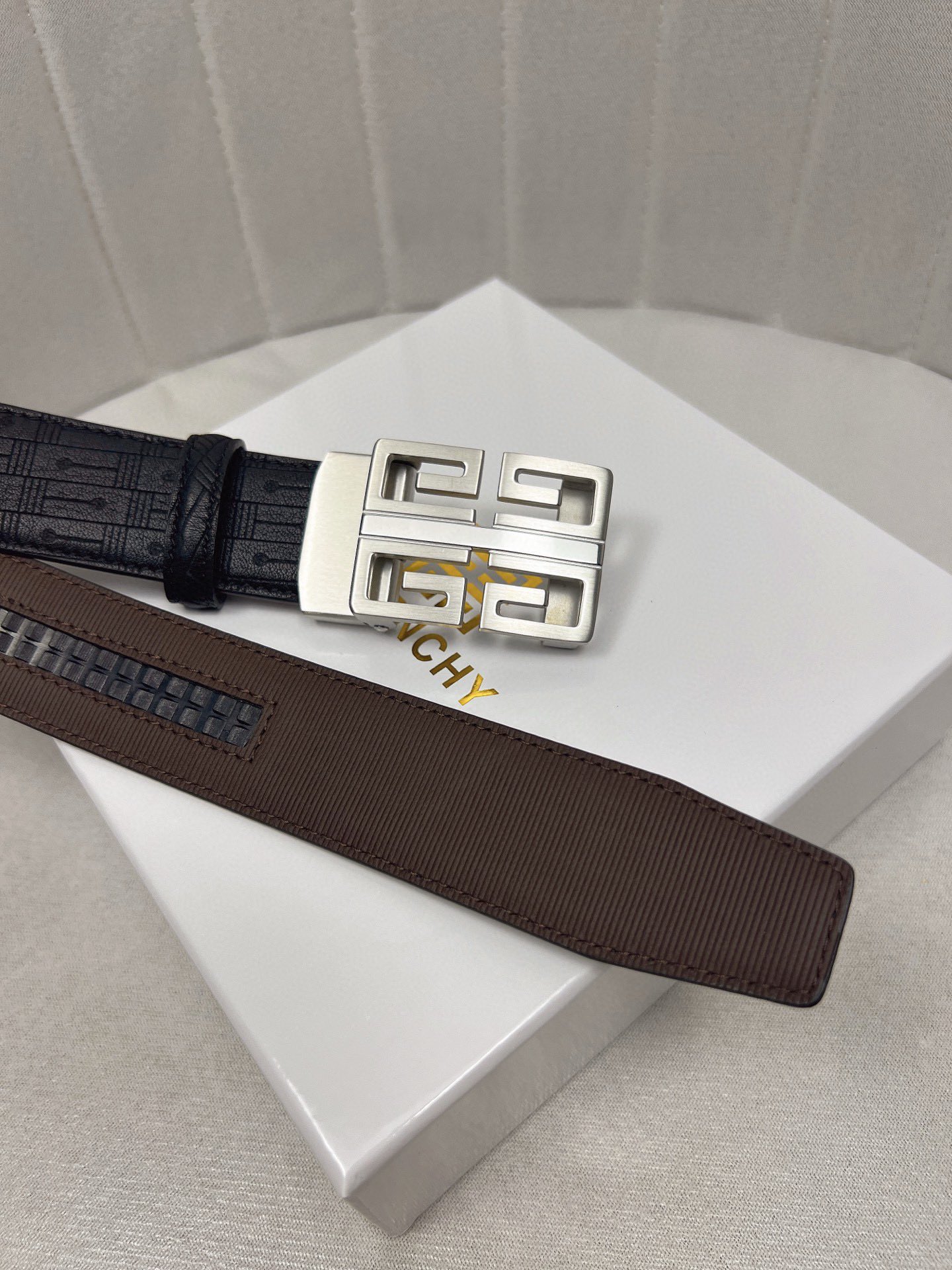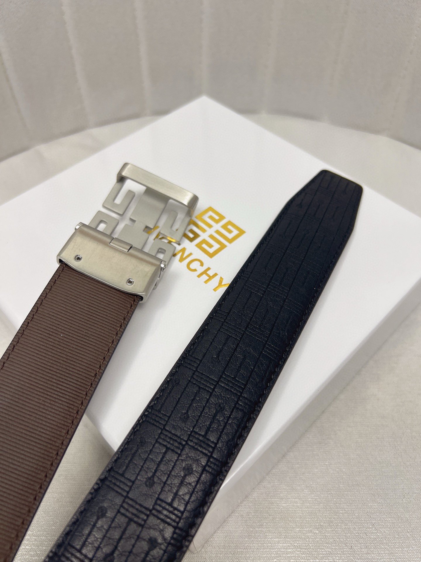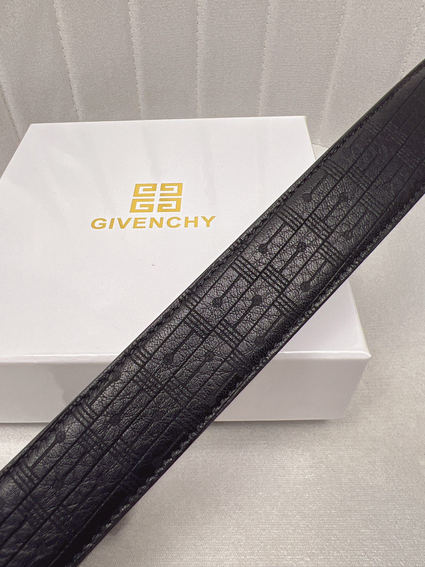 这款皮带是AAAAA 1:1 质量 (非常棒). 使用了和原版一模一样的材料. 商标部分也保持了和纪梵希/Givenchy一样. 图片拍摄是实物皮带拍摄, 您所收到的实物保证和我们图片一模一样.