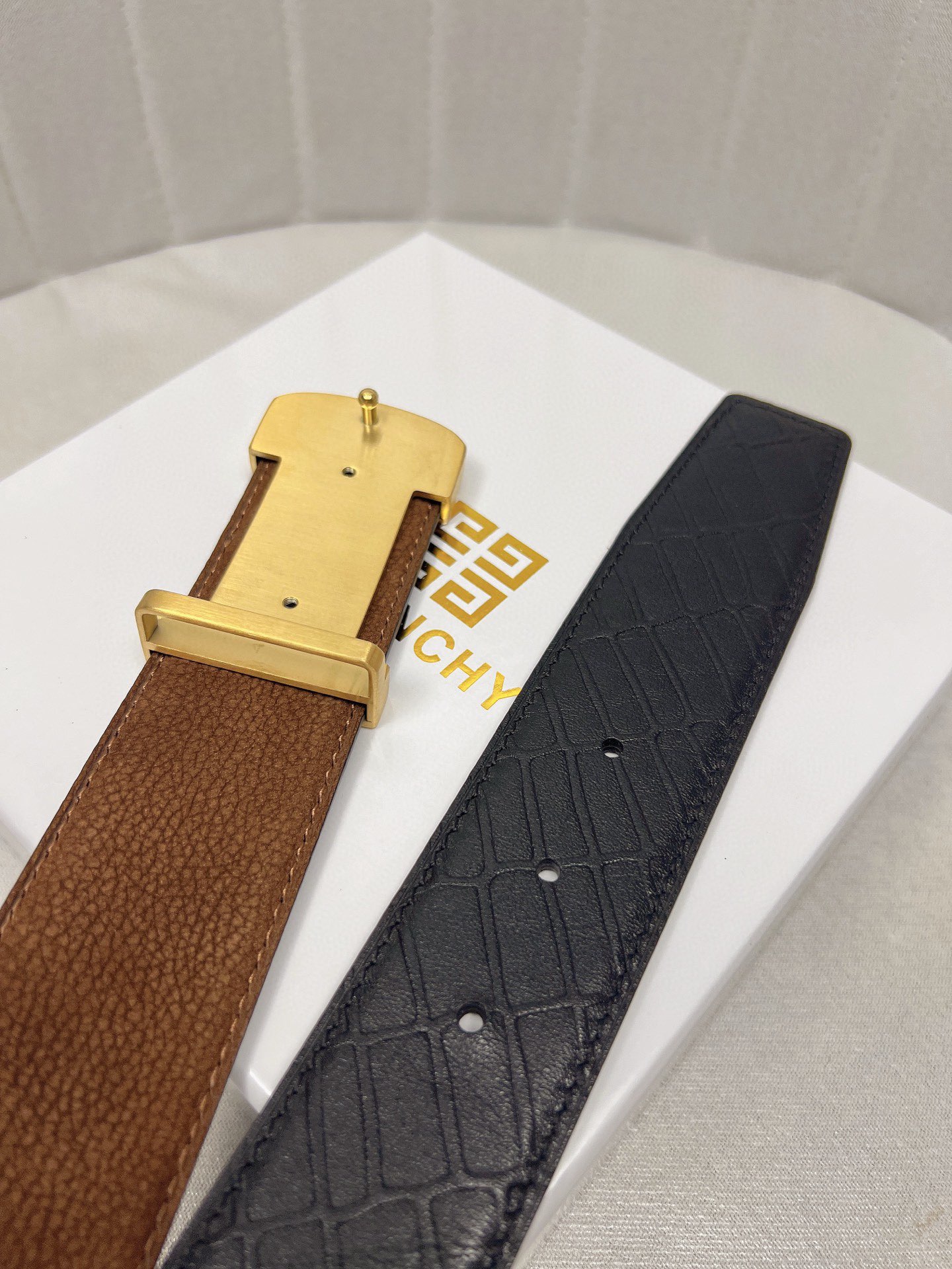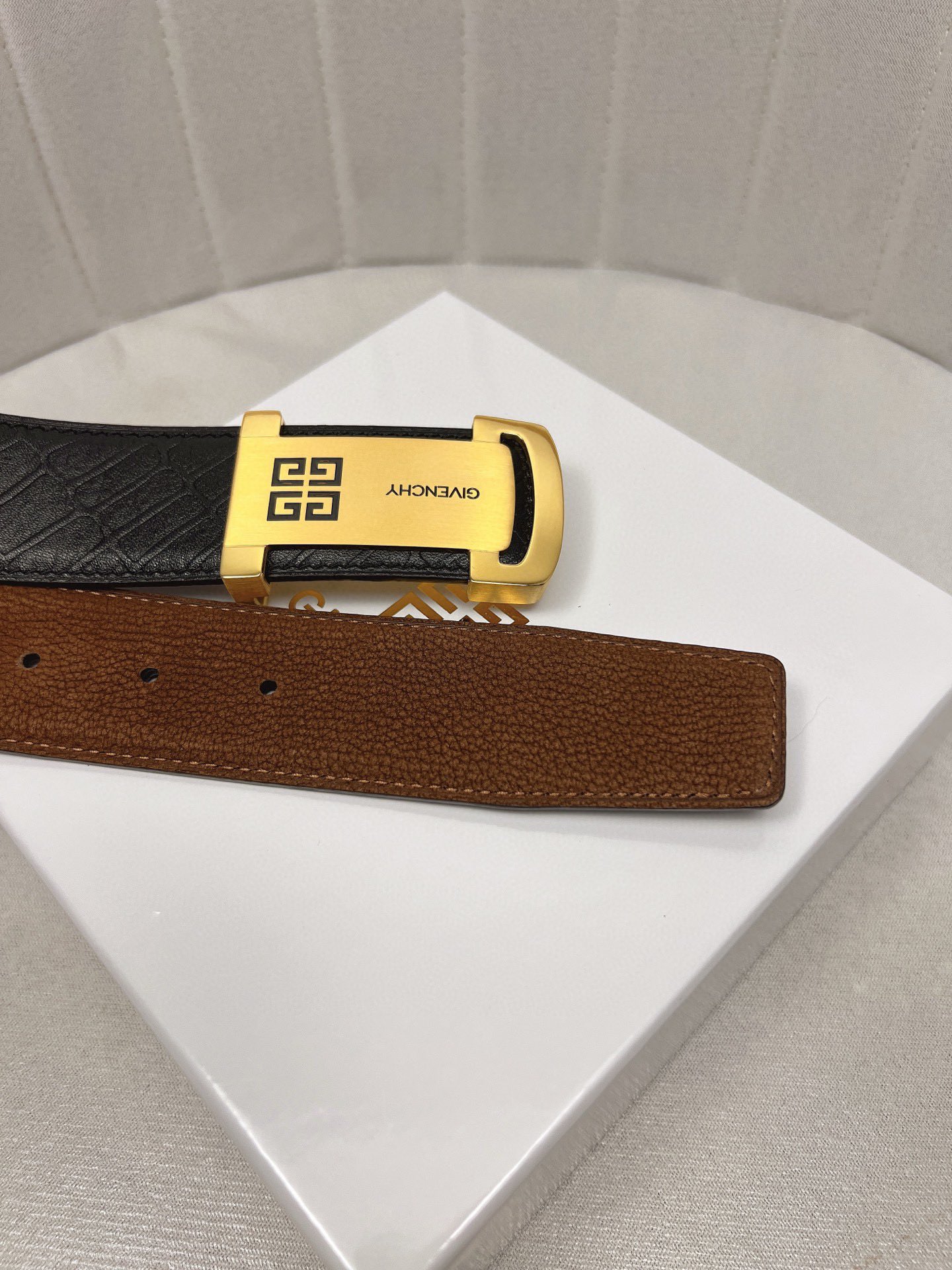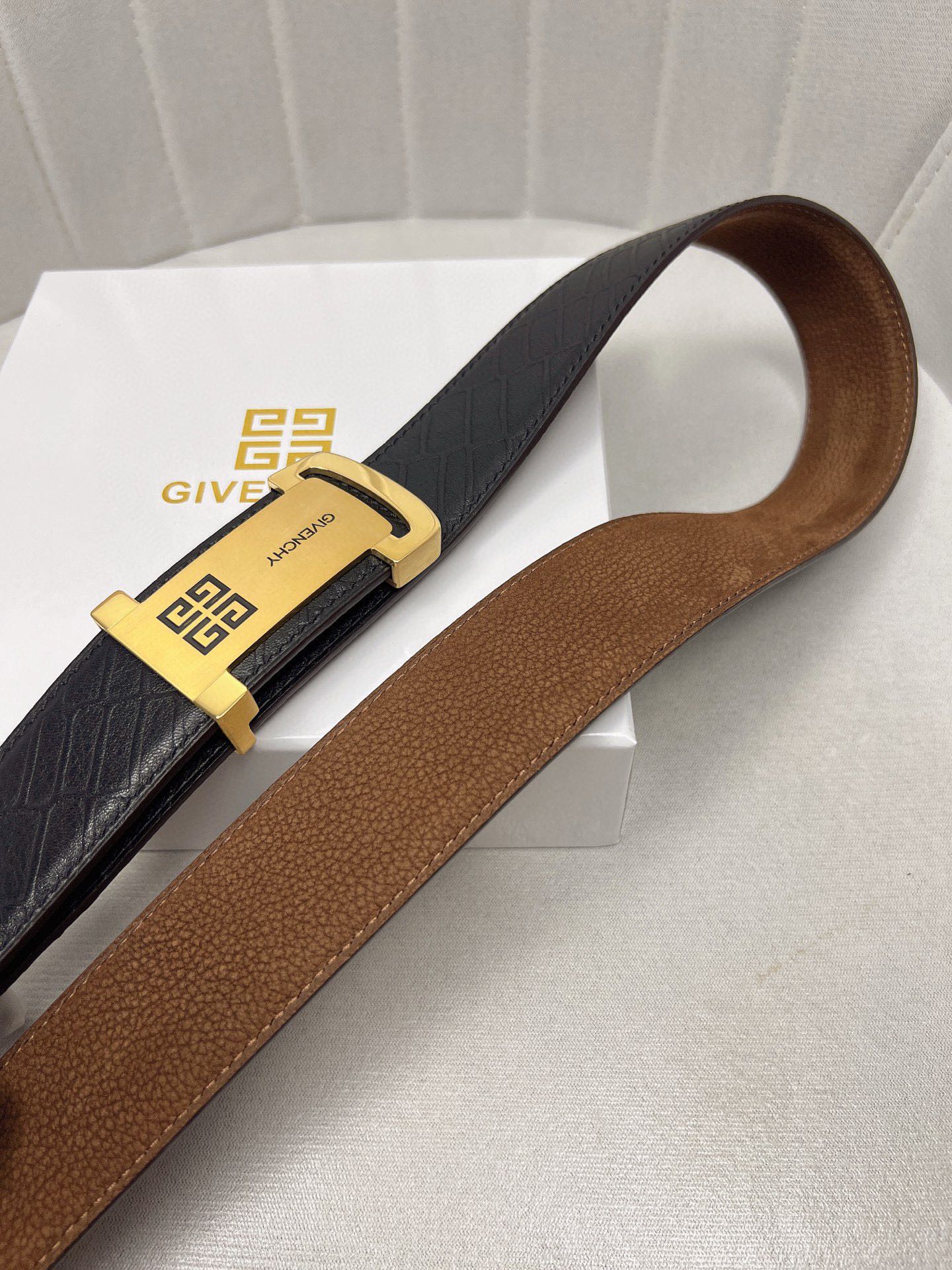 这款皮带是AAAAA 1:1 质量 (非常棒). 使用了和原版一模一样的材料. 商标部分也保持了和纪梵希/Givenchy一样. 图片拍摄是实物皮带拍摄, 您所收到的实物保证和我们图片一模一样.