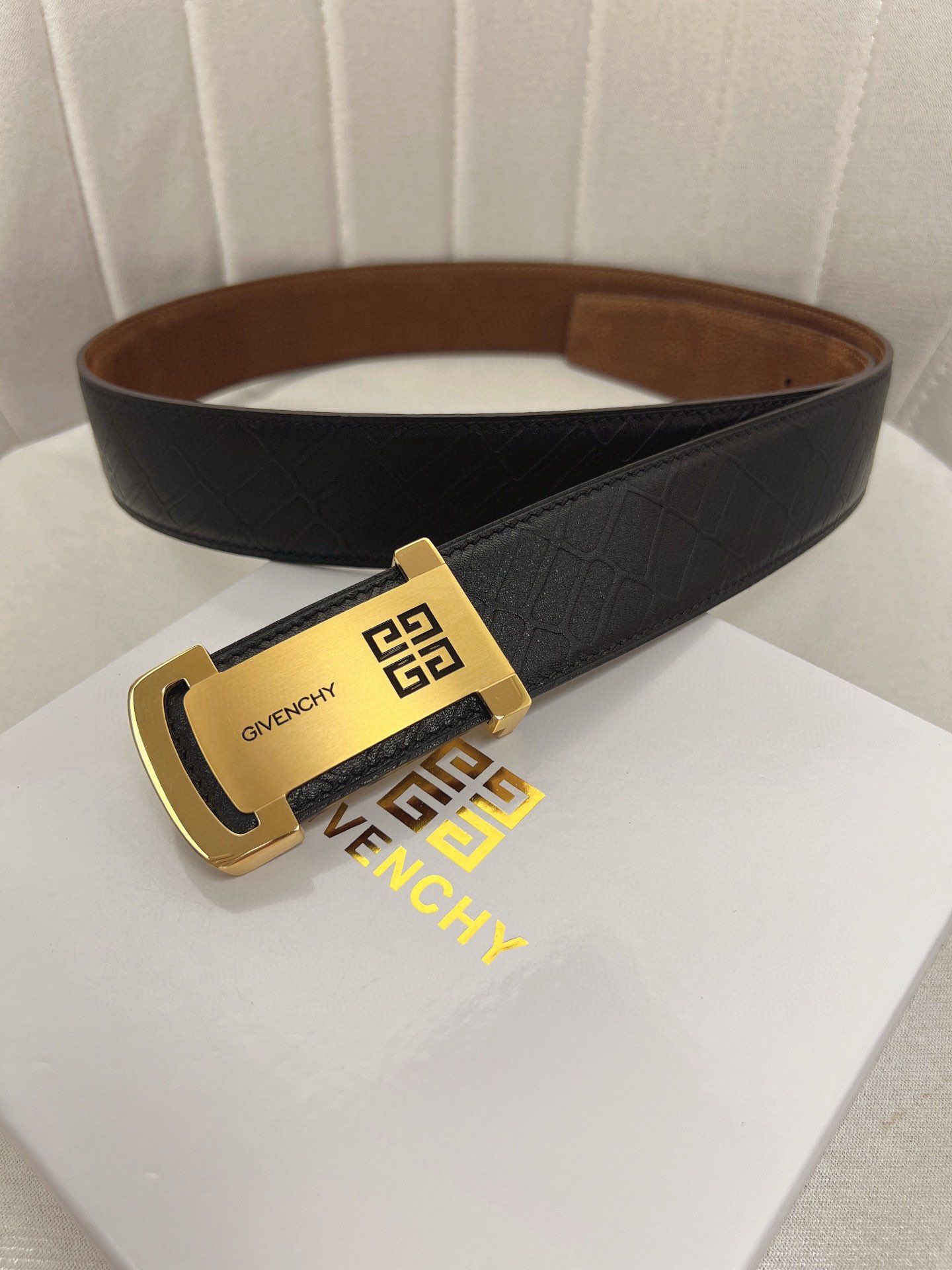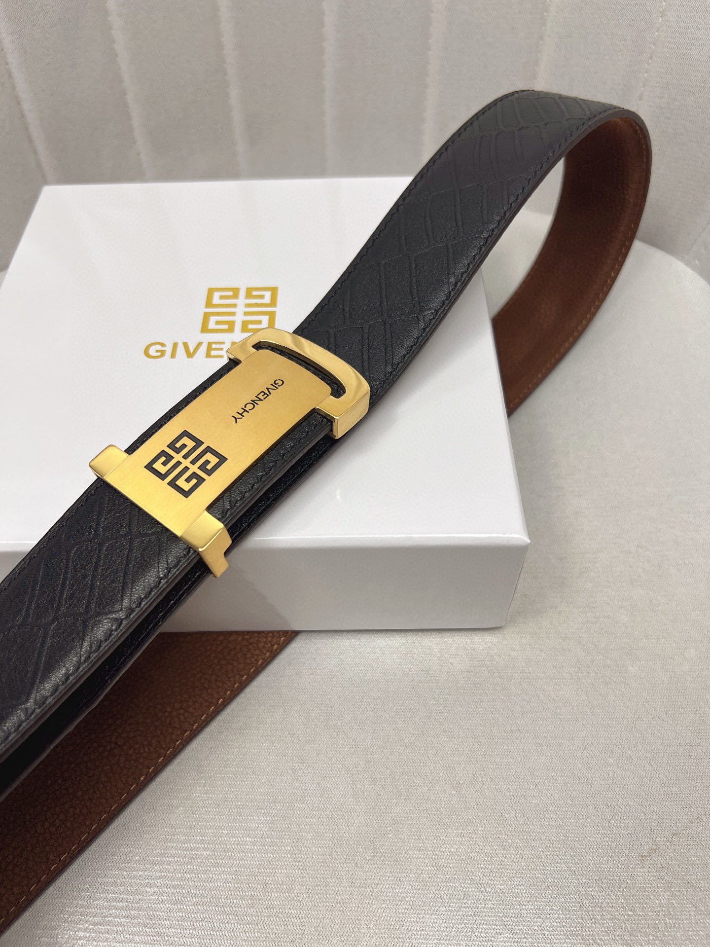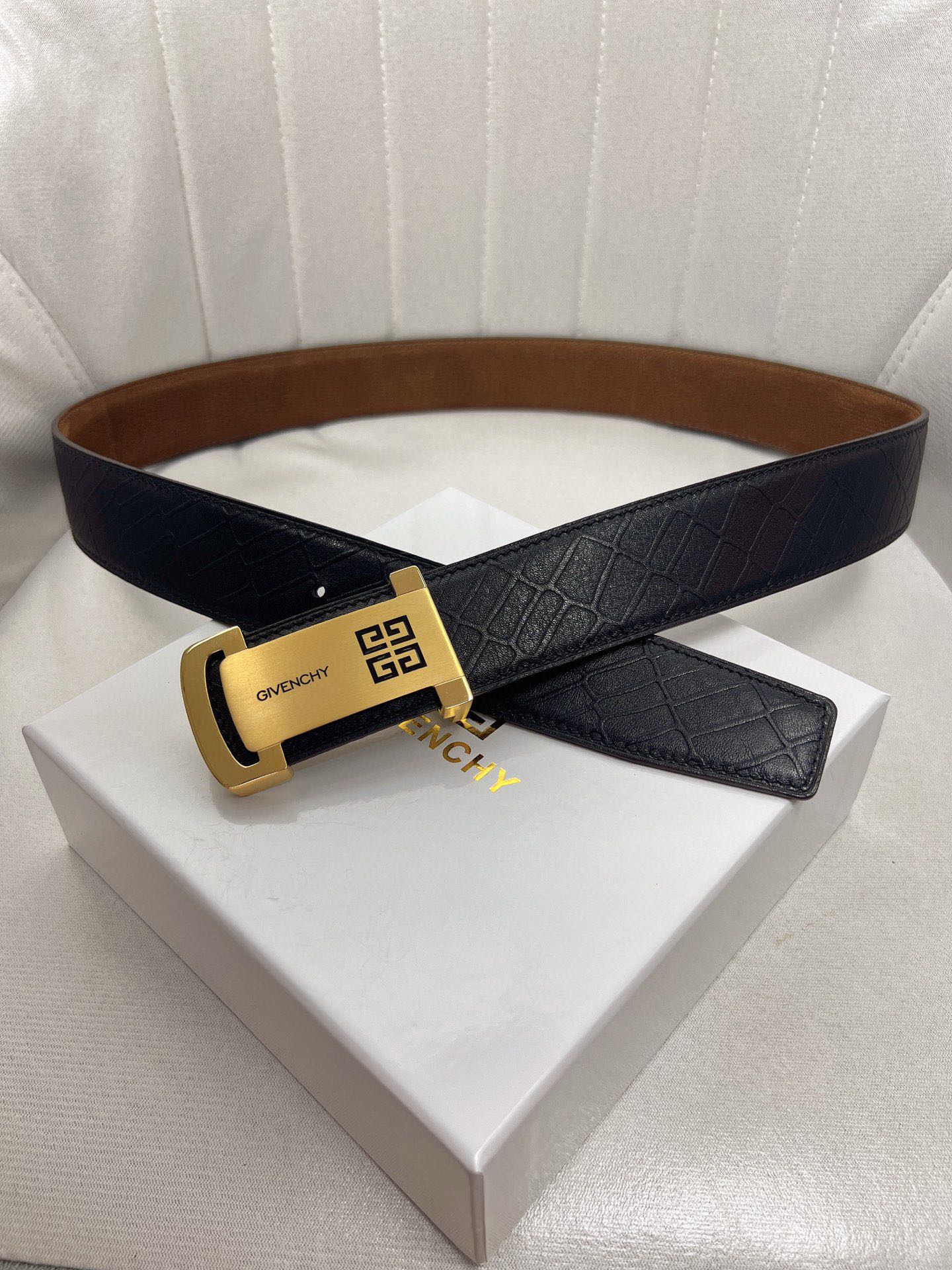 这款皮带是AAAAA 1:1 质量 (非常棒). 使用了和原版一模一样的材料. 商标部分也保持了和纪梵希/Givenchy一样. 图片拍摄是实物皮带拍摄, 您所收到的实物保证和我们图片一模一样.