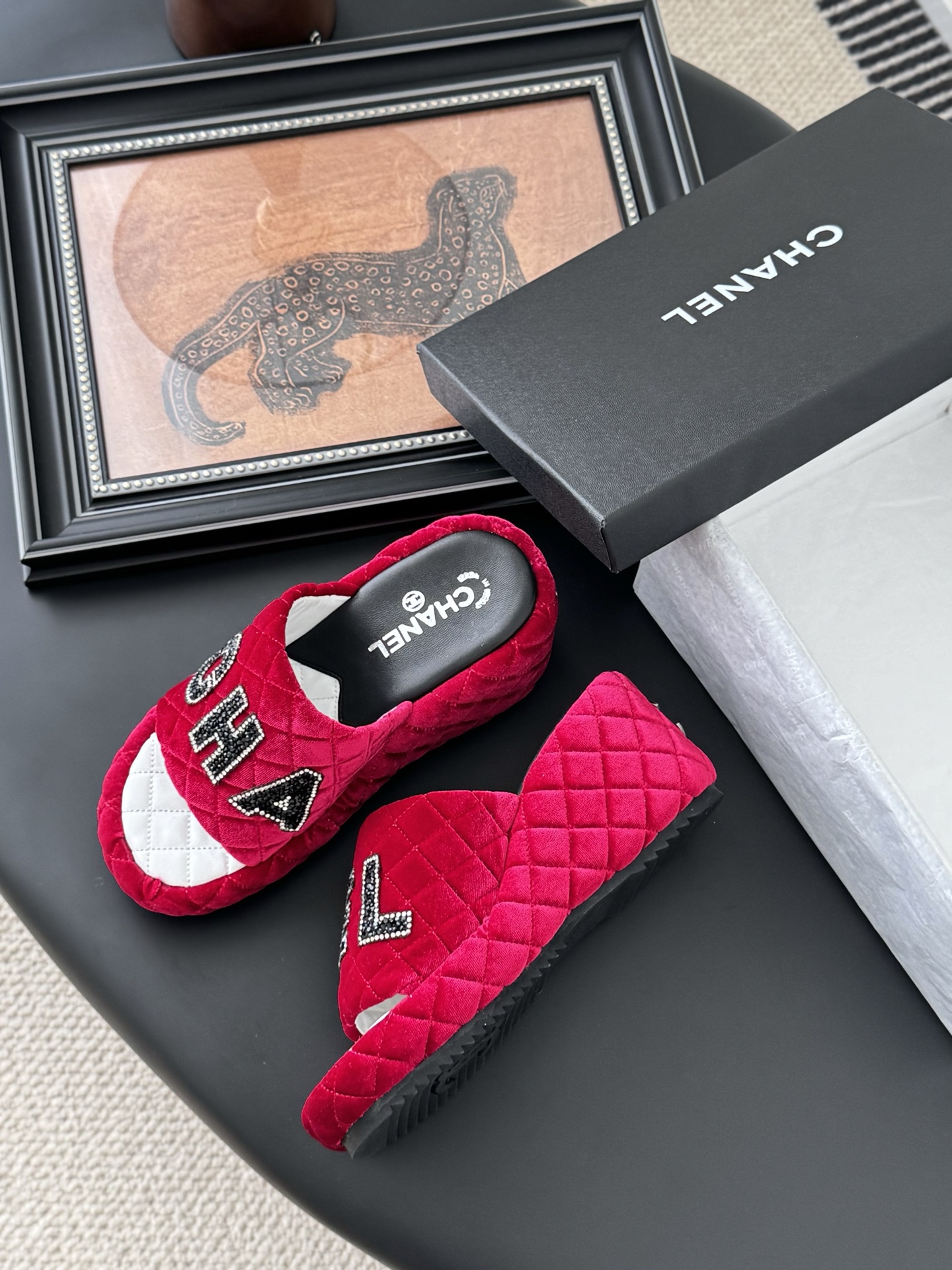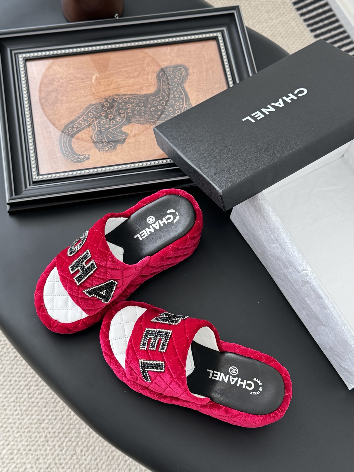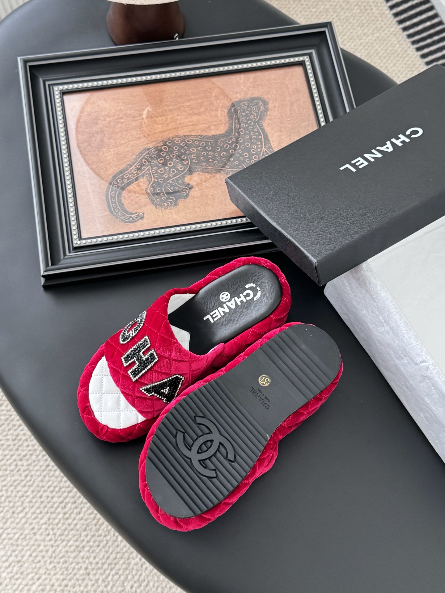 这款鞋子是AAAAA 1:1 质量 (非常棒). 使用了和原版一模一样的材料. 商标部分也保持了和香奈儿/Chanel一样. 图片拍摄是实物鞋子拍摄, 您所收到的实物保证和我们图片一模一样.