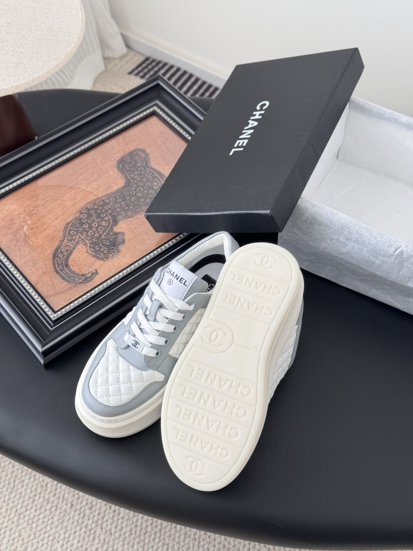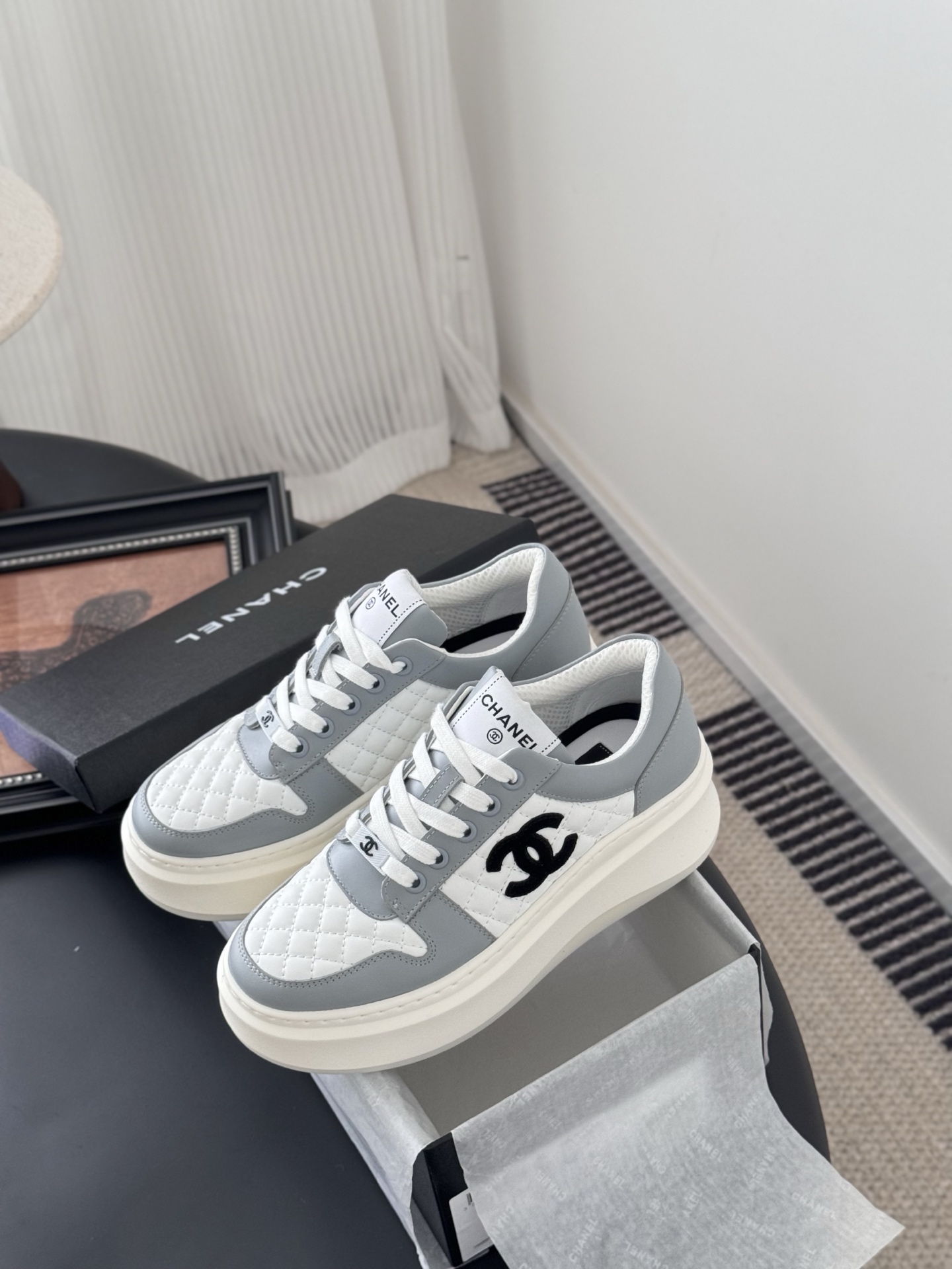 这款鞋子是AAAAA 1:1 质量 (非常棒). 使用了和原版一模一样的材料. 商标部分也保持了和香奈儿/Chanel一样. 图片拍摄是实物鞋子拍摄, 您所收到的实物保证和我们图片一模一样.
