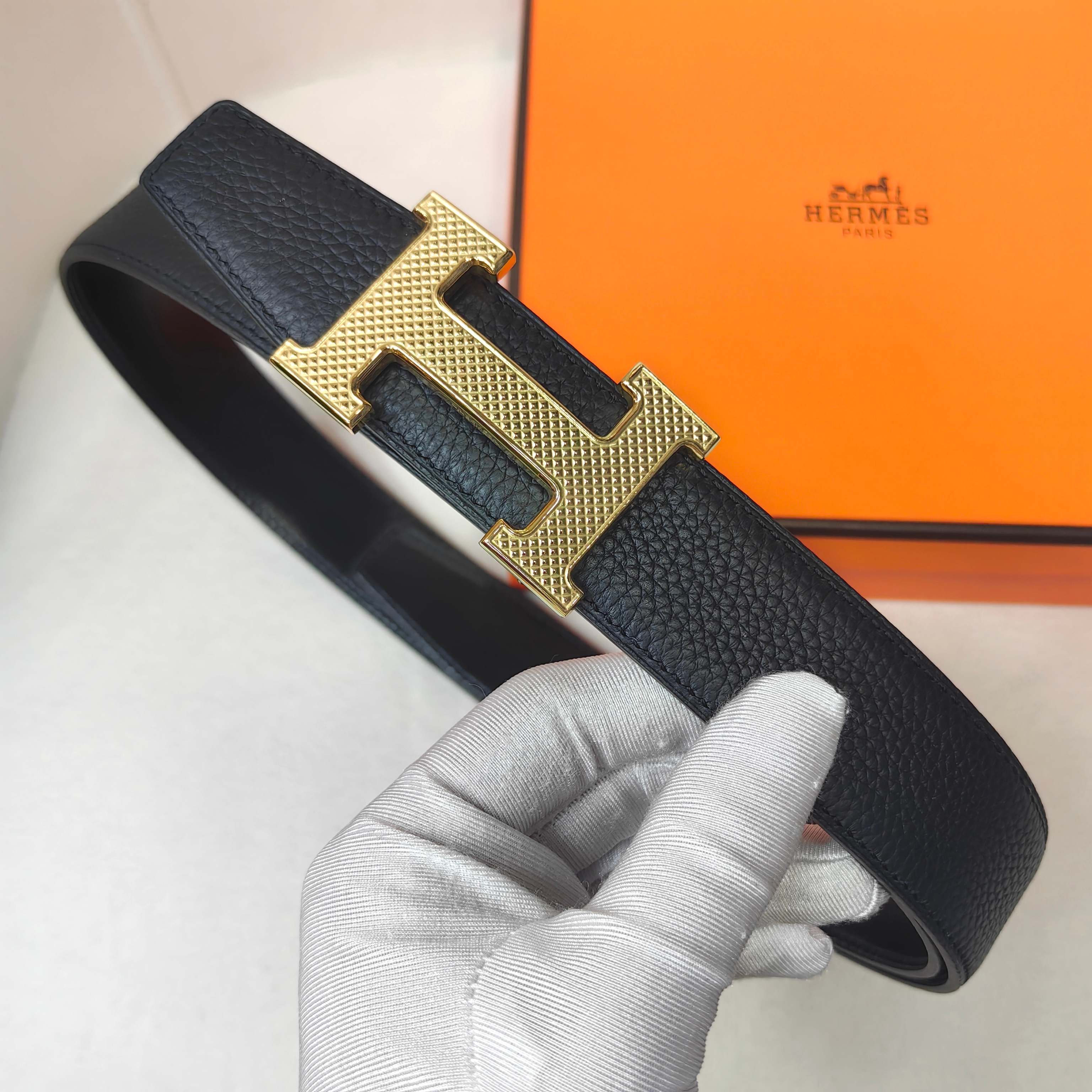这款皮带是AAAAA 1:1 质量 (非常棒). 使用了和原版一模一样的材料. 商标部分也保持了和爱马仕/Hermes一样. 图片拍摄是实物皮带拍摄, 您所收到的实物保证和我们图片一模一样.