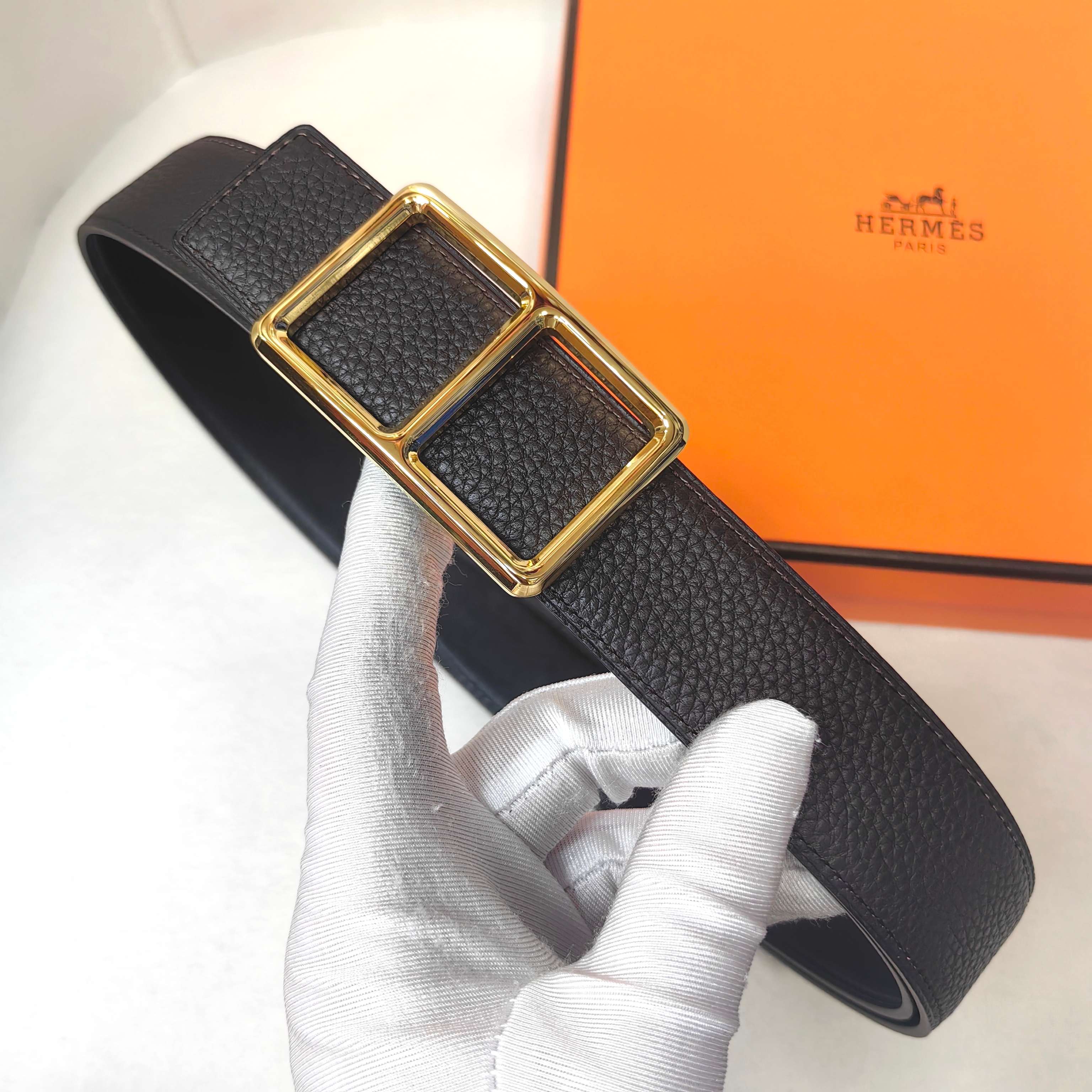 这款皮带是AAAAA 1:1 质量 (非常棒). 使用了和原版一模一样的材料. 商标部分也保持了和爱马仕/Hermes一样. 图片拍摄是实物皮带拍摄, 您所收到的实物保证和我们图片一模一样.