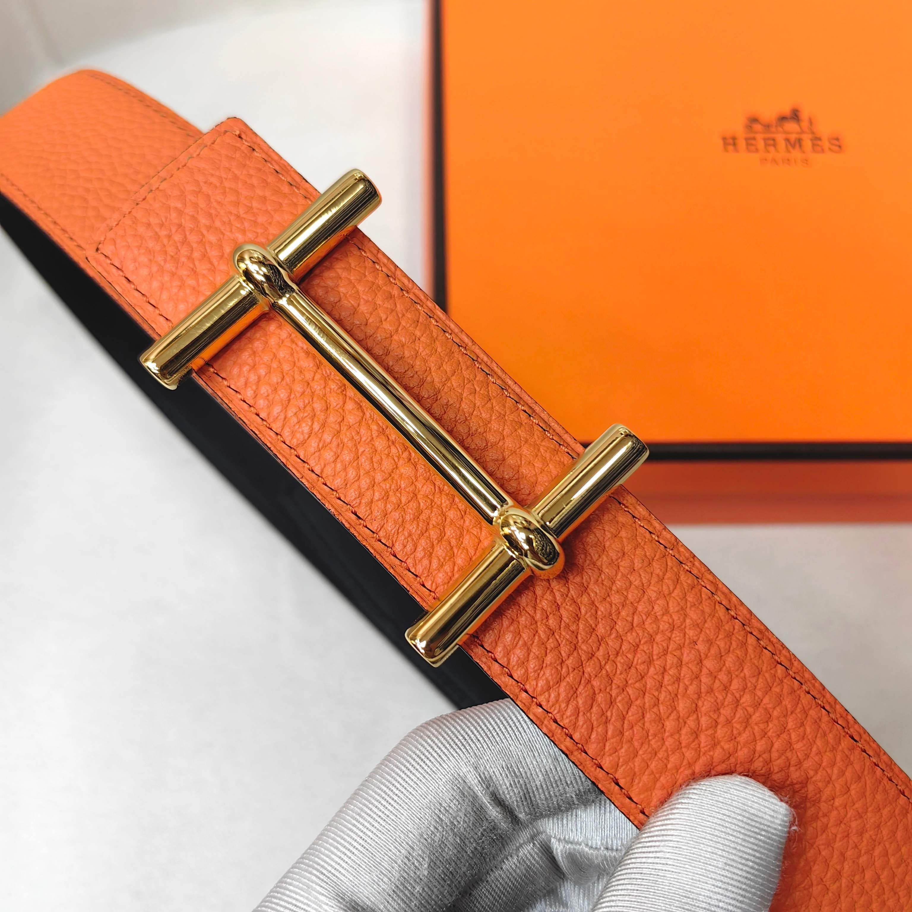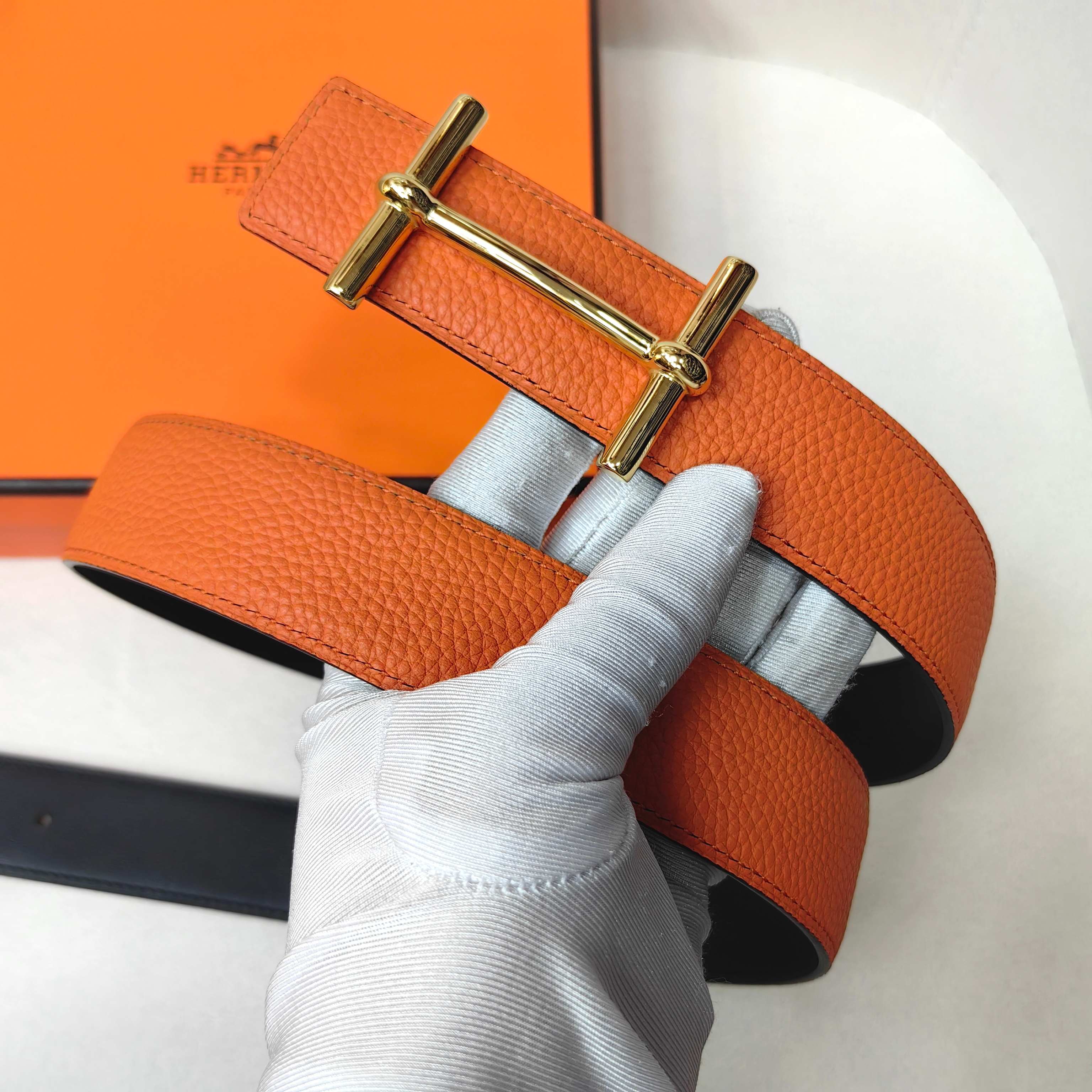 这款皮带是AAAAA 1:1 质量 (非常棒). 使用了和原版一模一样的材料. 商标部分也保持了和爱马仕/Hermes一样. 图片拍摄是实物皮带拍摄, 您所收到的实物保证和我们图片一模一样.
