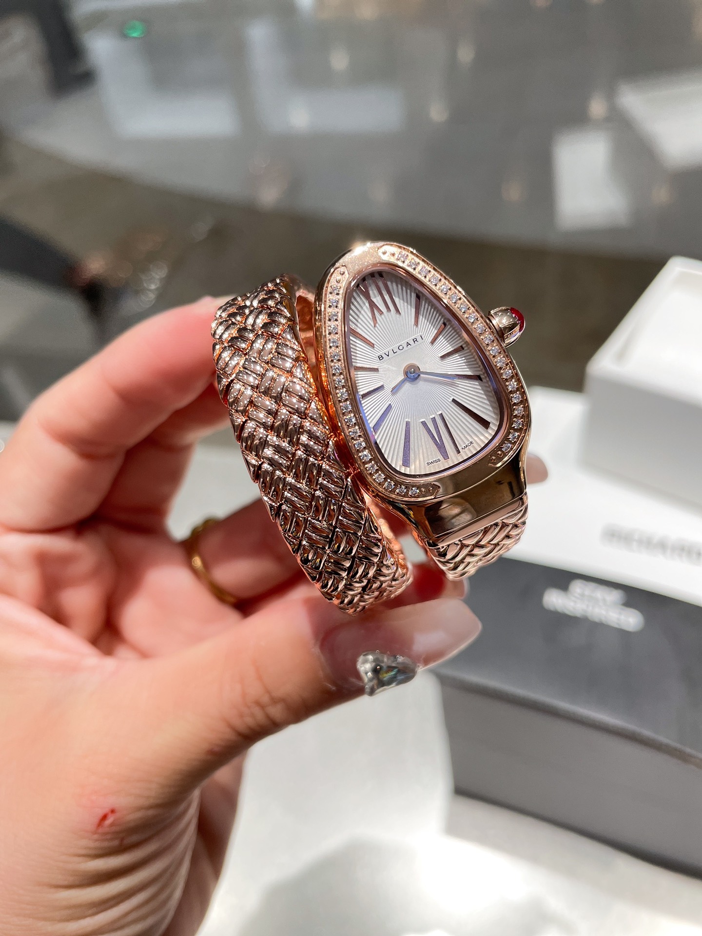 这款手表是AAAAA 1:1 质量 (非常棒). 使用了和原版一模一样的材料. 商标部分也保持了和宝格丽/Bulgari一样. 图片拍摄是实物手表拍摄, 您所收到的实物保证和我们图片一模一样.