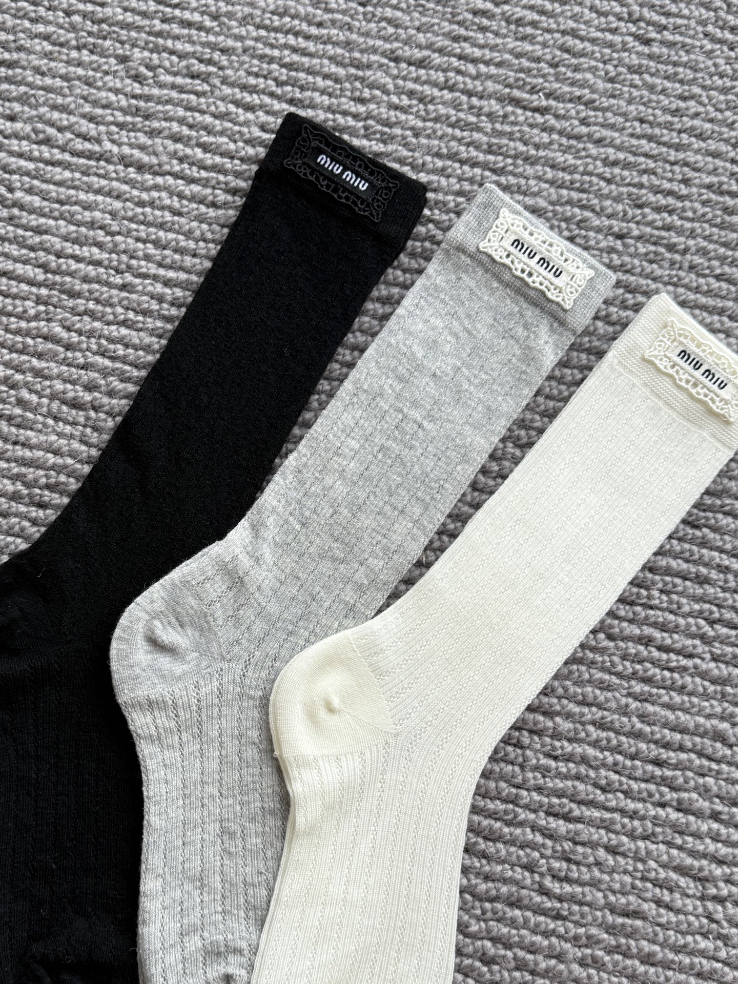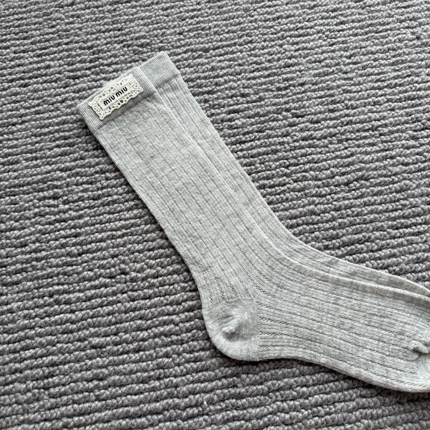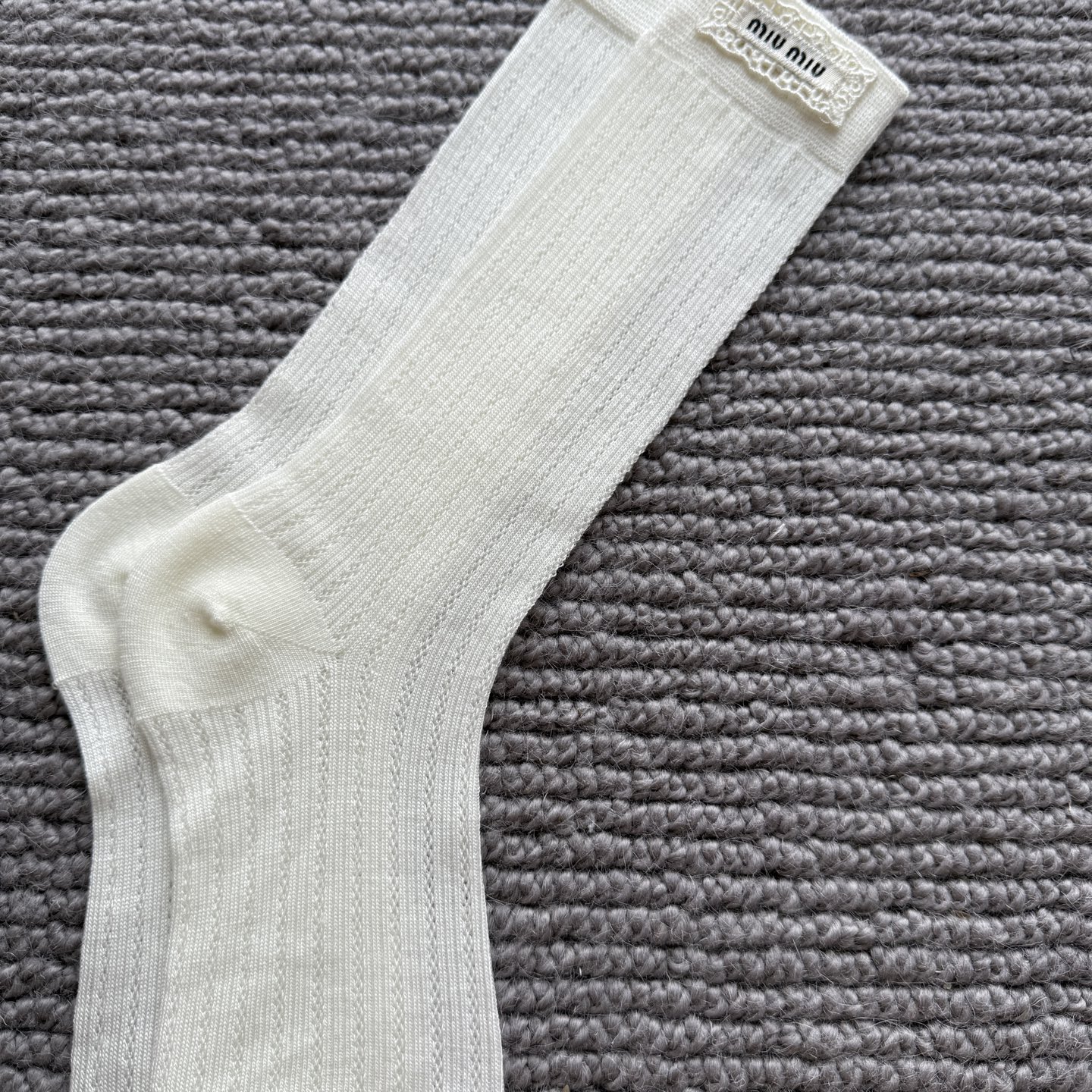 这款sock是AAAAA 1:1 质量 (非常棒). 使用了和原版一模一样的材料. 商标部分也保持了和缪缪/Miu Miu一样. 图片拍摄是实物sock拍摄, 您所收到的实物保证和我们图片一模一样.