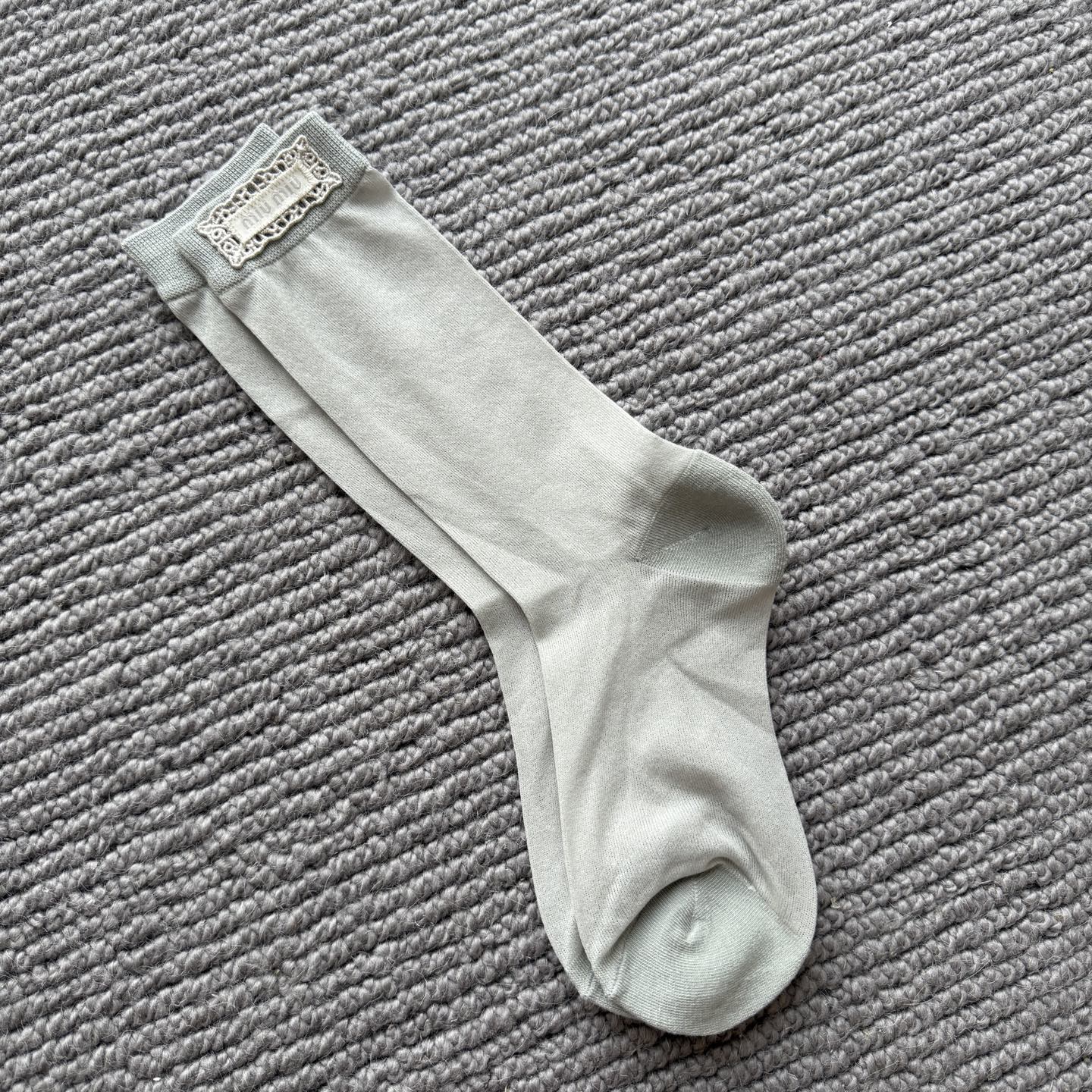这款sock是AAAAA 1:1 质量 (非常棒). 使用了和原版一模一样的材料. 商标部分也保持了和缪缪/Miu Miu一样. 图片拍摄是实物sock拍摄, 您所收到的实物保证和我们图片一模一样.