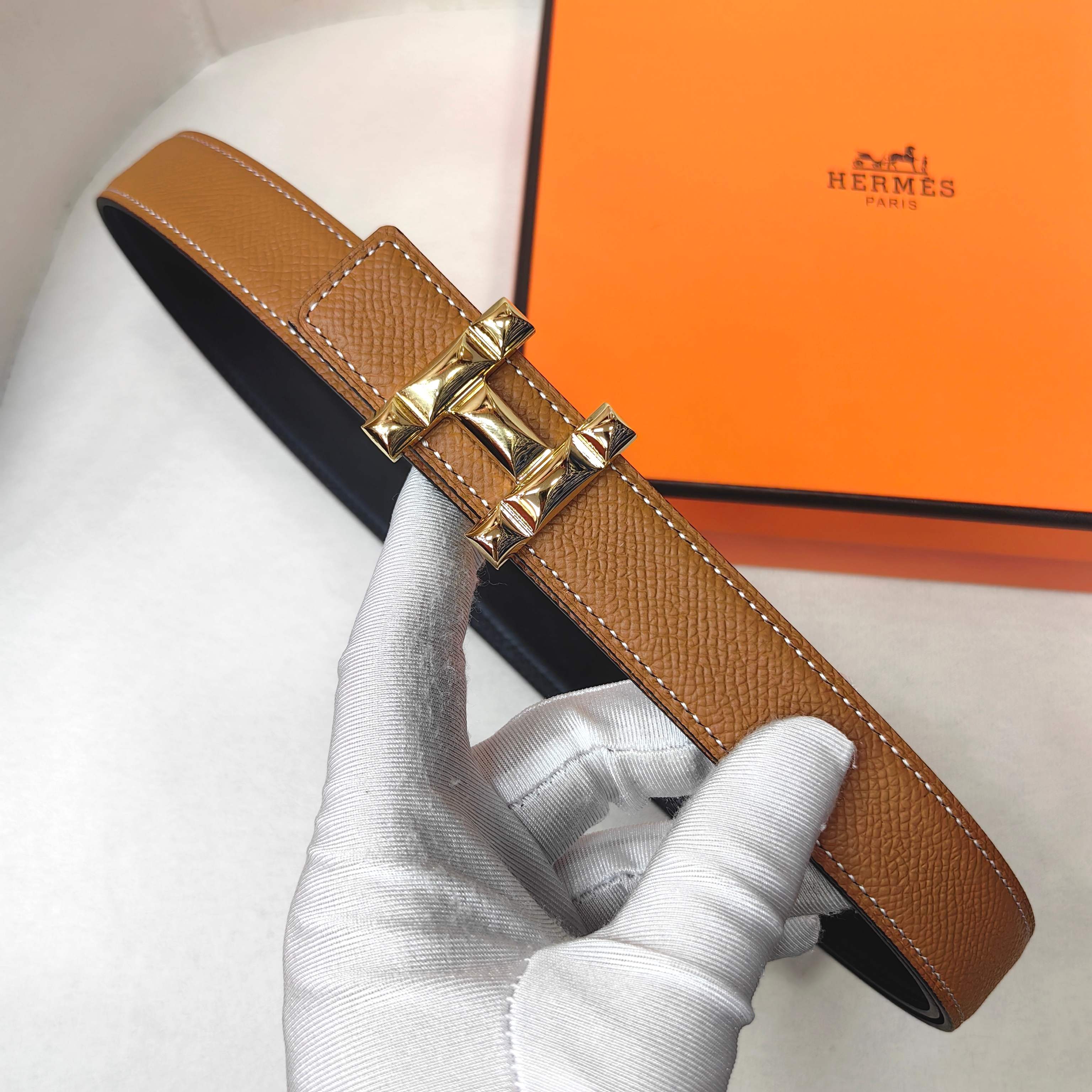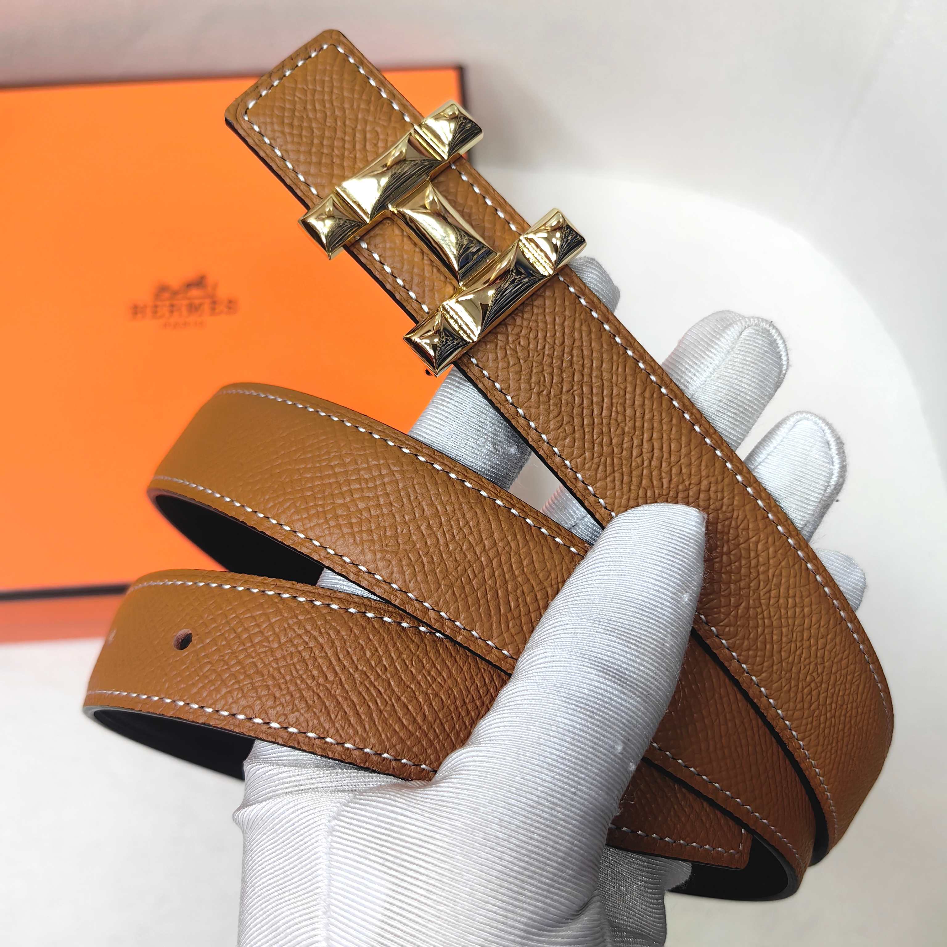 这款皮带是AAAAA 1:1 质量 (非常棒). 使用了和原版一模一样的材料. 商标部分也保持了和爱马仕/Hermes一样. 图片拍摄是实物皮带拍摄, 您所收到的实物保证和我们图片一模一样.