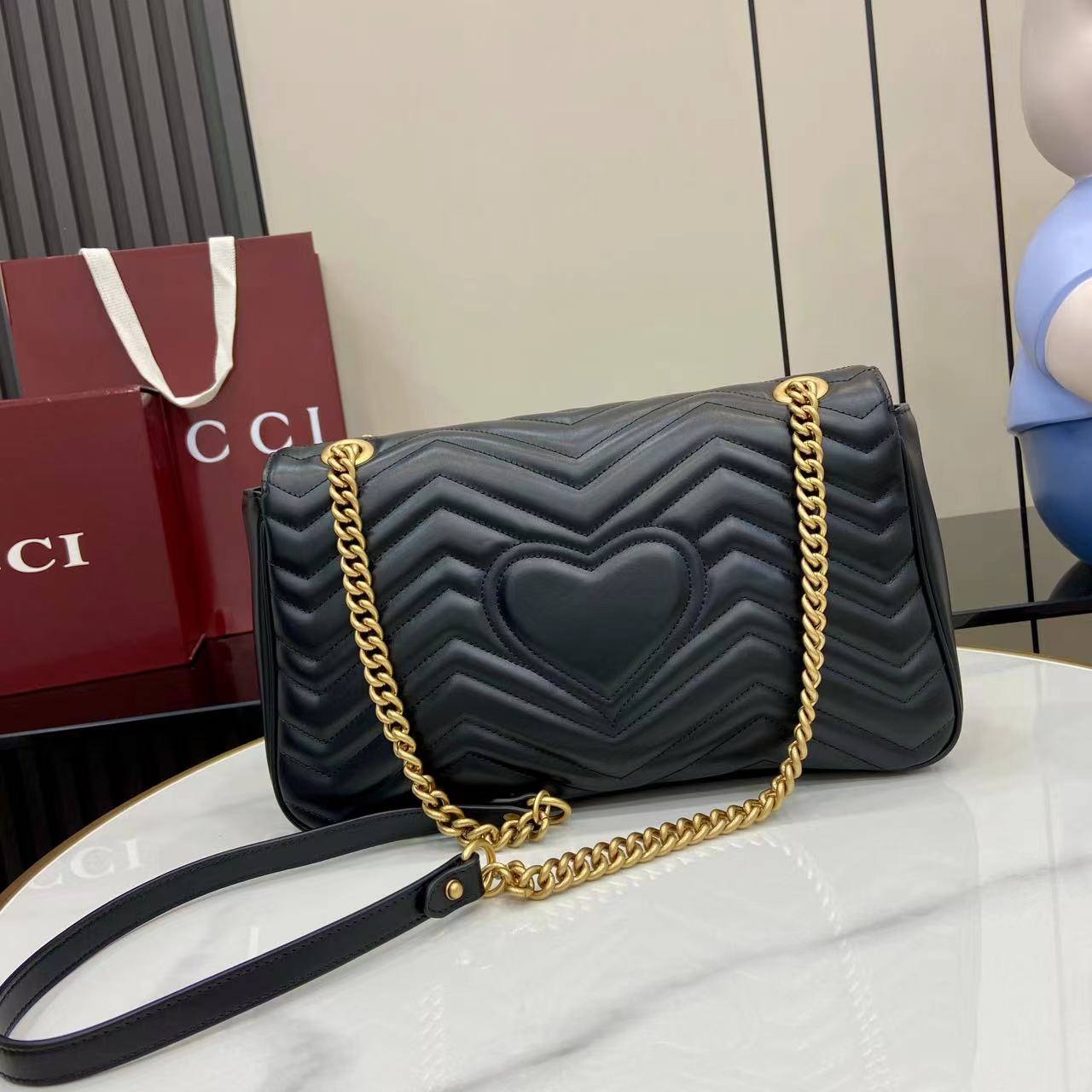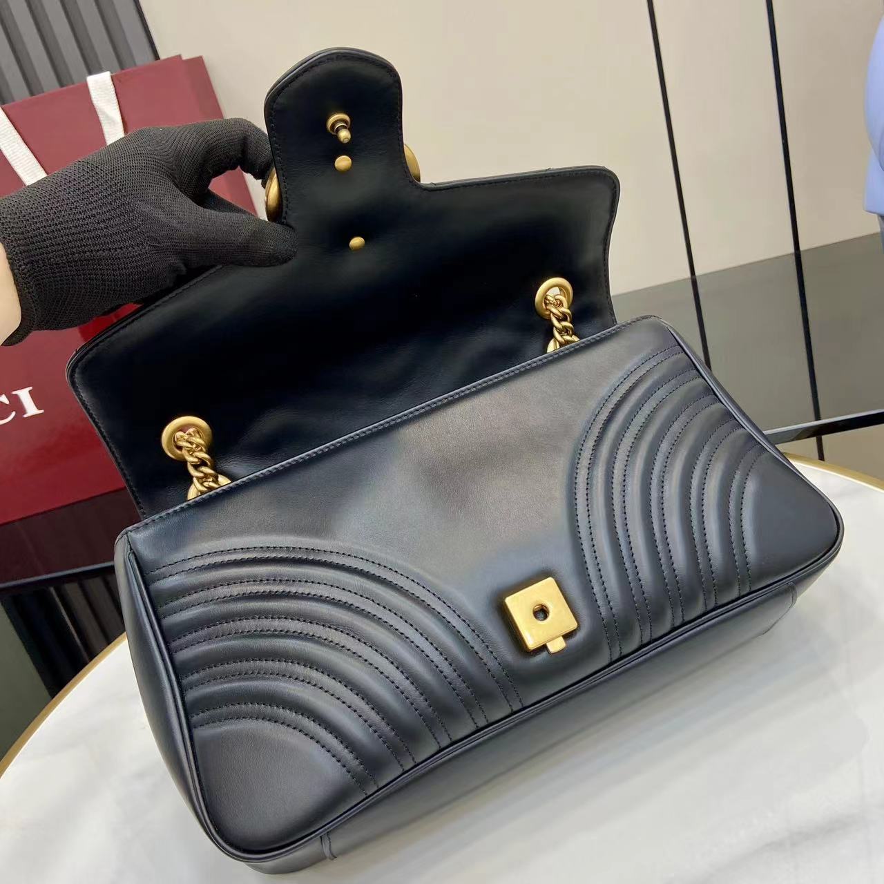 这款包包是AAAAA 1:1 质量 (非常棒). 使用了和原版一模一样的材料. 商标部分也保持了和古奇/Gucci一样. 图片拍摄是实物包包拍摄, 您所收到的实物保证和我们图片一模一样.