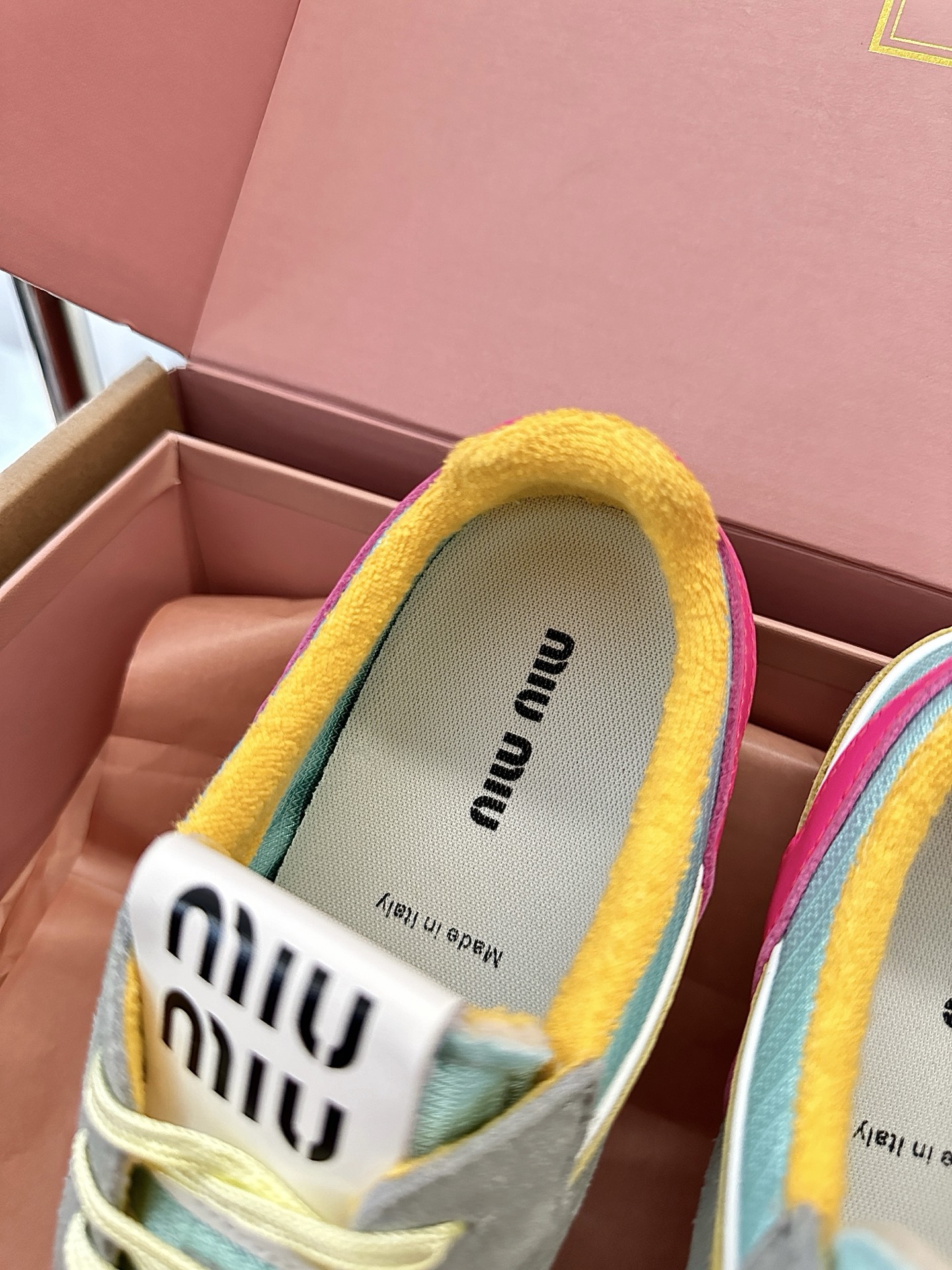 这款鞋子是AAAAA 1:1 质量 (非常棒). 使用了和原版一模一样的材料. 商标部分也保持了和缪缪/Miu Miu一样. 图片拍摄是实物鞋子拍摄, 您所收到的实物保证和我们图片一模一样.