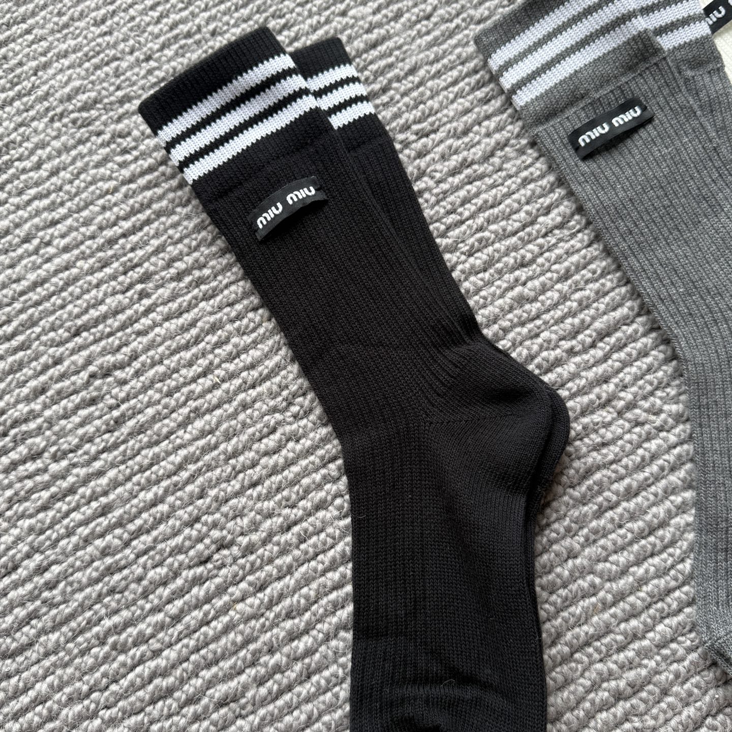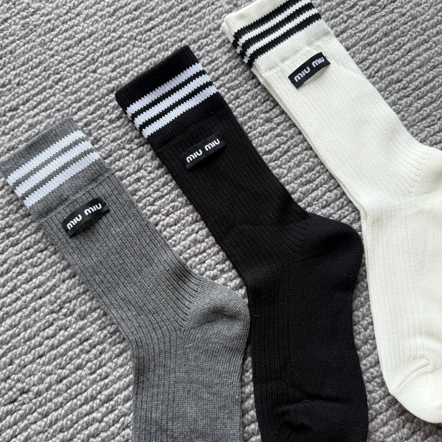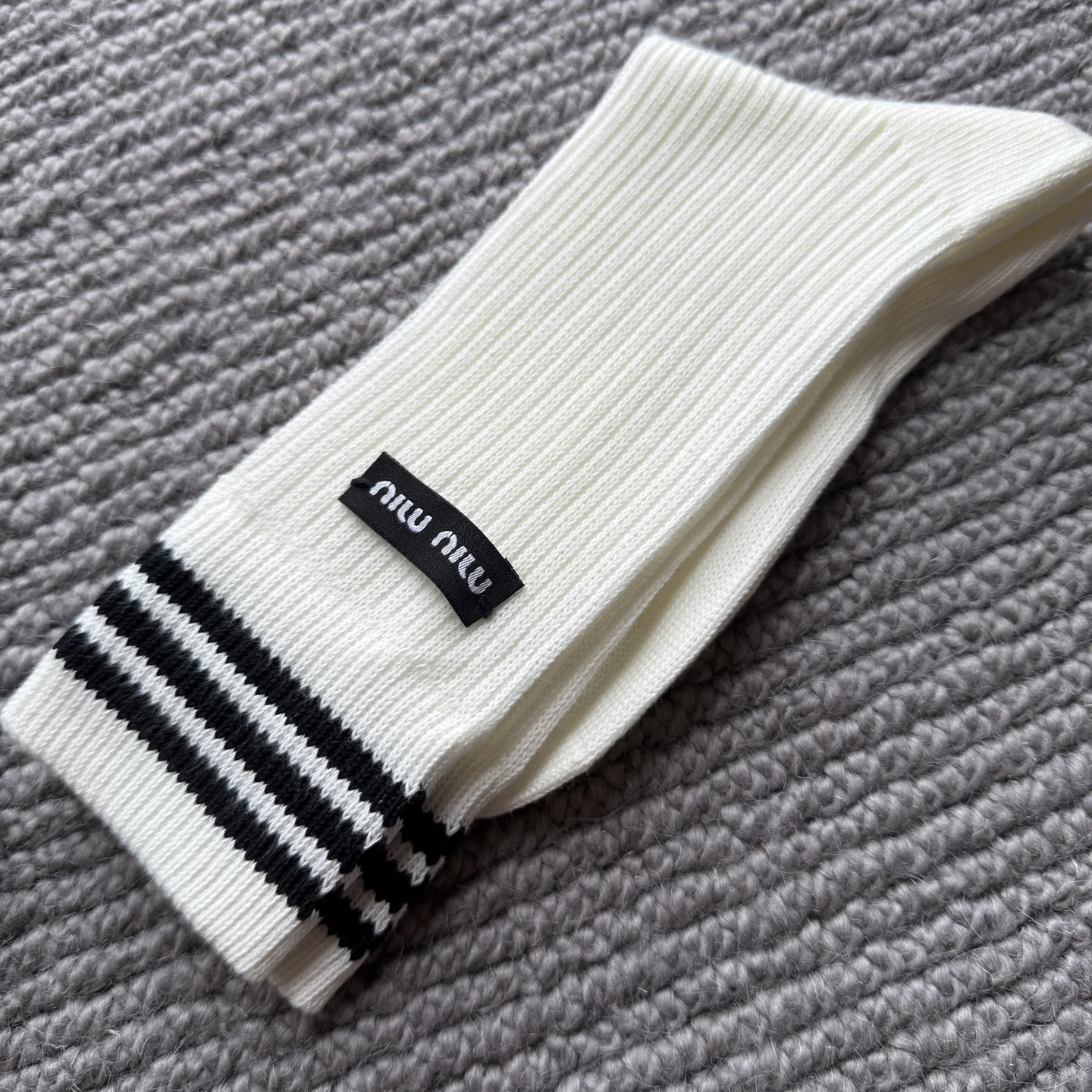 这款sock是AAAAA 1:1 质量 (非常棒). 使用了和原版一模一样的材料. 商标部分也保持了和缪缪/Miu Miu一样. 图片拍摄是实物sock拍摄, 您所收到的实物保证和我们图片一模一样.