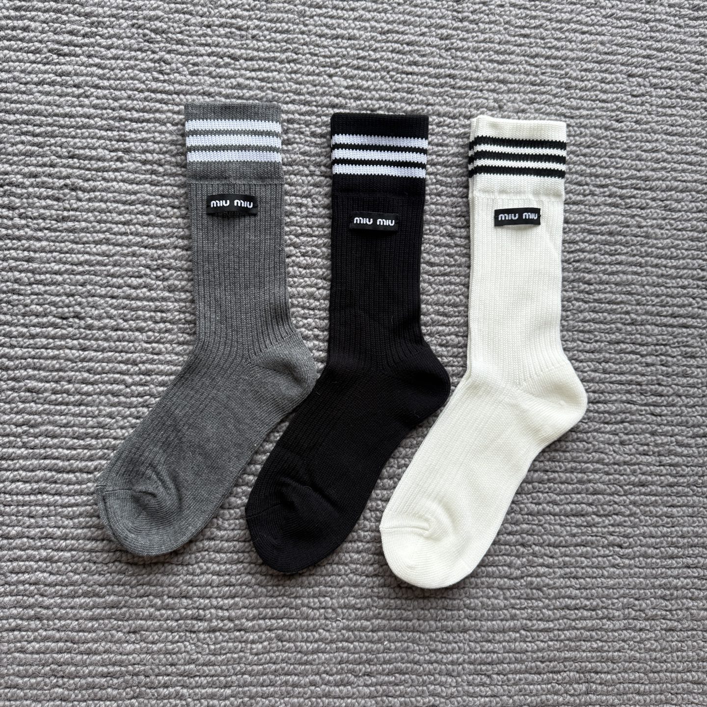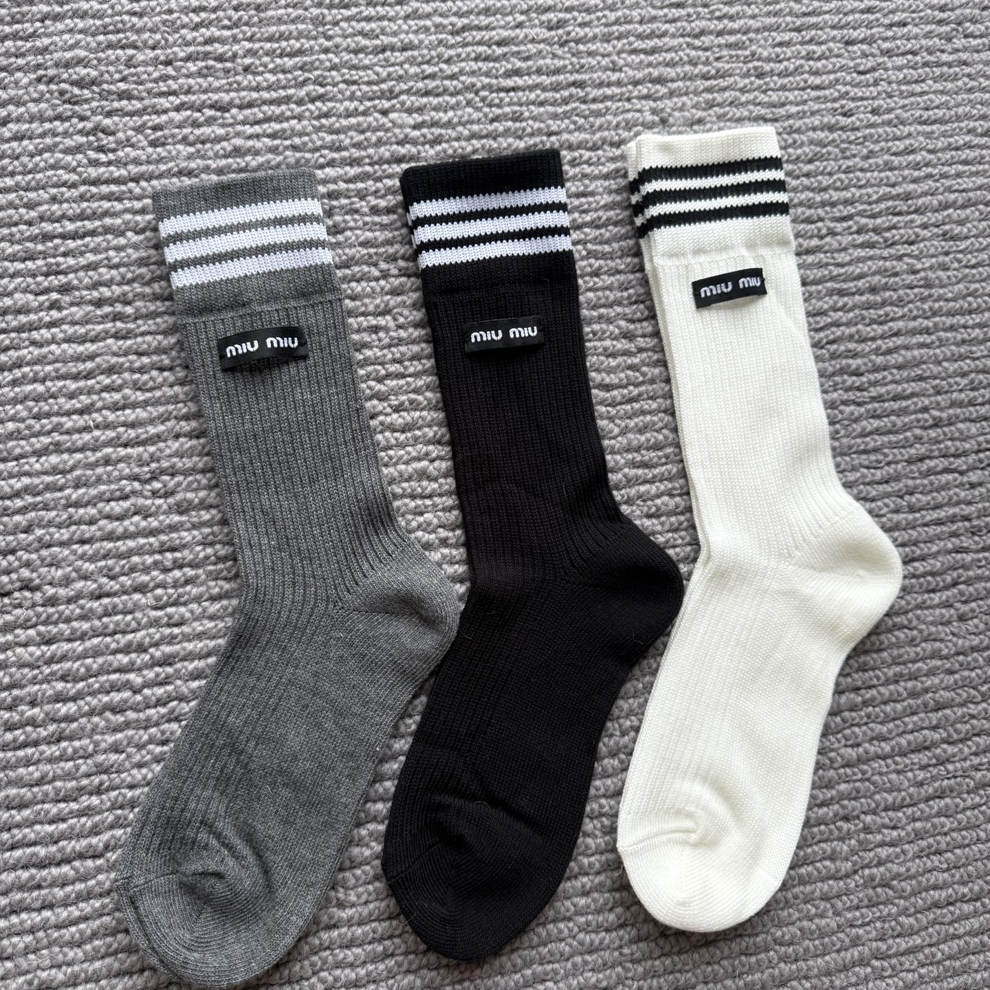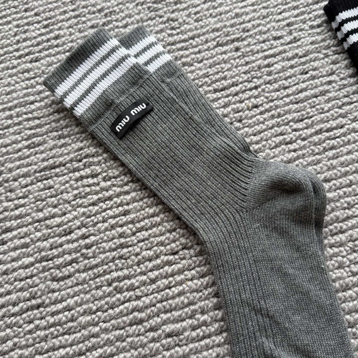 这款sock是AAAAA 1:1 质量 (非常棒). 使用了和原版一模一样的材料. 商标部分也保持了和缪缪/Miu Miu一样. 图片拍摄是实物sock拍摄, 您所收到的实物保证和我们图片一模一样.