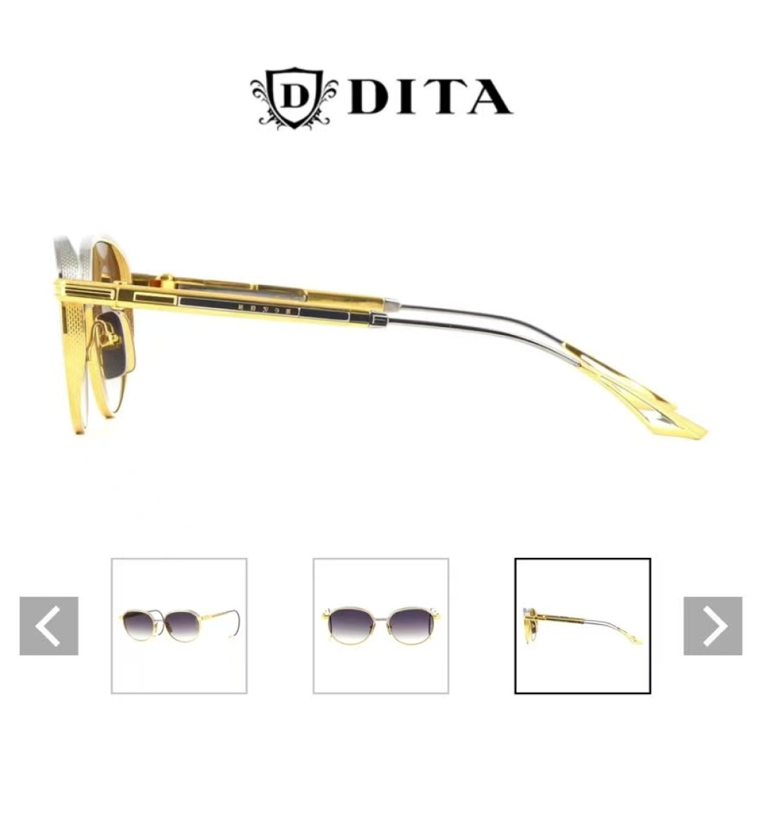 这款太阳眼镜是AAAAA 1:1 质量 (非常棒). 使用了和原版一模一样的材料. 商标部分也保持了和迪塔/Dita一样. 图片拍摄是实物太阳眼镜拍摄, 您所收到的实物保证和我们图片一模一样.