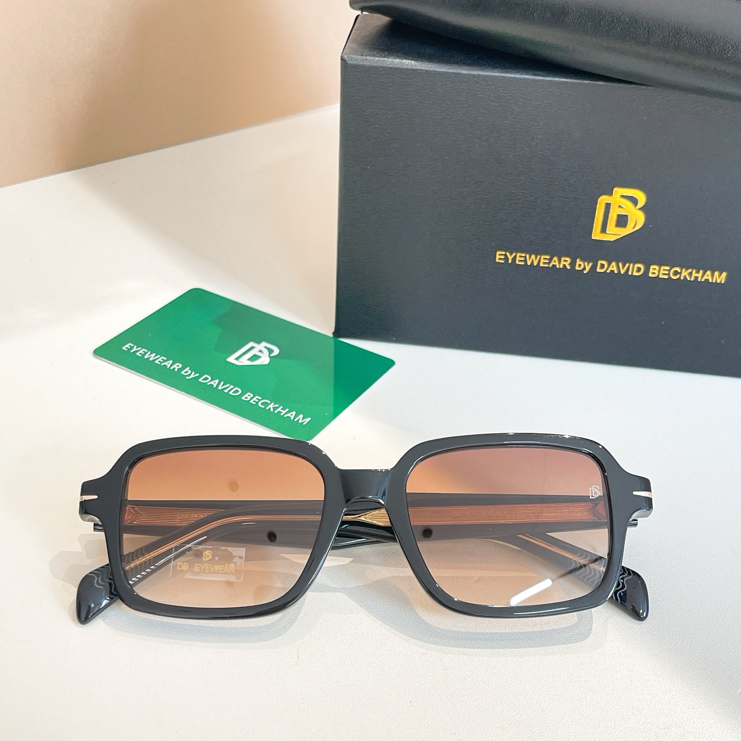 这款太阳眼镜是AAAAA 1:1 质量 (非常棒). 使用了和原版一模一样的材料. 商标部分也保持了和David Beckham一样. 图片拍摄是实物太阳眼镜拍摄, 您所收到的实物保证和我们图片一模一样.