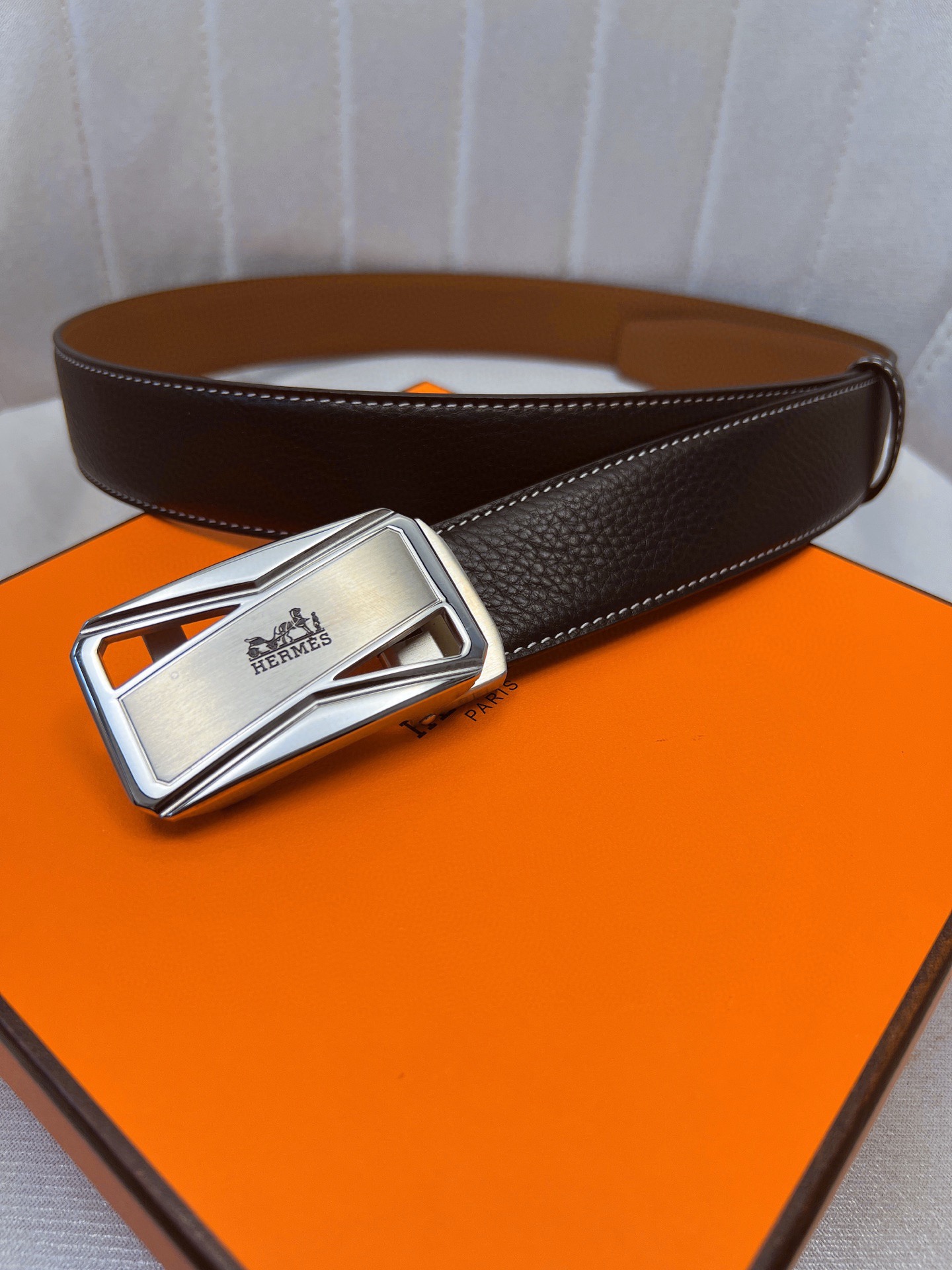 这款皮带是AAAAA 1:1 质量 (非常棒). 使用了和原版一模一样的材料. 商标部分也保持了和爱马仕/Hermes一样. 图片拍摄是实物皮带拍摄, 您所收到的实物保证和我们图片一模一样.