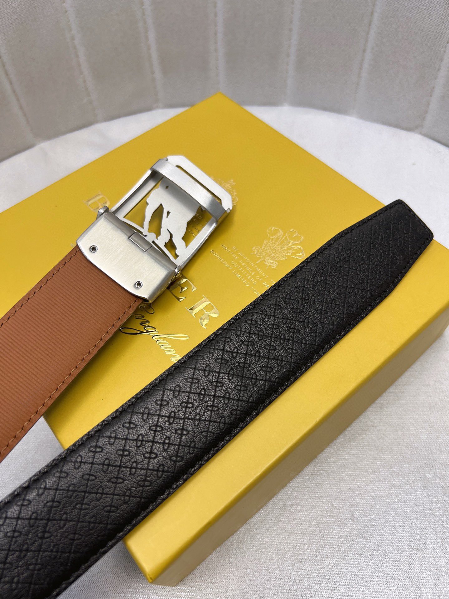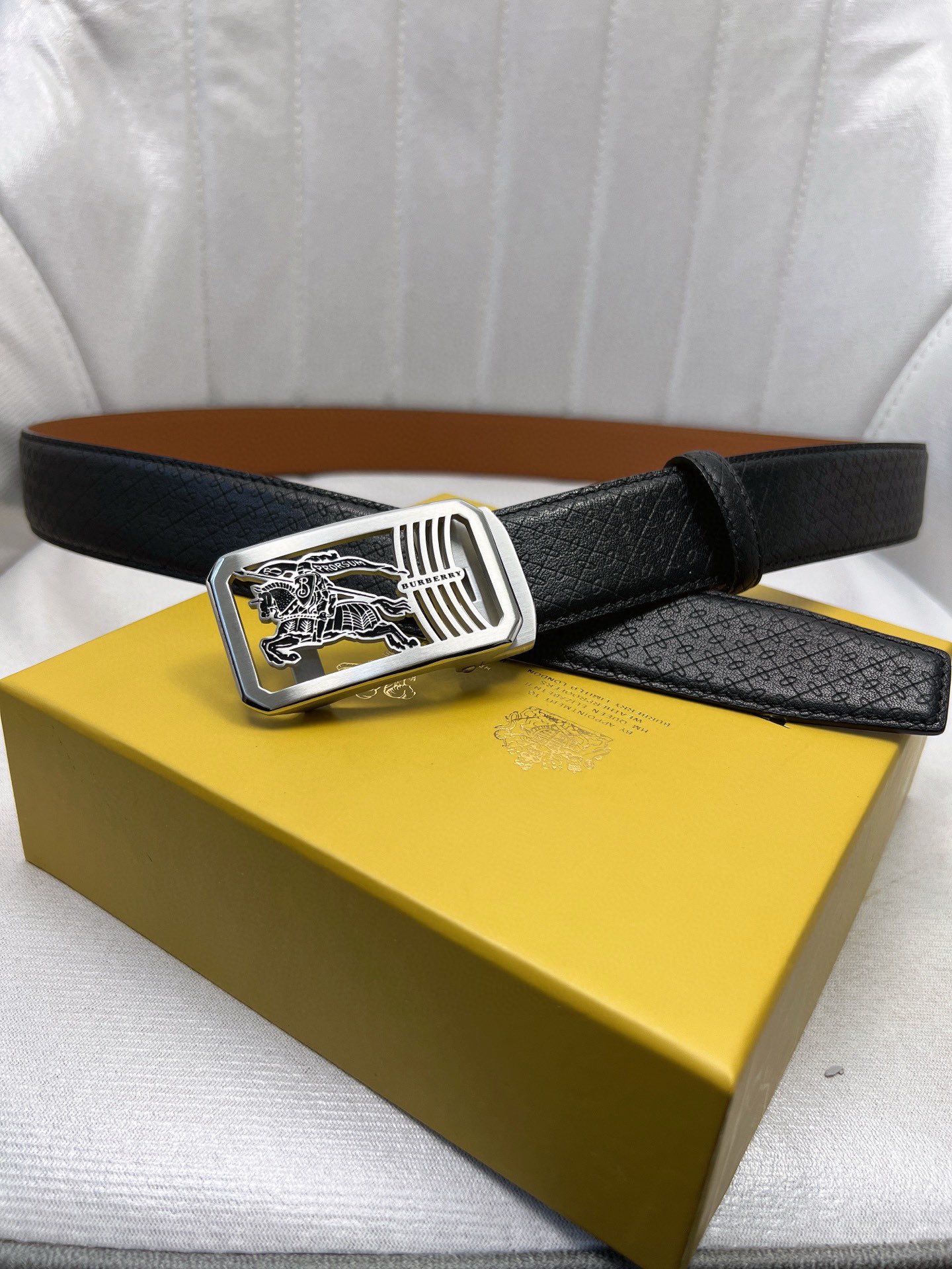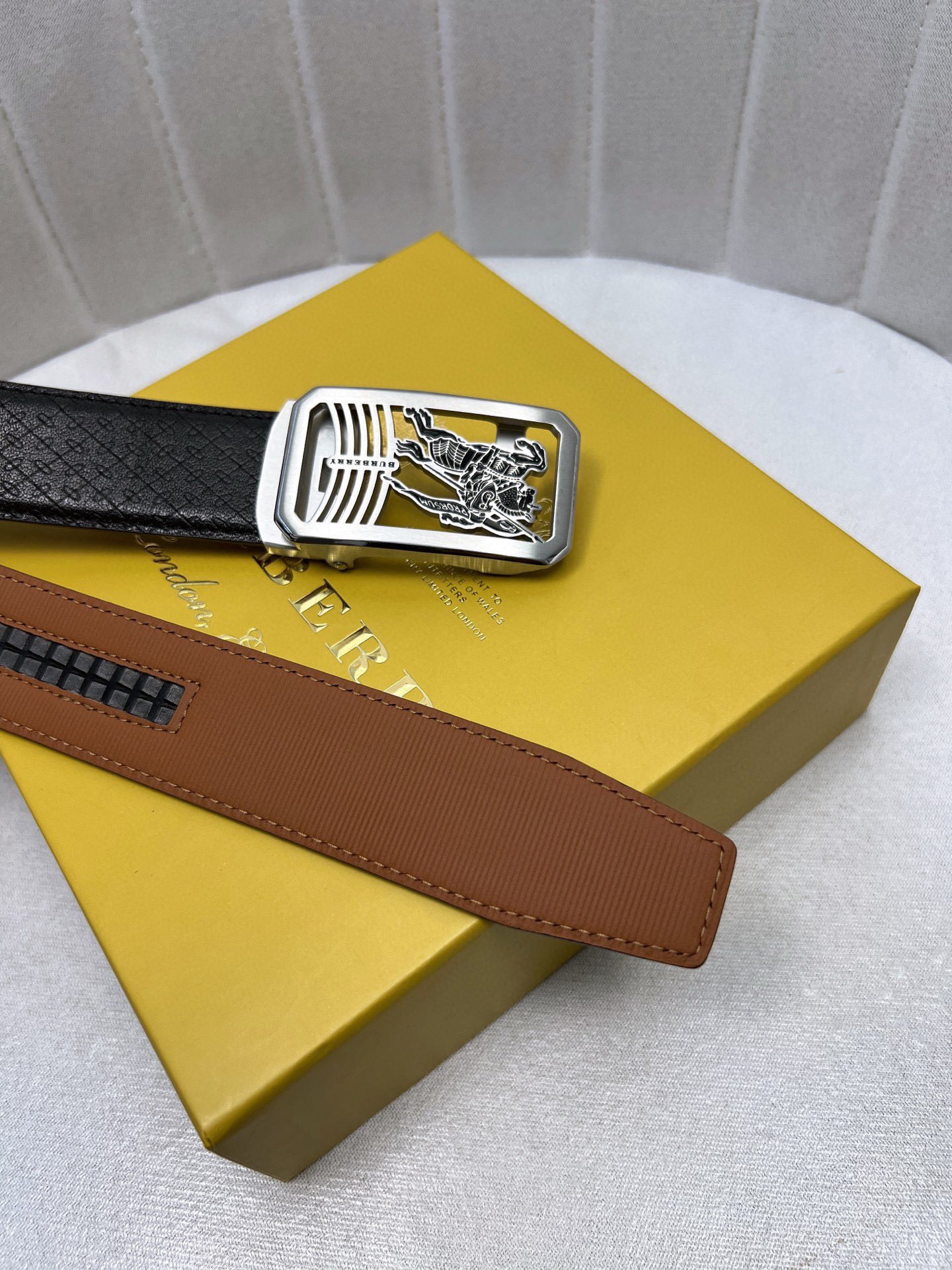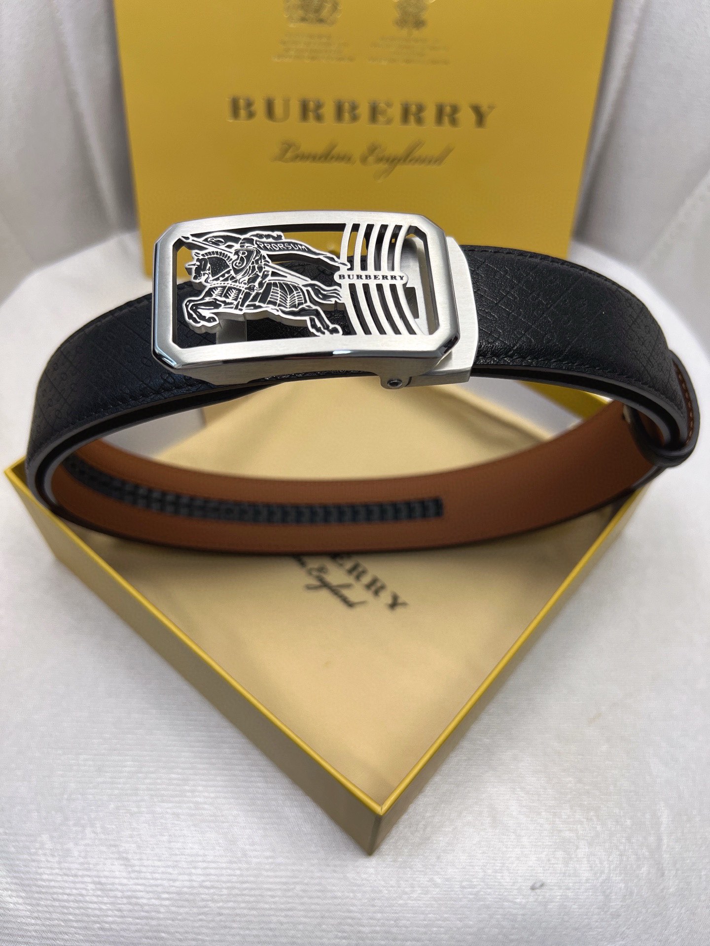 这款皮带是AAAAA 1:1 质量 (非常棒). 使用了和原版一模一样的材料. 商标部分也保持了和巴宝莉/Burberry一样. 图片拍摄是实物皮带拍摄, 您所收到的实物保证和我们图片一模一样.