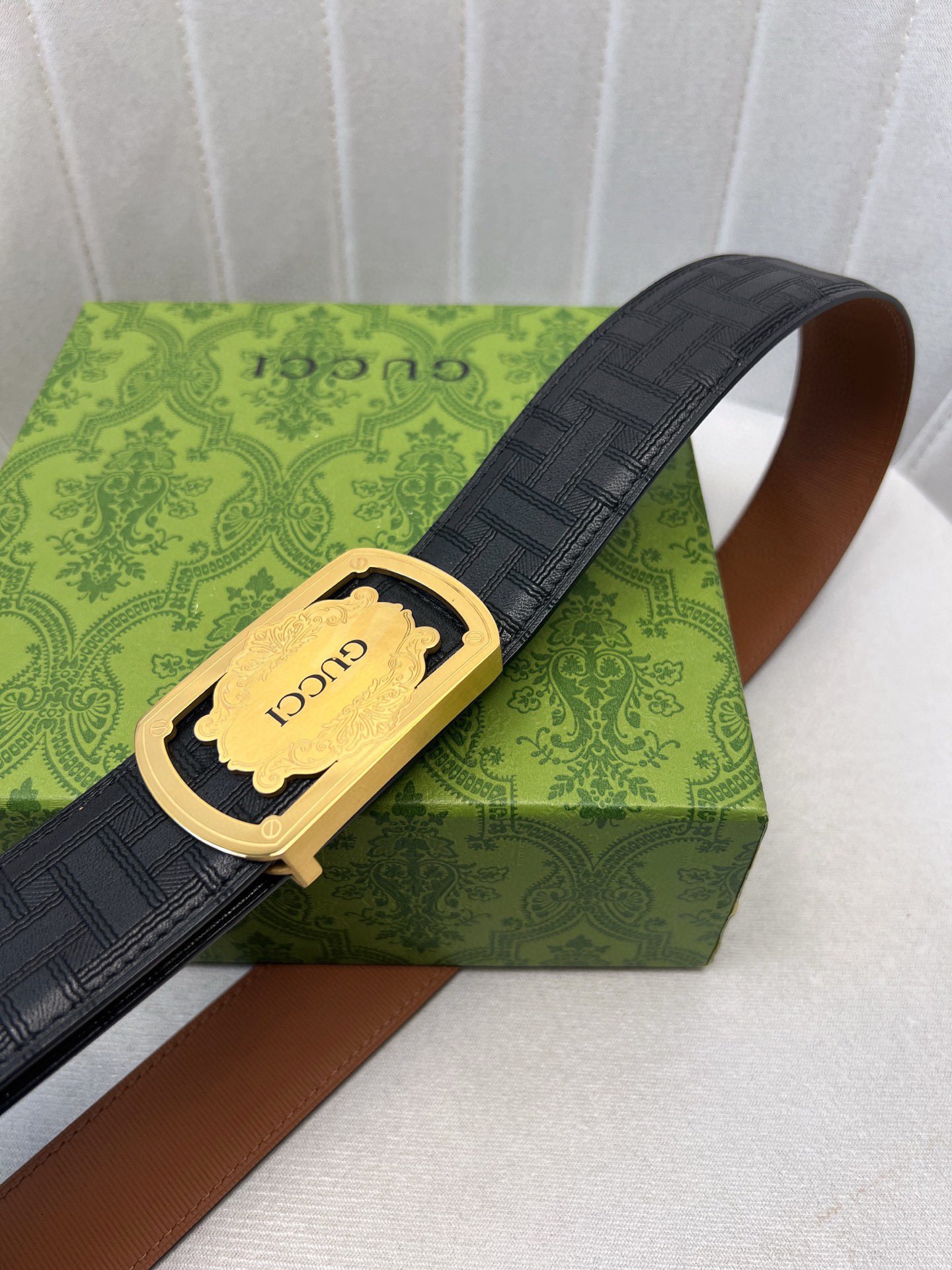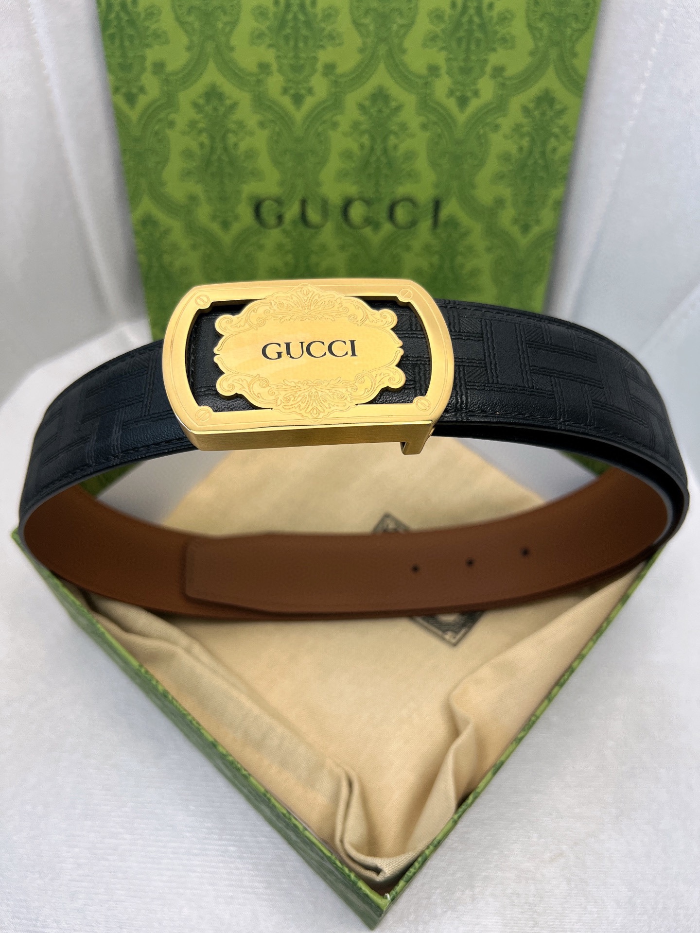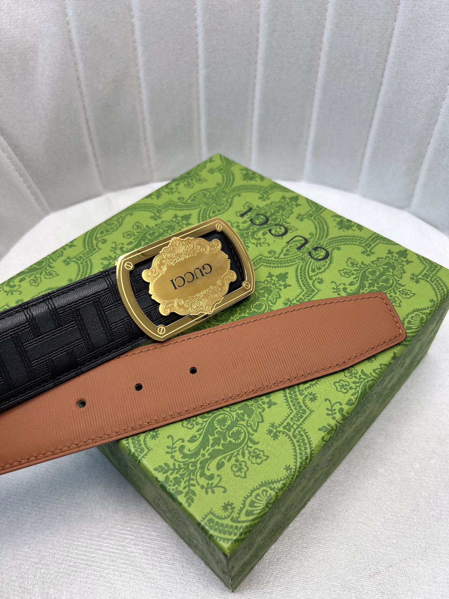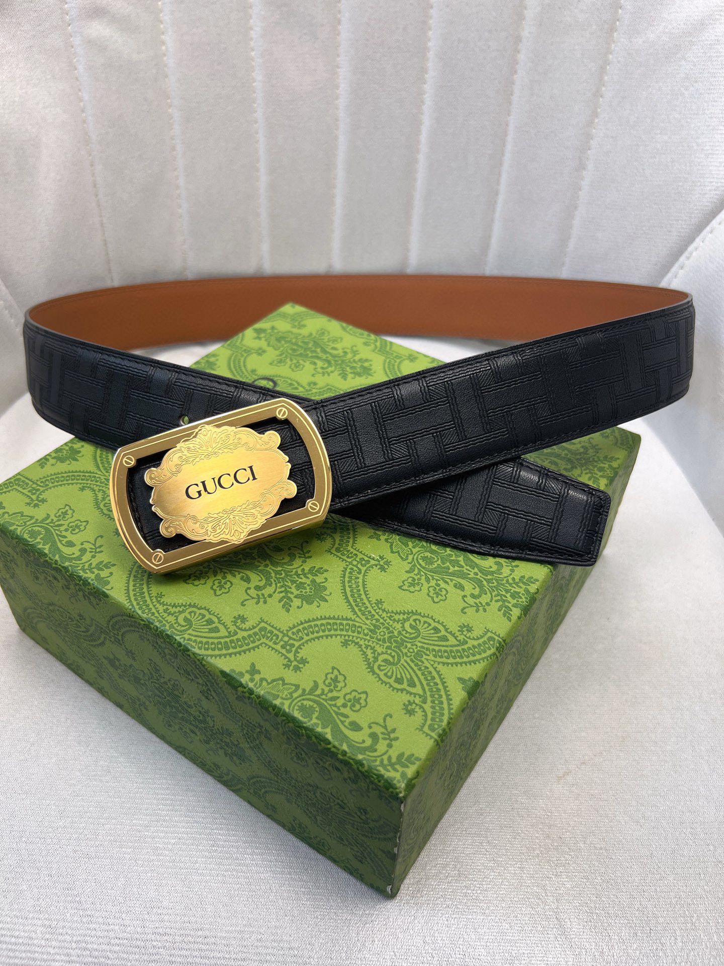 这款皮带是AAAAA 1:1 质量 (非常棒). 使用了和原版一模一样的材料. 商标部分也保持了和古奇/Gucci一样. 图片拍摄是实物皮带拍摄, 您所收到的实物保证和我们图片一模一样.