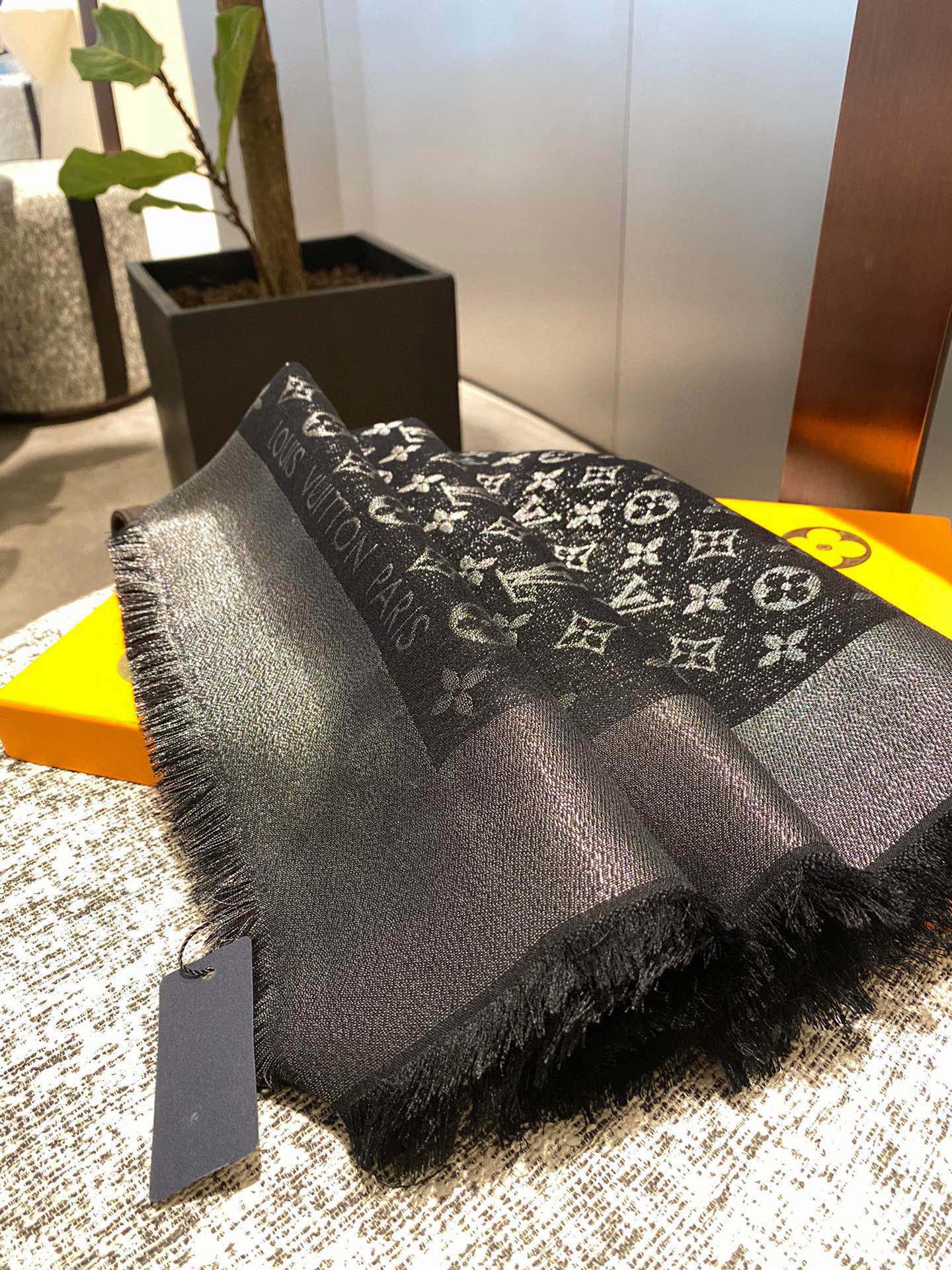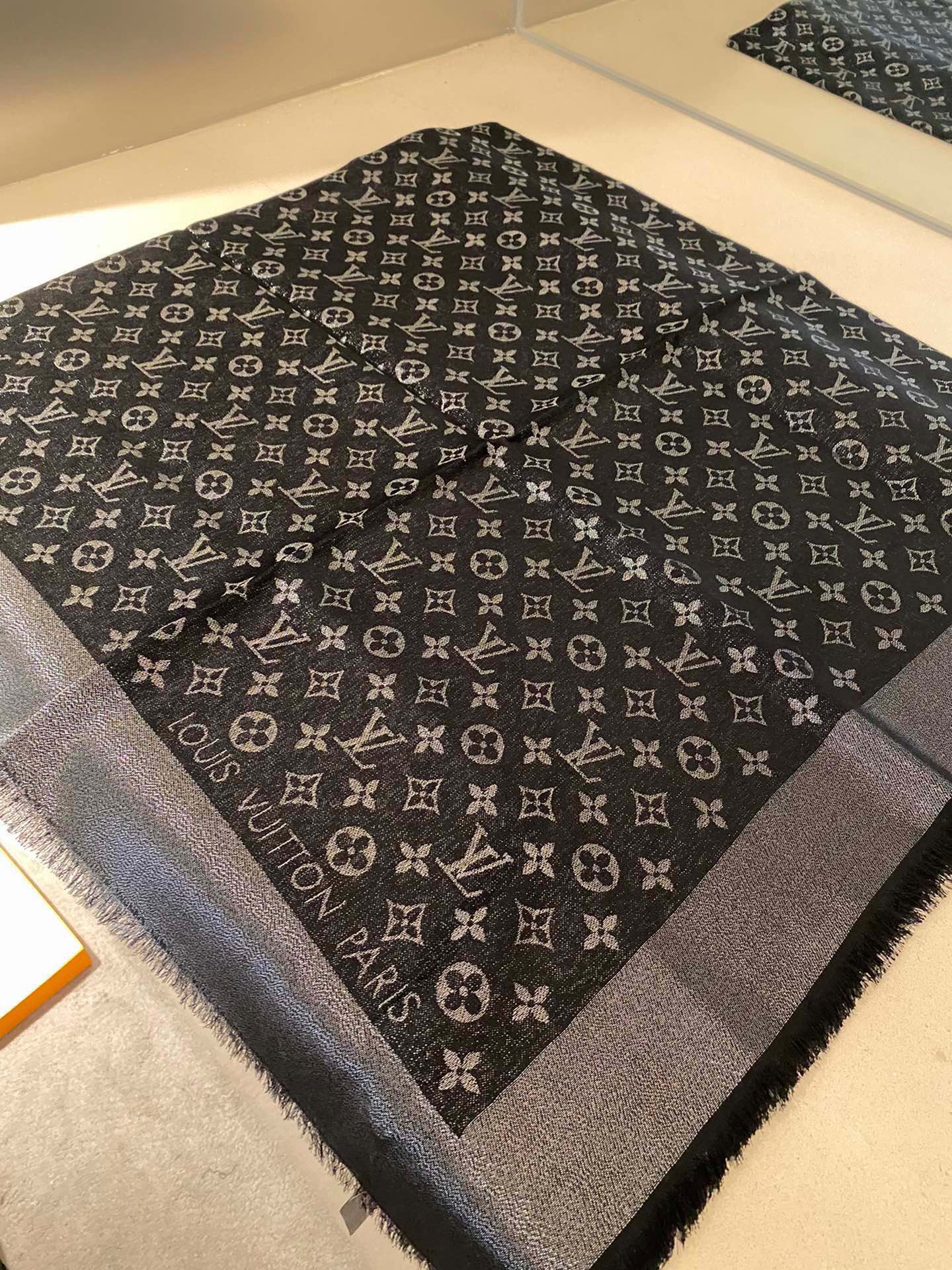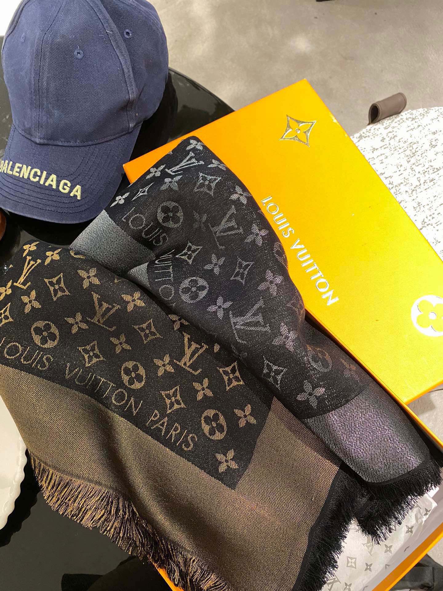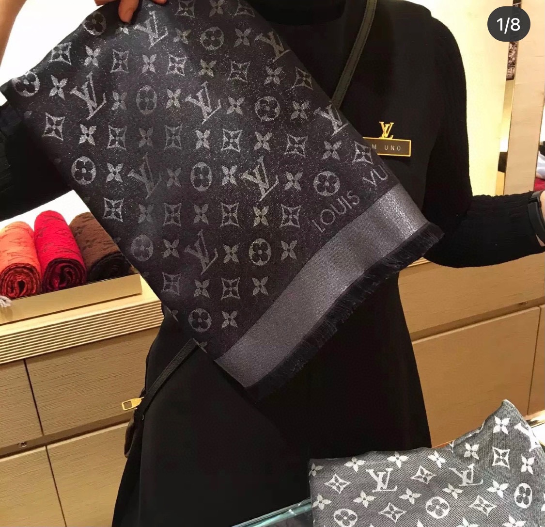 这款围巾是AAAAA 1:1 质量 (非常棒). 使用了和原版一模一样的材料. 商标部分也保持了和路易威登/Louis Vuitton一样. 图片拍摄是实物围巾拍摄, 您所收到的实物保证和我们图片一模一样.
