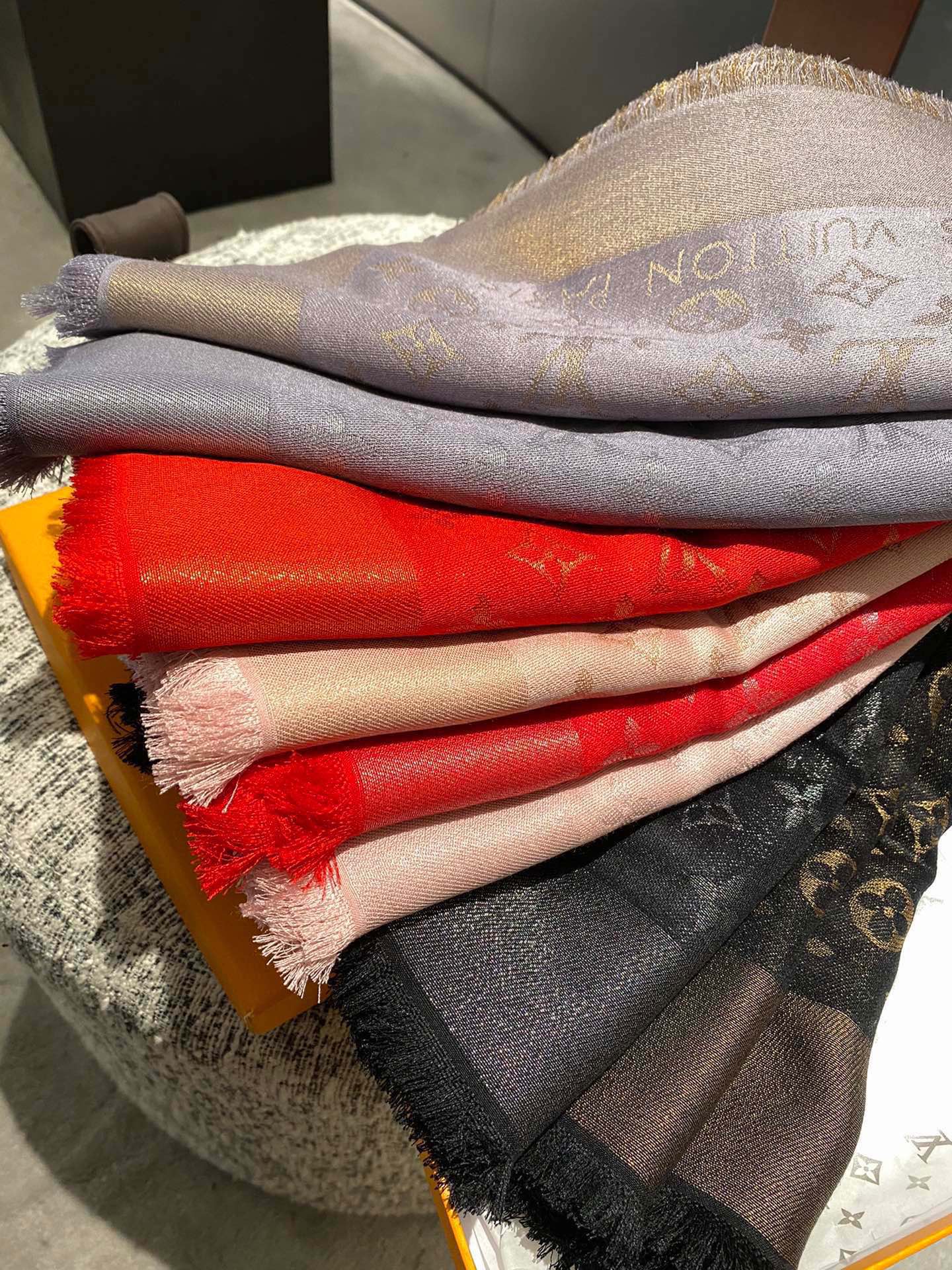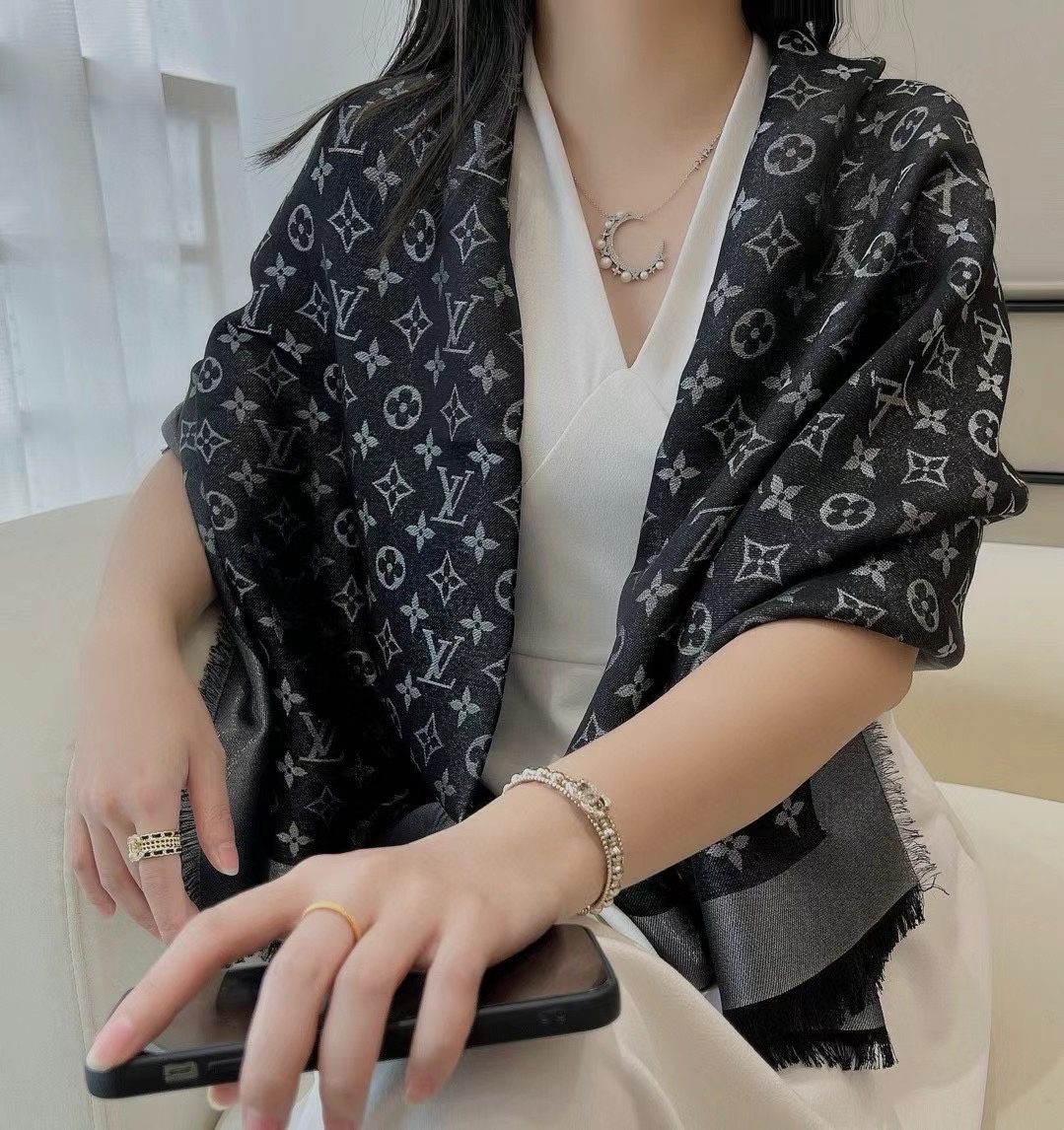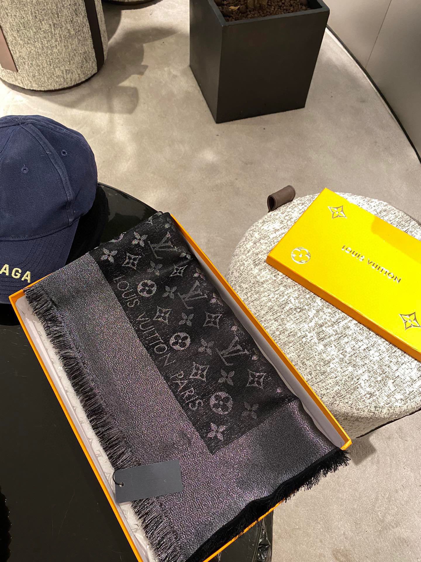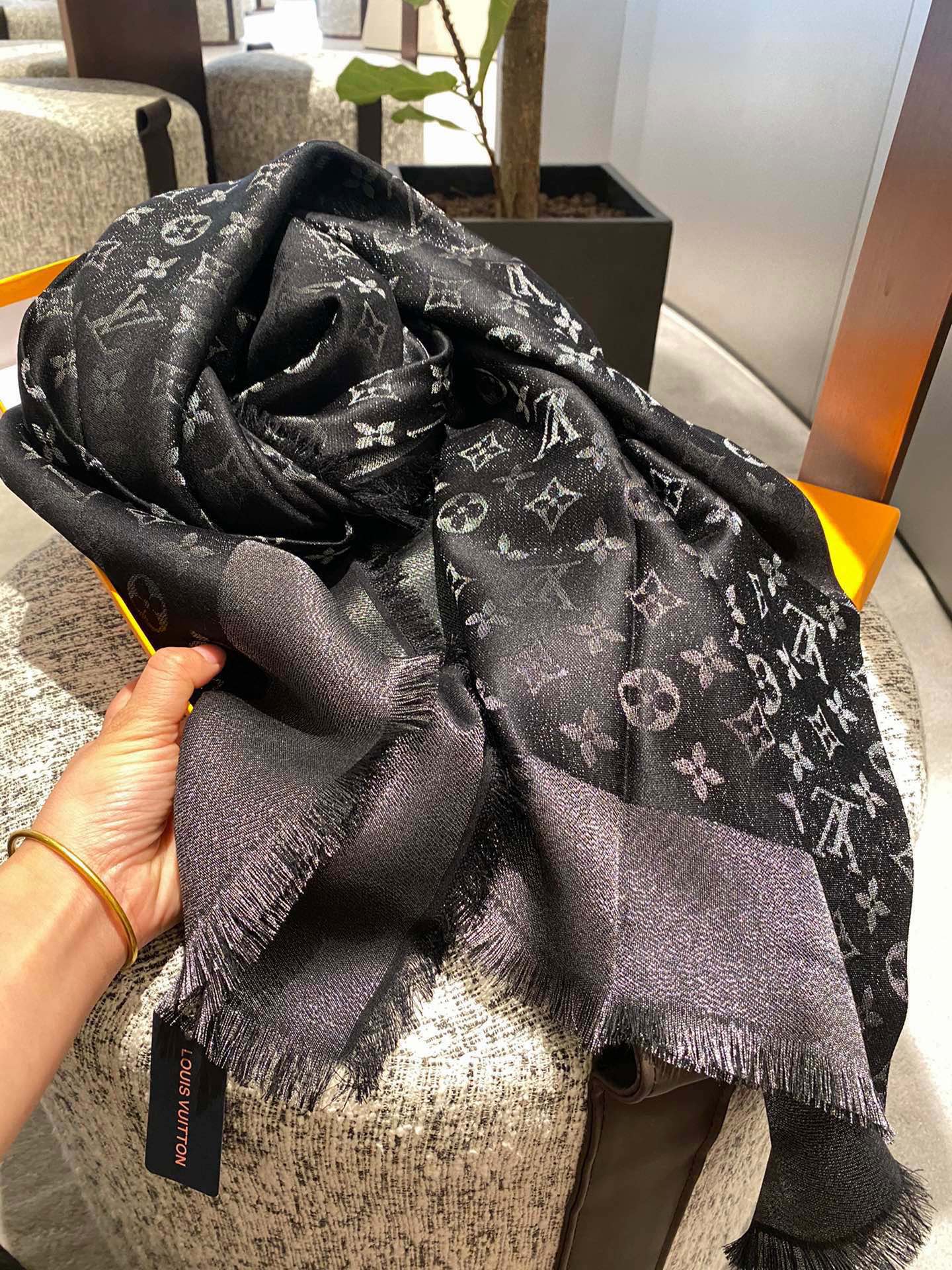 这款围巾是AAAAA 1:1 质量 (非常棒). 使用了和原版一模一样的材料. 商标部分也保持了和路易威登/Louis Vuitton一样. 图片拍摄是实物围巾拍摄, 您所收到的实物保证和我们图片一模一样.