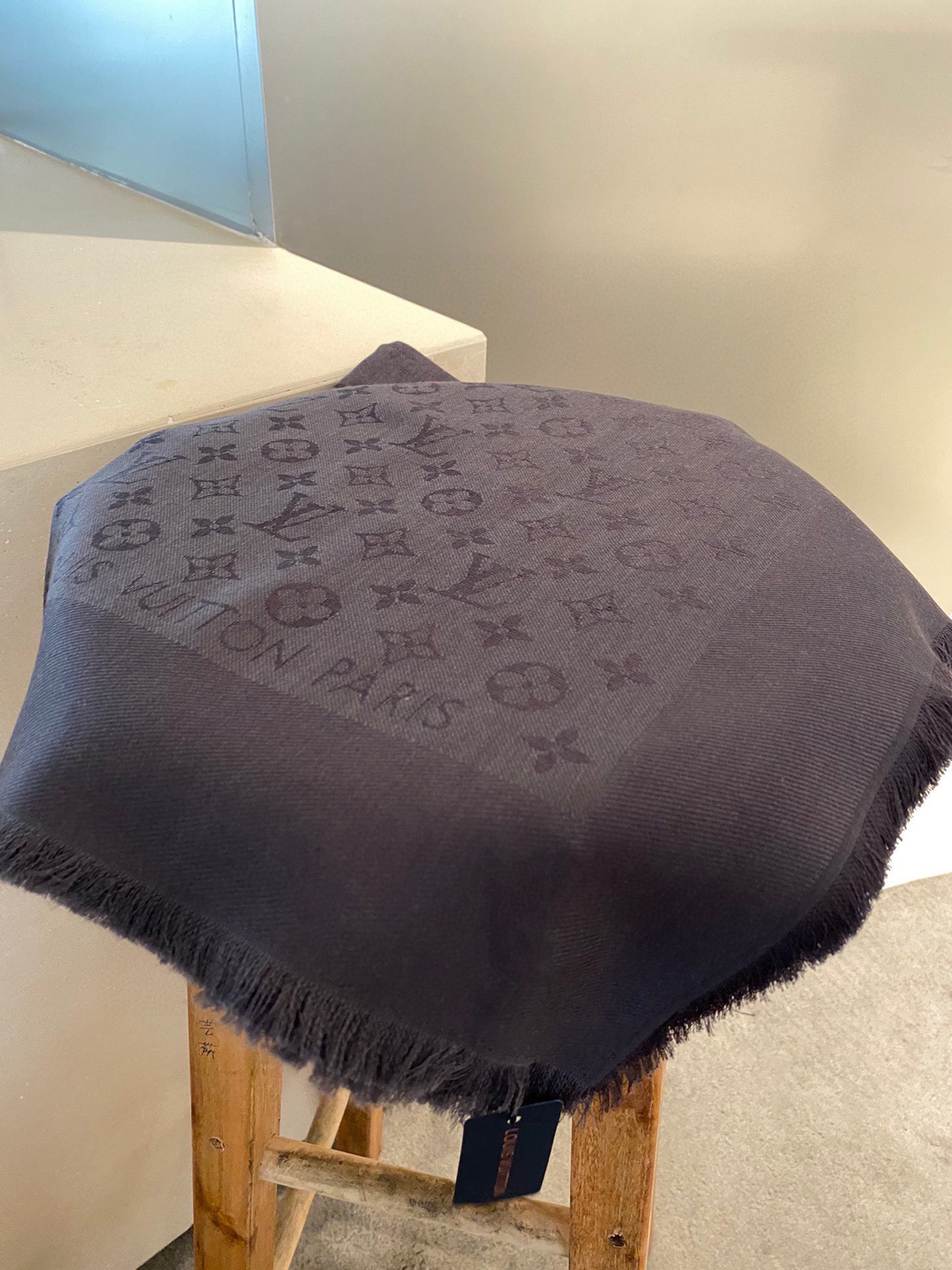 这款围巾是AAAAA 1:1 质量 (非常棒). 使用了和原版一模一样的材料. 商标部分也保持了和路易威登/Louis Vuitton一样. 图片拍摄是实物围巾拍摄, 您所收到的实物保证和我们图片一模一样.