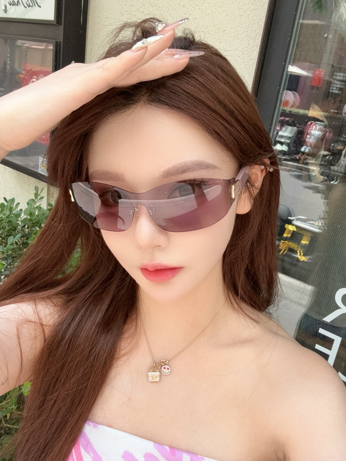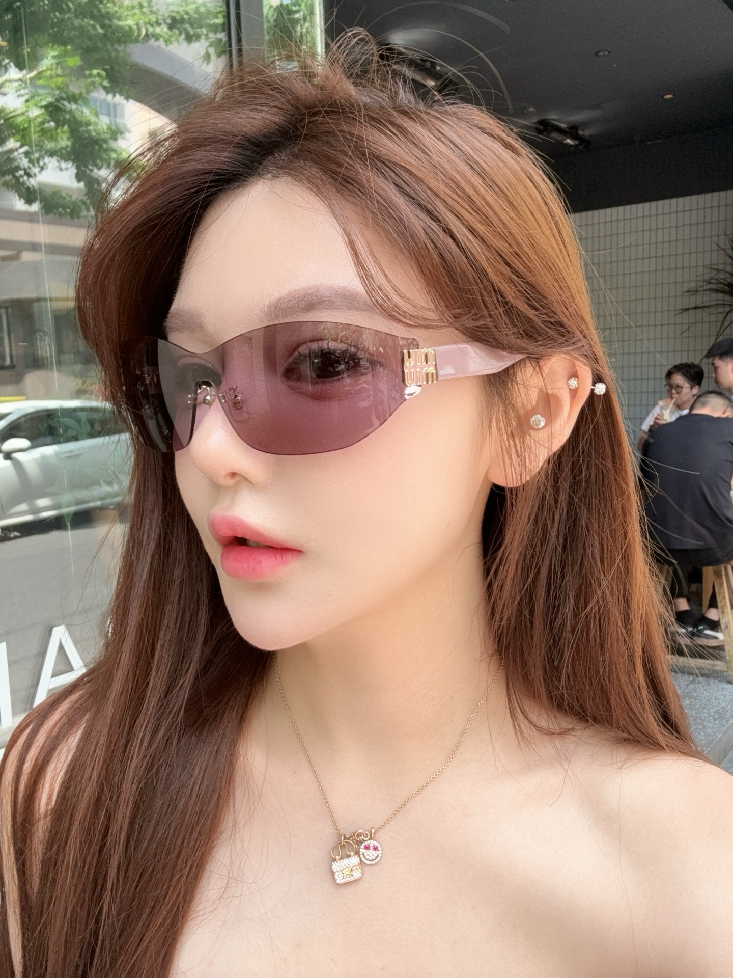 这款太阳眼镜是AAAAA 1:1 质量 (非常棒). 使用了和原版一模一样的材料. 商标部分也保持了和缪缪/Miu Miu一样. 图片拍摄是实物太阳眼镜拍摄, 您所收到的实物保证和我们图片一模一样.