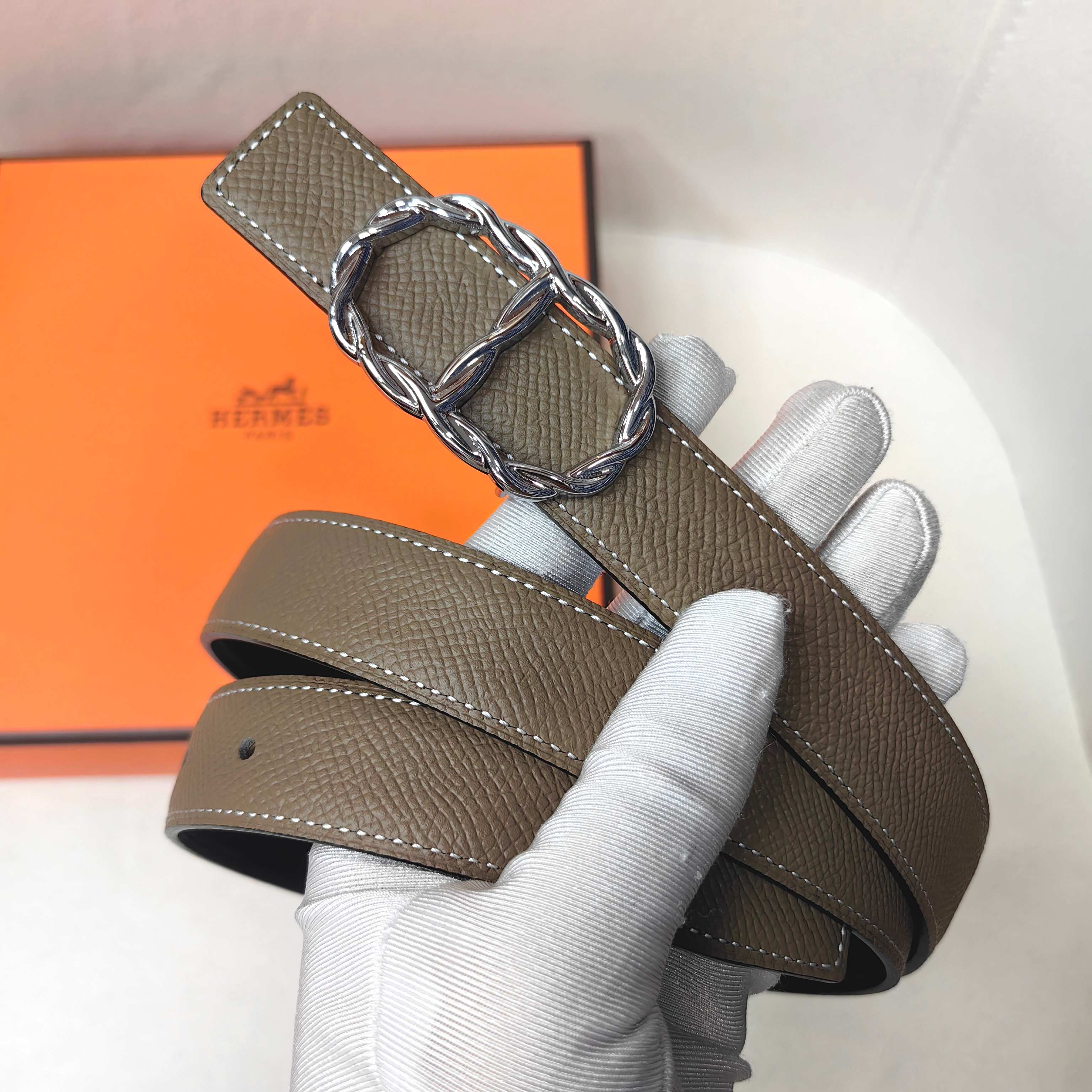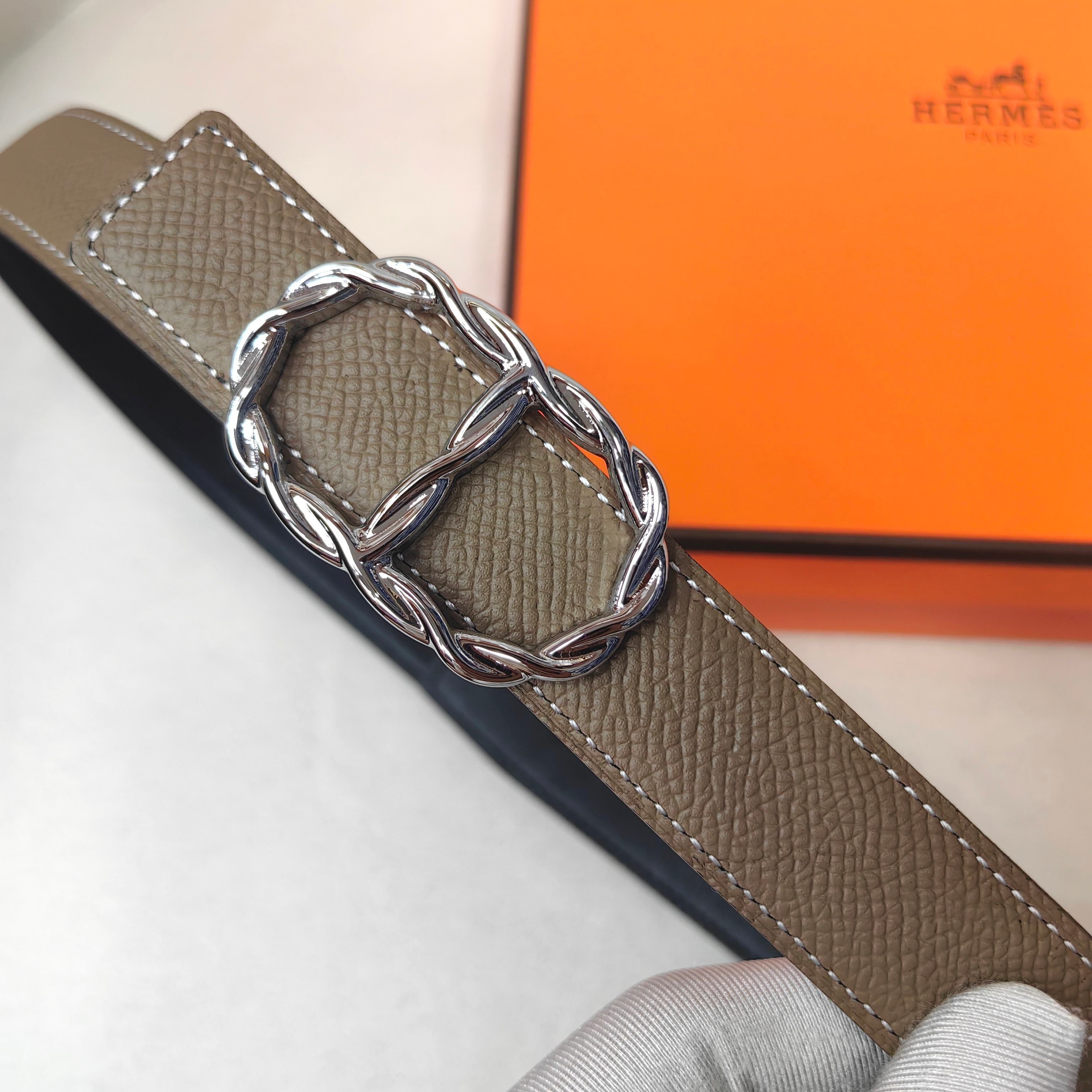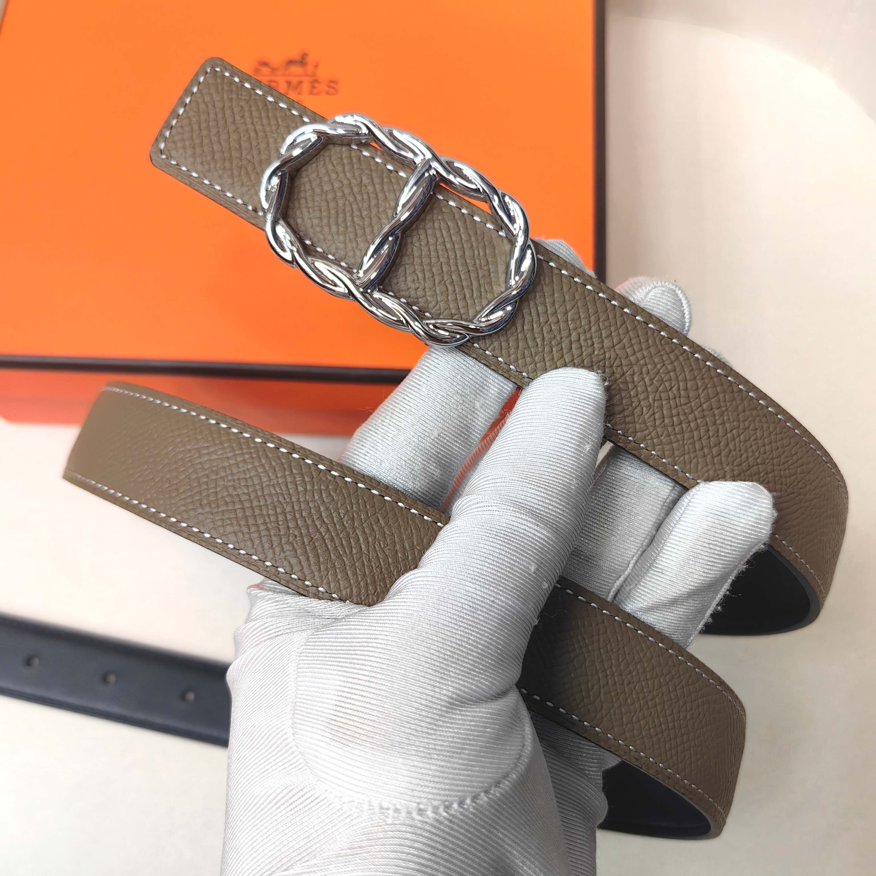 这款皮带是AAAAA 1:1 质量 (非常棒). 使用了和原版一模一样的材料. 商标部分也保持了和爱马仕/Hermes一样. 图片拍摄是实物皮带拍摄, 您所收到的实物保证和我们图片一模一样.