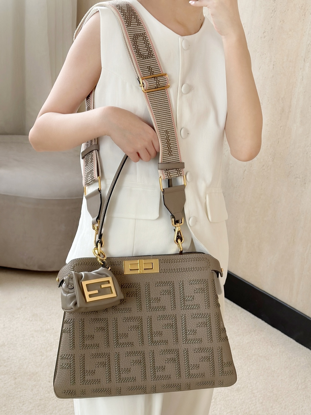 这款包包是AAAAA 1:1 质量 (非常棒). 使用了和原版一模一样的材料. 商标部分也保持了和芬迪/Fendi一样. 图片拍摄是实物包包拍摄, 您所收到的实物保证和我们图片一模一样.