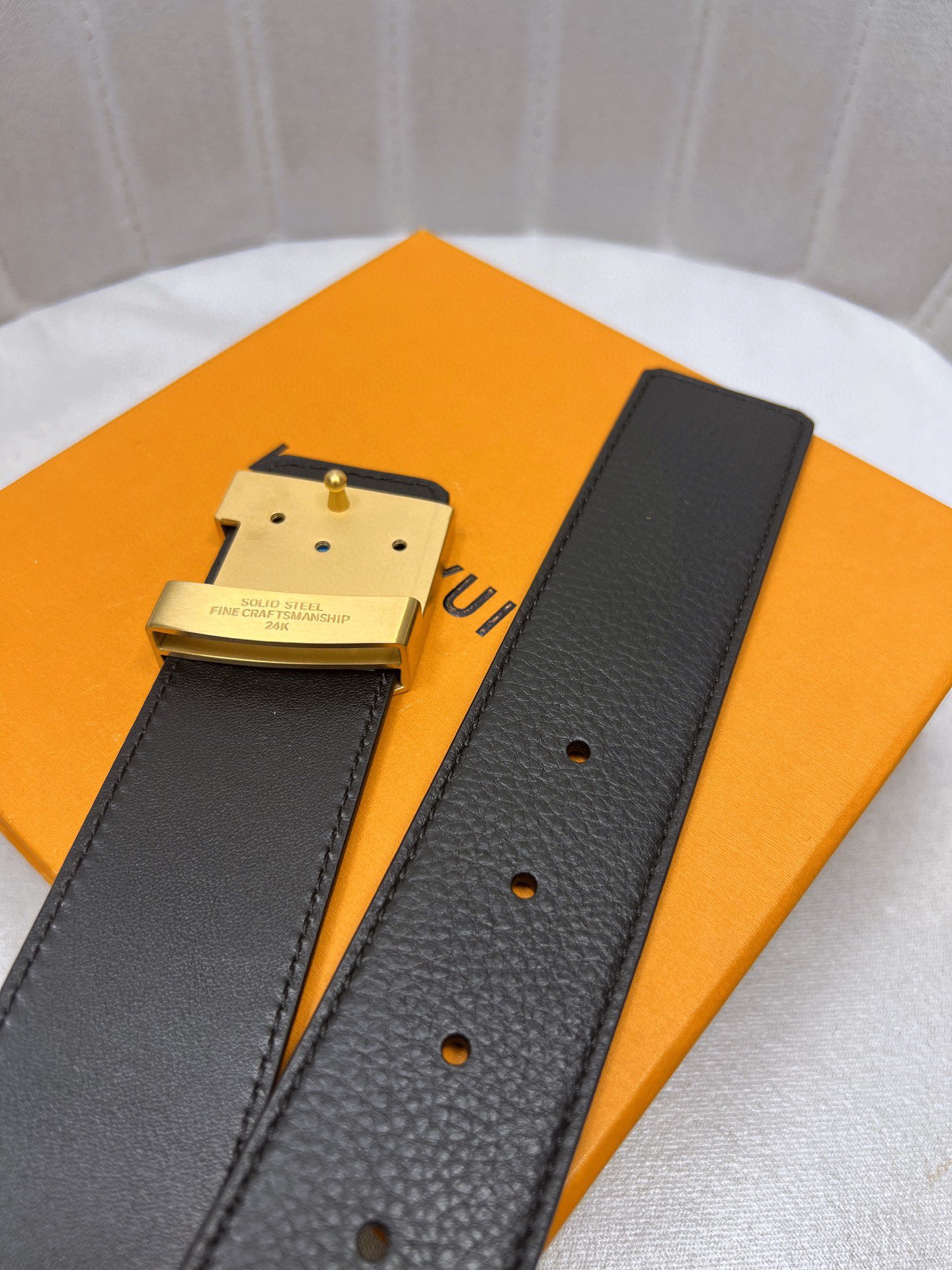这款皮带是AAAAA 1:1 质量 (非常棒). 使用了和原版一模一样的材料. 商标部分也保持了和一样. 图片拍摄是实物皮带拍摄, 您所收到的实物保证和我们图片一模一样.