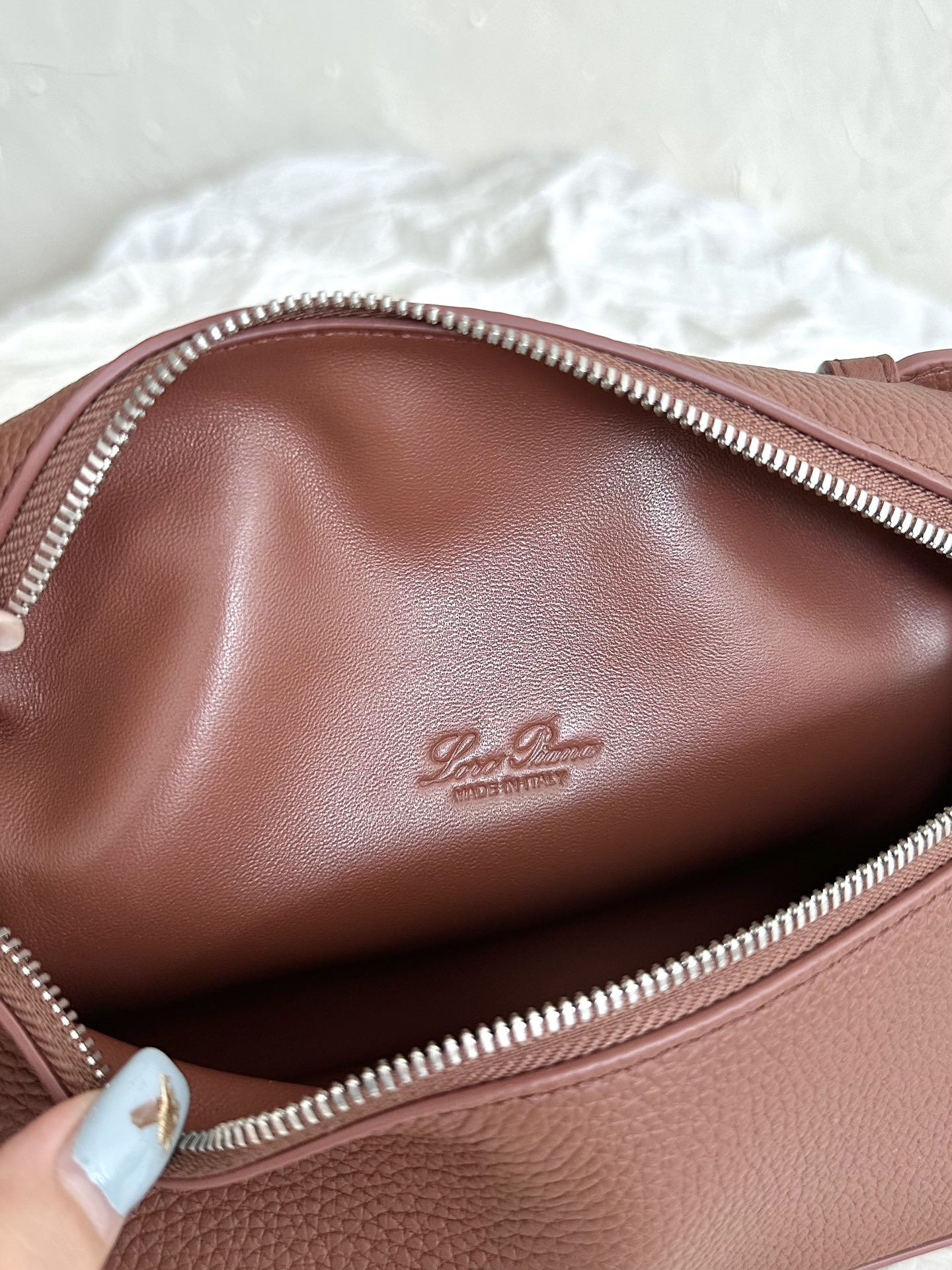 这款包包是AAAAA 1:1 质量 (非常棒). 使用了和原版一模一样的材料. 商标部分也保持了和洛罗皮亚纳/Loro Piana一样. 图片拍摄是实物包包拍摄, 您所收到的实物保证和我们图片一模一样.