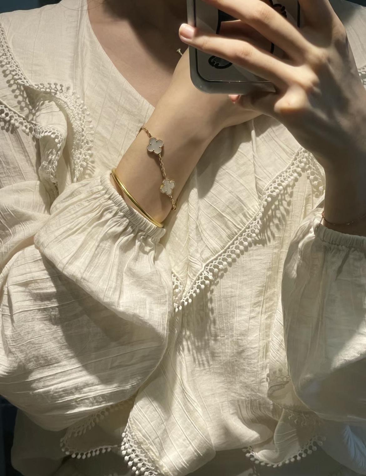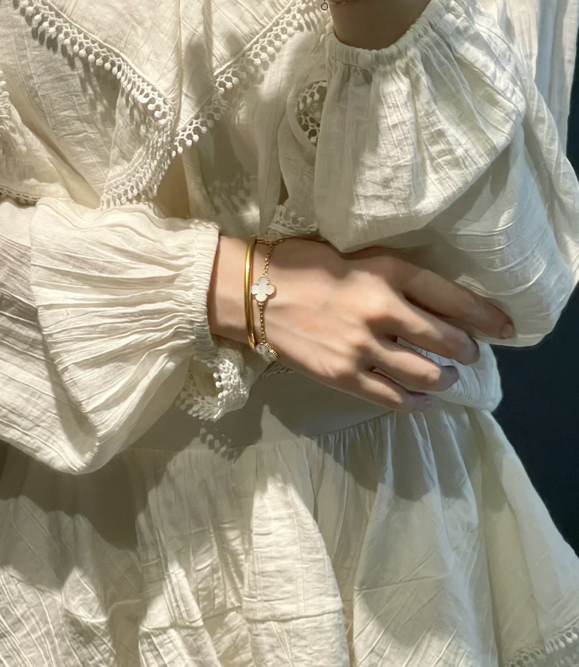 这款首饰是AAAAA 1:1 质量 (非常棒). 使用了和原版一模一样的材料. 商标部分也保持了和梵克雅宝/Van Cleef & Arpels一样. 图片拍摄是实物首饰拍摄, 您所收到的实物保证和我们图片一模一样.